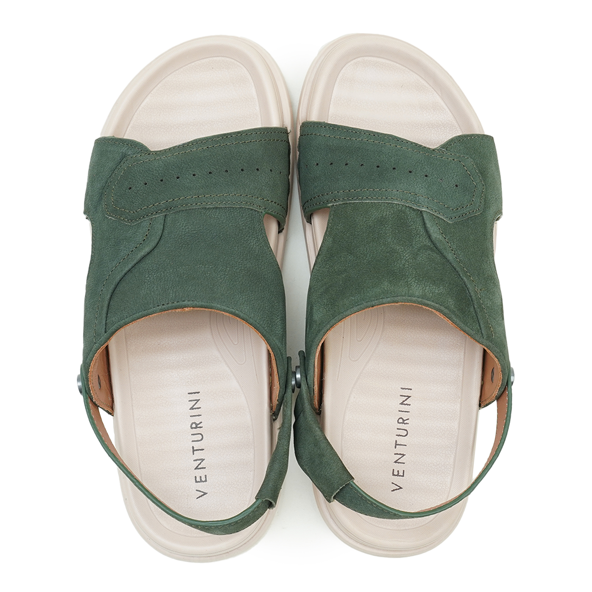 Designed for modern comfort and versatile everyday wear, the VENTURINI Olive Men’s Sandal combines premium craftsmanship with a contemporary look. Crafted with a high-quality leather upper, this sandal features a unique olive tone that adds a fresh and stylish touch to casual outfits. The structured upper with a supportive back strap provides a secure and stable fit, while the soft cushioned footbed ensures enhanced comfort during long hours of wear. Built with a durable rubber sole, it offers reliable grip, flexibility and support for daily movement. Perfect for casual outings, travel, or relaxed weekends, this sandal blends comfort, durability and distinctive style.