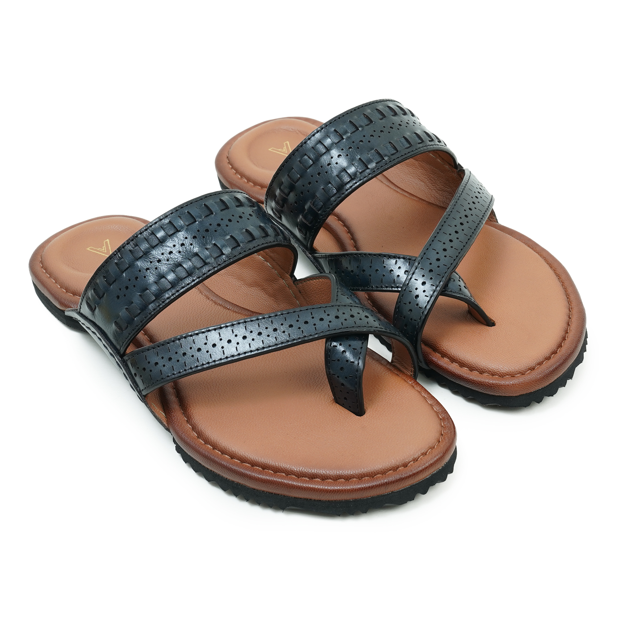Experience timeless refinement with this premium men’s black sandal, crafted to reflect Venturini’s signature craftsmanship and elegance. Designed using the finest leather, the upper delivers a smooth, polished finish that embodies understated luxury. The rich black tone enhances its versatile appeal, making it suitable for both elevated casual wear and relaxed formal settings. A soft leather footbed provides exceptional comfort, while the durable rubber outsole ensures confident traction and long-lasting performance. Every detail is thoughtfully executed to offer unrivalled luxury, superior quality, and effortless sophistication for the modern gentleman who values style with substance.