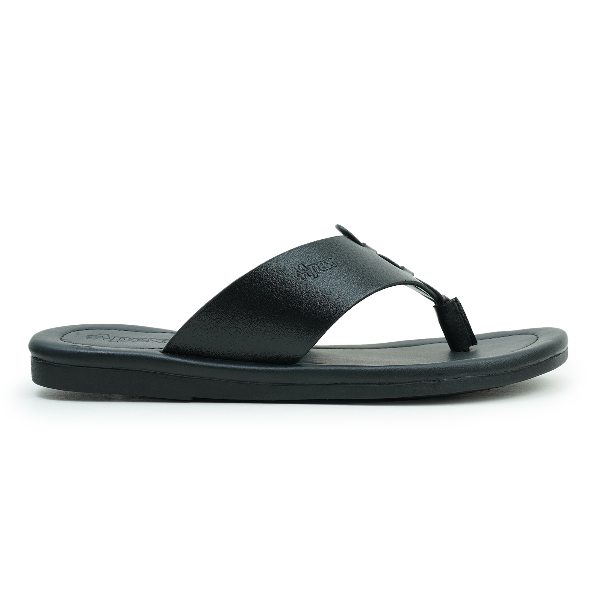 Enjoy effortless style and everyday comfort with the Apex Black Men’s Sandal. Crafted with a durable synthetic upper and a lightweight PVC sole, this sandal offers reliable support for daily wear. The classic toe-post structure combined with a wide strap ensures a secure and stable fit while maintaining a clean, minimal look. A soft cushioned footbed enhances comfort and supports natural movement throughout the day. Its sleek all-black finish delivers a versatile appearance that pairs easily with both casual and traditional outfits. Practical and comfortable, this sandal is an ideal choice for men seeking dependable footwear for everyday activities.