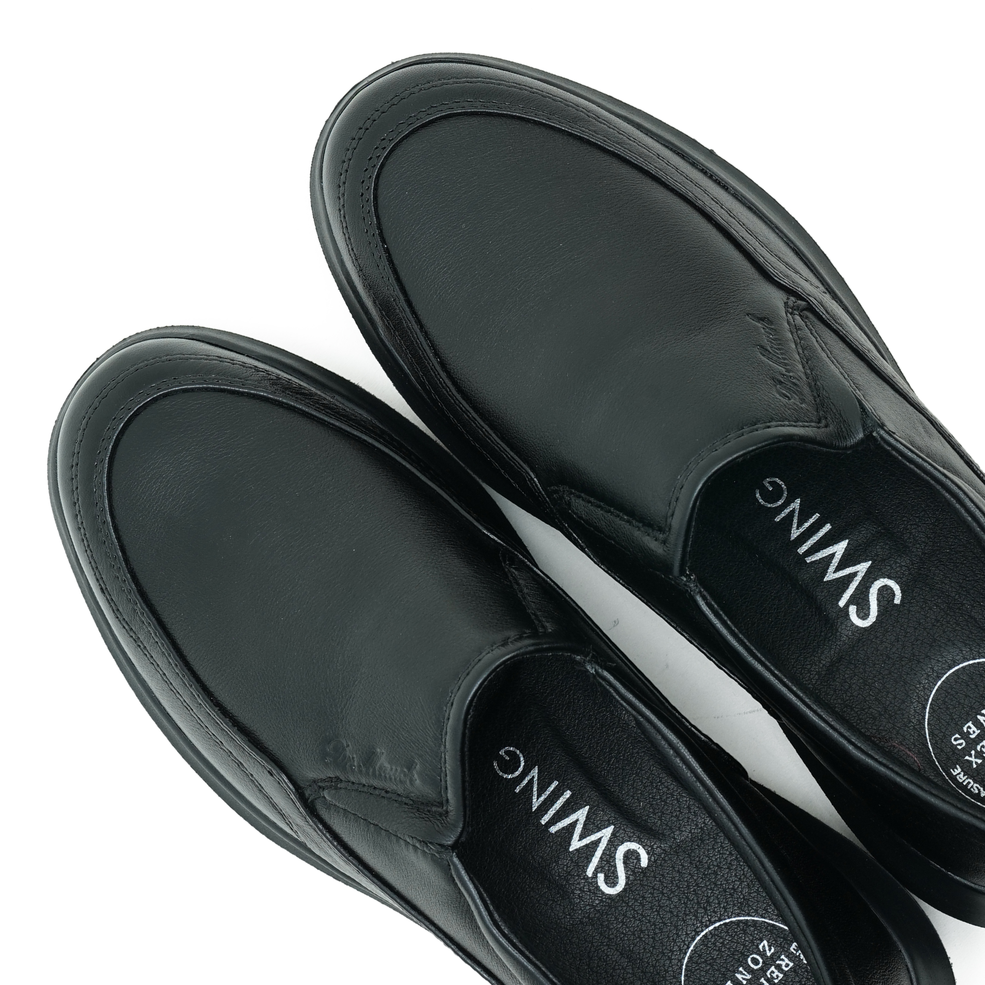 Experience understated luxury with the DR. MAUCH Men’s Black Leather Comfort Slip-On Shoe, thoughtfully crafted for modern sophistication and everyday ease. Designed in a refined moccasin-inspired silhouette, this elegant shoe features smooth genuine leather that delivers a polished, premium look. The convenient slip-on design allows effortless wear, while the soft cushioned interior ensures superior comfort throughout the day. Supported by a lightweight EVA outsole, it provides flexibility, stability, and lasting durability. Perfect for office wear, smart casual outfits, travel or daily walking, this shoe blends timeless style with exceptional comfort.