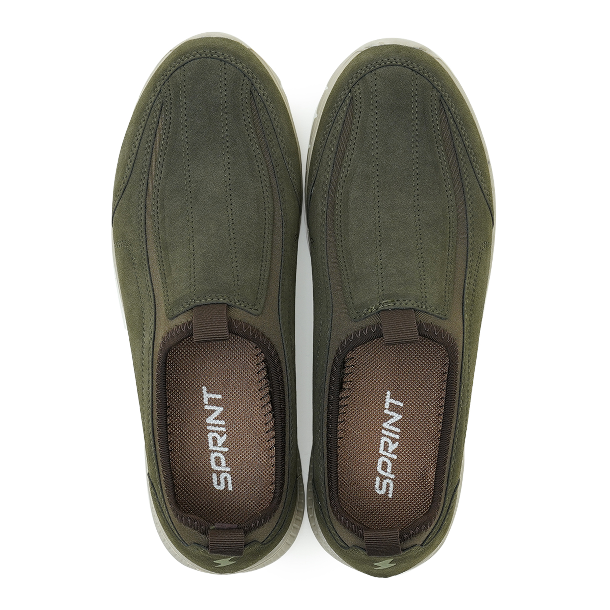 Built for everyday strength and comfort, the Sprint Olive Men’s Sports Shoe combines durability with lightweight performance. The premium PU upper delivers a sleek finish while offering flexibility and long-lasting wear. Designed for active lifestyles, the cushioned EVA sole provides superior shock absorption and all-day comfort. Its easy slip-on structure ensures a secure and convenient fit, making it perfect for walking, travel and daily activities. The modern olive tone adds a bold yet versatile touch to your look. Stay confident, stay comfortable and move forward with Sprint performance on every step.