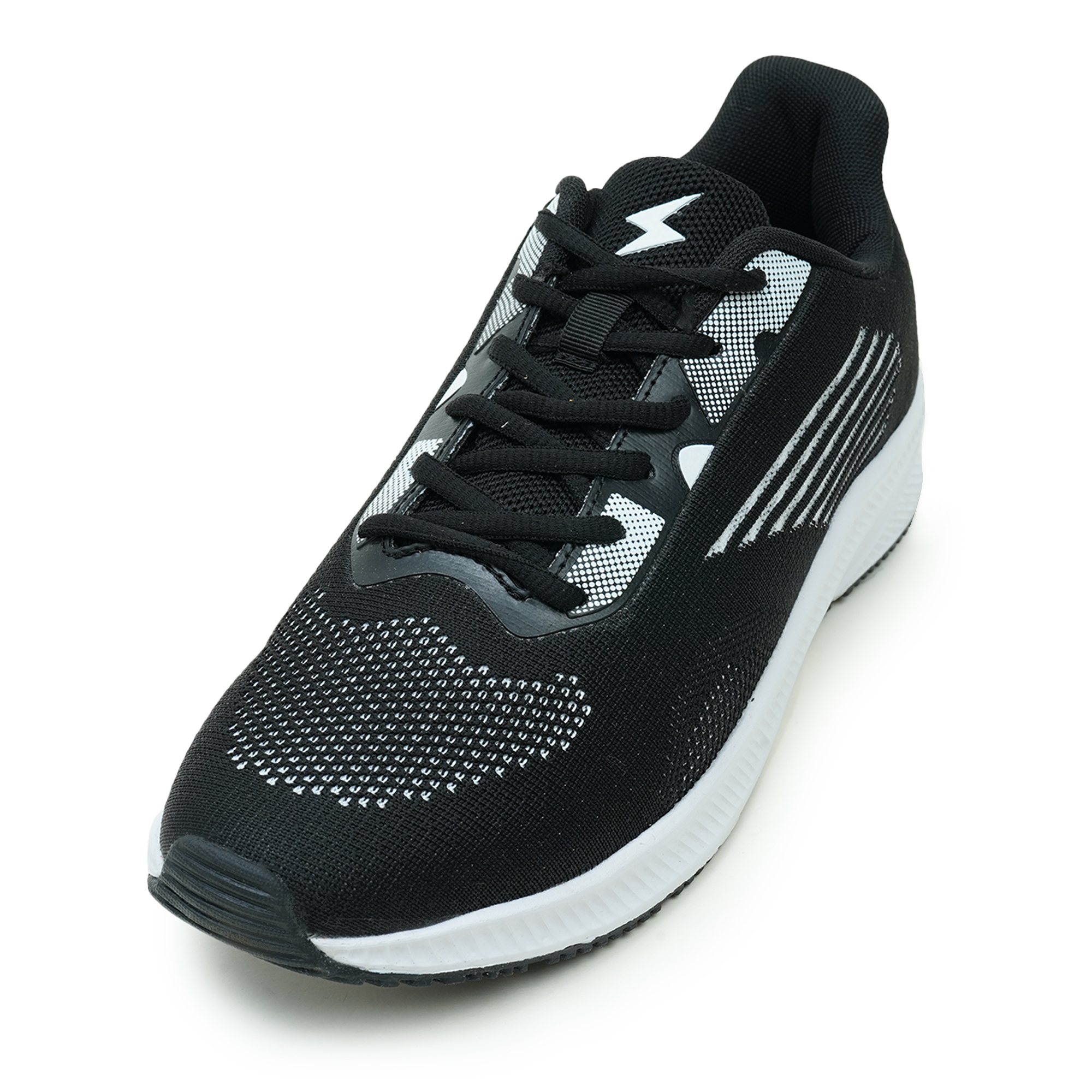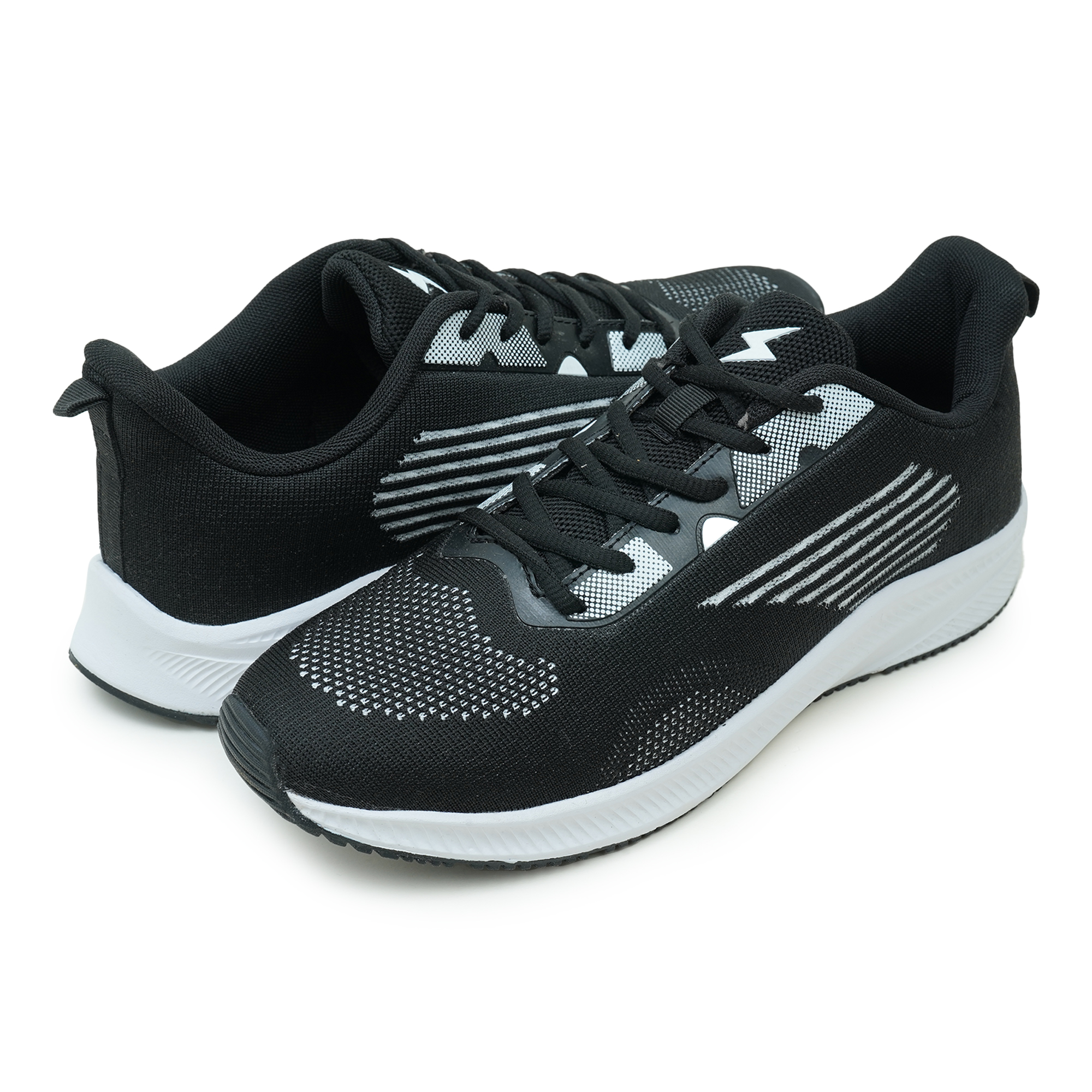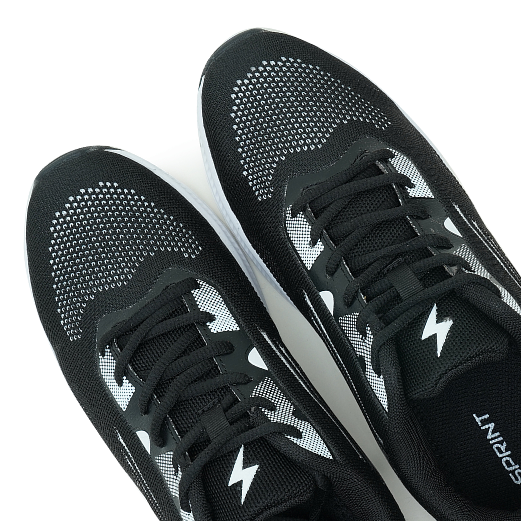 Black Sprint sneaker with a high-performance Flyknit upper for a breathable, sock-like fit. Textile lining adds soft comfort, while the EVA and TPR sole deliver responsive cushioning and durable grip for running, walking, and daily activity. The sleek sneaker silhouette pairs performance with everyday style, making it ideal for active pursuits and casual wear alike.