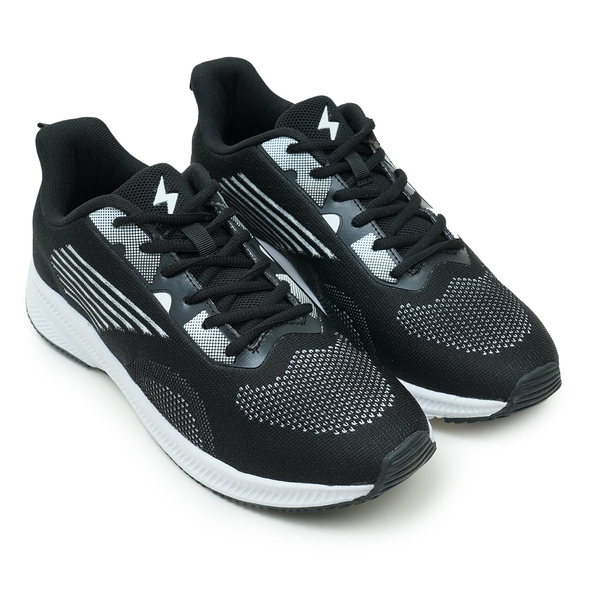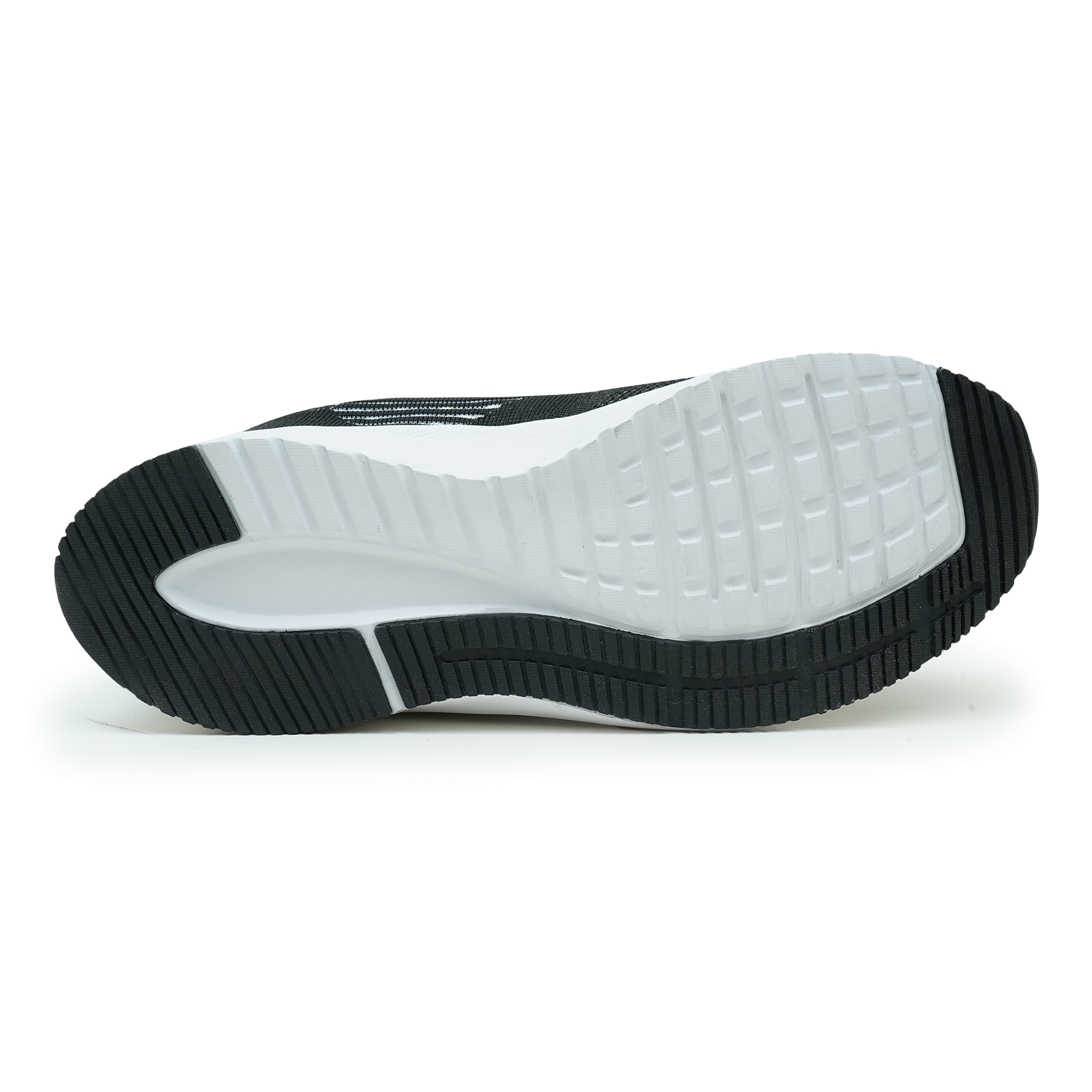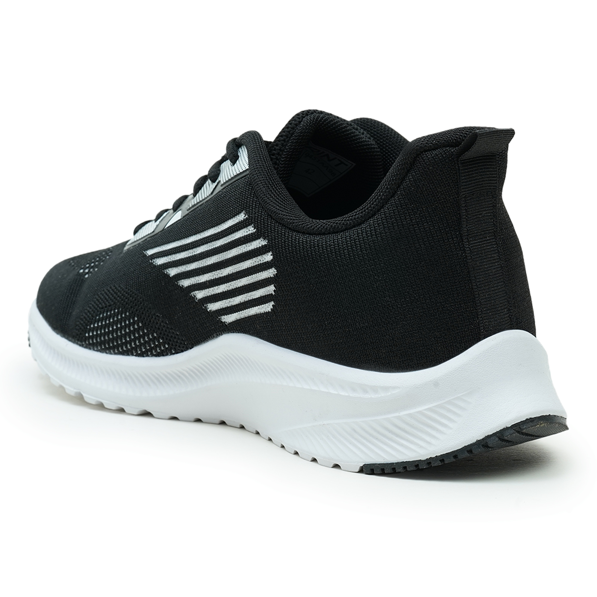 Black Sprint sneaker with a high-performance Flyknit upper for a breathable, sock-like fit. Textile lining adds soft comfort, while the EVA and TPR sole deliver responsive cushioning and durable grip for running, walking, and daily activity. The sleek sneaker silhouette pairs performance with everyday style, making it ideal for active pursuits and casual wear alike.