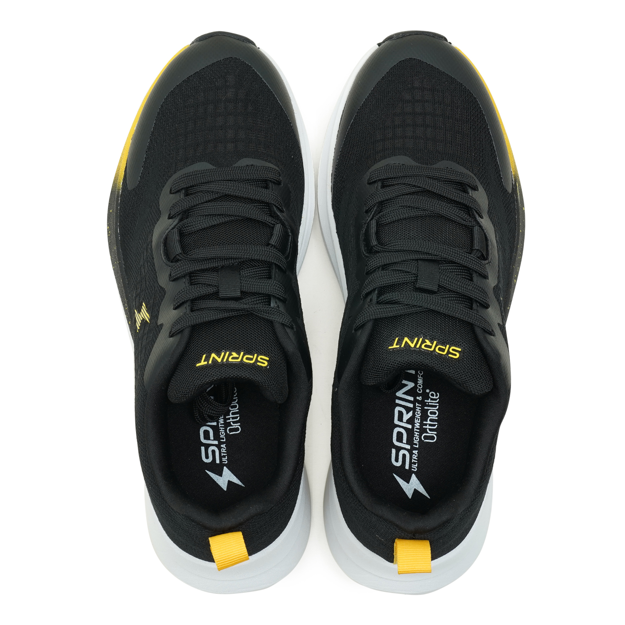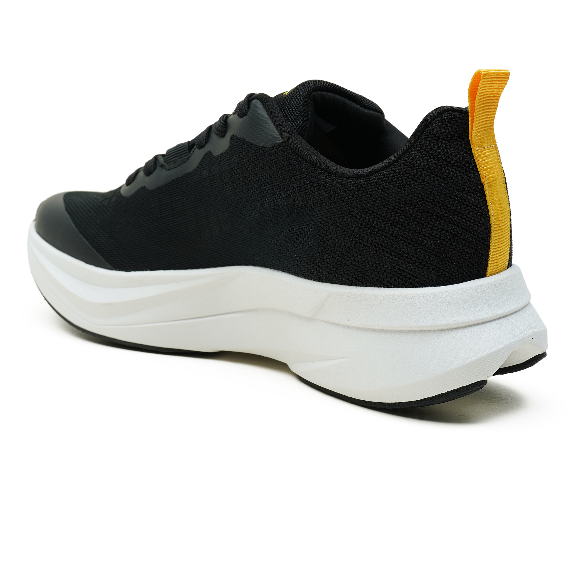 Stay active in comfort with this performance-ready black sports shoe. The breathable mesh upper keeps airflow high and weight low, while the lace-up closure ensures a secure, personalized fit. Underfoot, an OrthoLite insole adds plush cushioning for long wear, supported by an EVA midsole that absorbs impact and keeps every step light. Finished with a durable TPR outsole and a bold orange accent on the sole, it’s ideal for workouts, walking, and everyday activity.