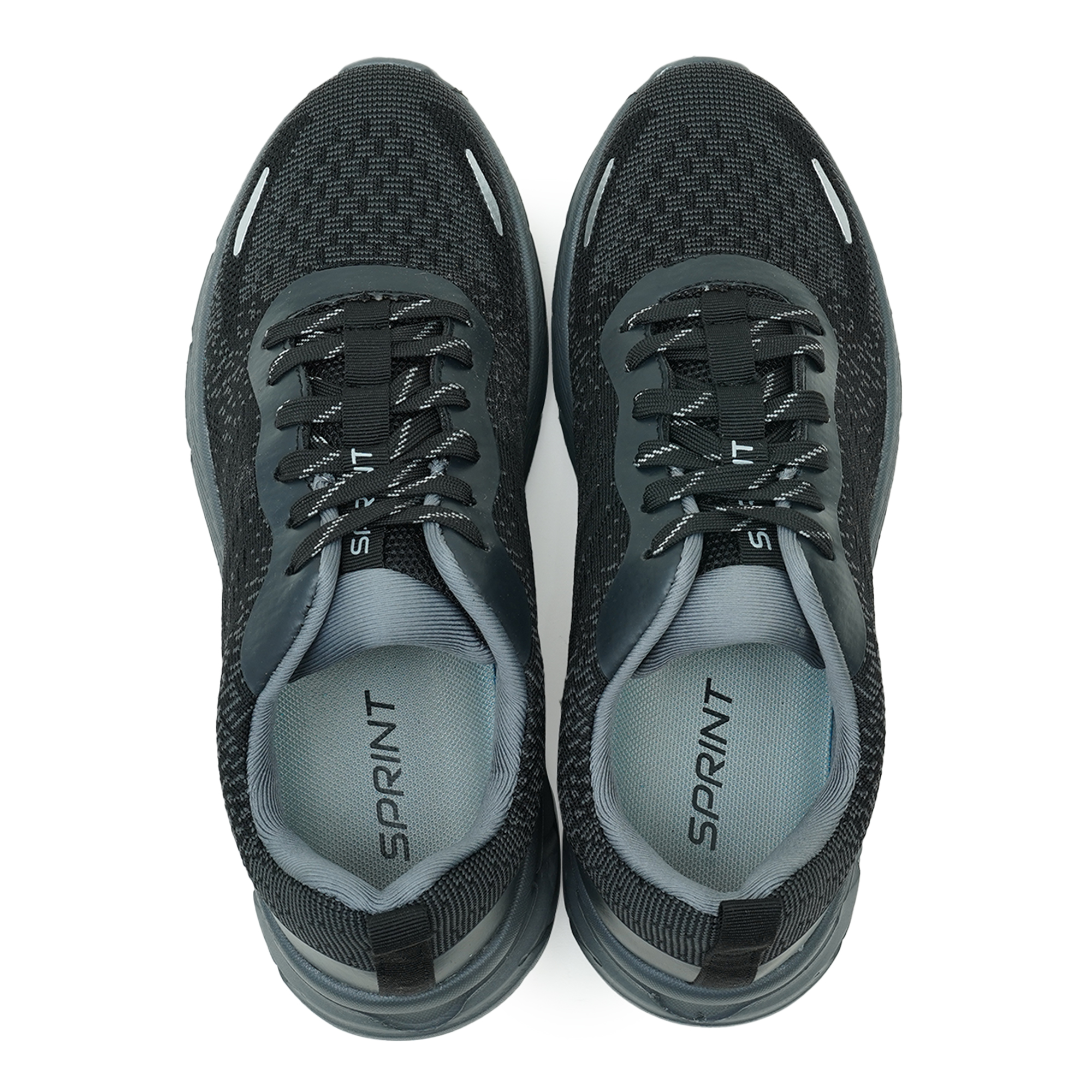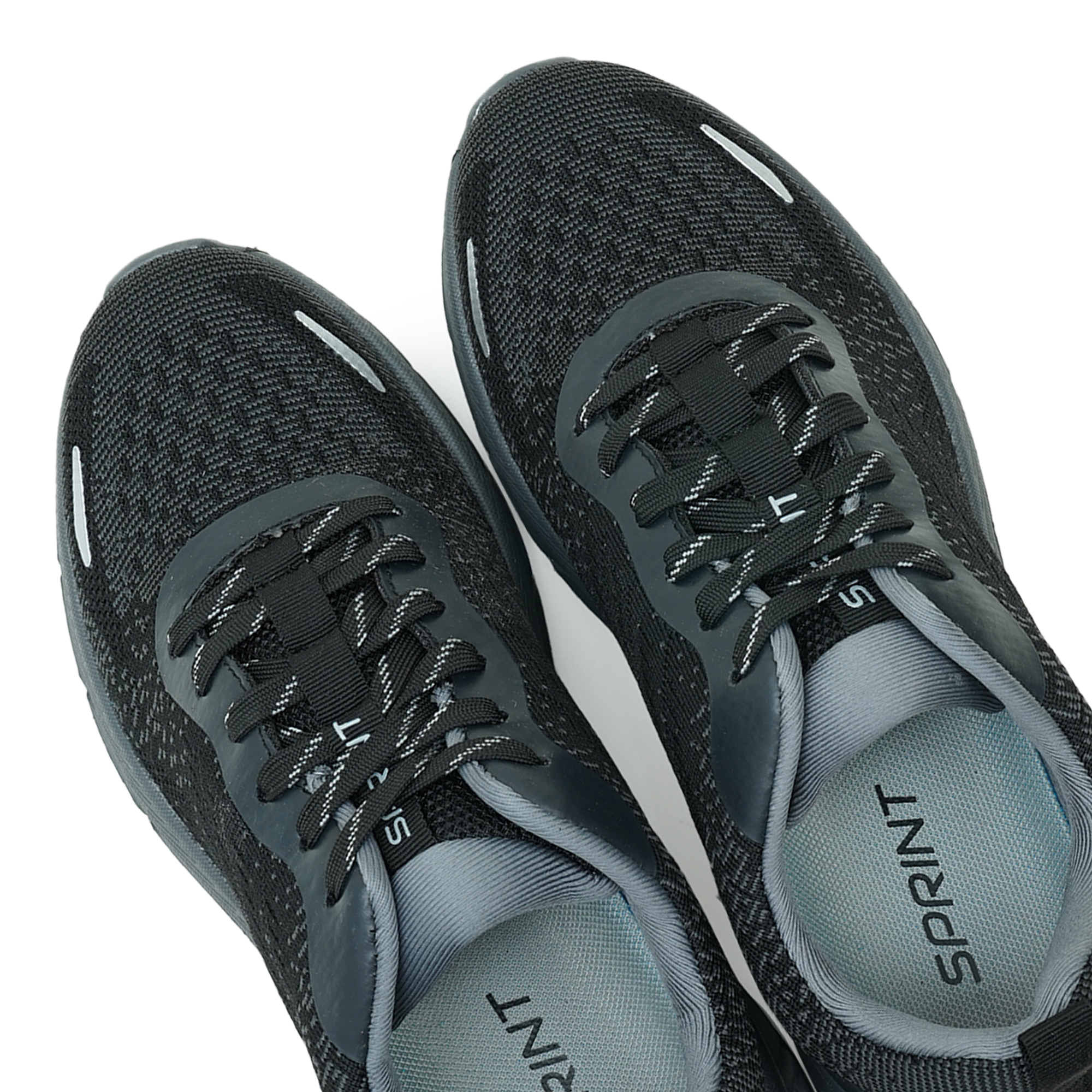 Built for running and everyday training, the Sprint Men’s Sports Shoe in Black pairs a breathable Flyknit upper with a cushioned EVA + TPR sole for smooth, confident strides. The lightweight knit keeps airflow moving as your pace rises, while the grippy outsole helps you stay steady on varied surfaces. Sleek, performance-forward styling and a secure fit make it a go-to for focused workouts and daily miles—designed for momentum, control, and determination.