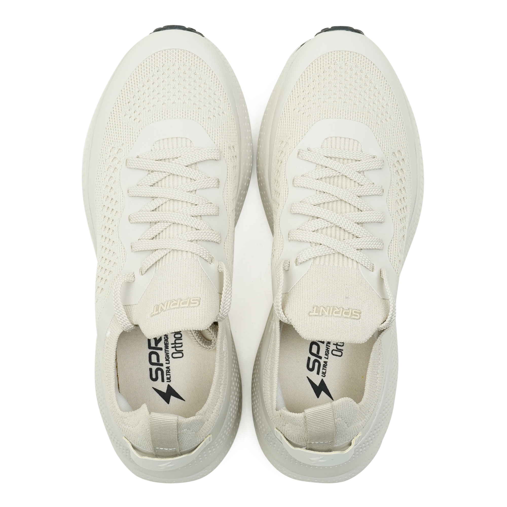 Stay active, stay focused—this men’s performance shoe is built to move with you through training, walks, and daily routines. The Flyknit upper keeps the feel light and breathable, while the lace-up fit delivers steady lockdown when you pick up the pace. Underfoot, an OrthoLite insole adds lasting comfort, and the EVA + TPR sole balances responsive cushioning with reliable grip. Finished in a clean off-white, it brings athletic energy to every step.