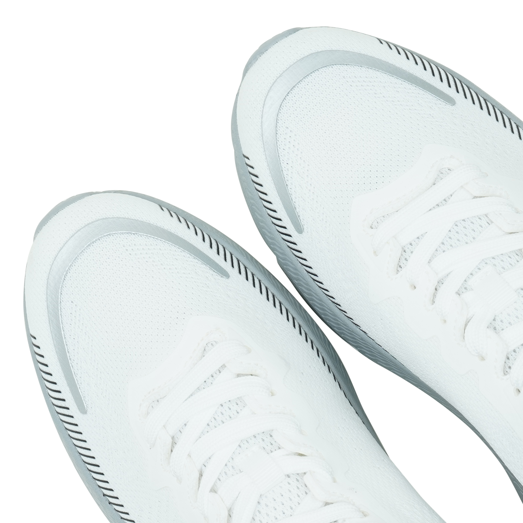Made for everyday performance and active routines, this men’s sports shoe pairs a breathable mesh upper with a convenient slip-on design for quick wear and easy movement. The OrthoLite insole delivers soft, long-lasting cushioning, while the lightweight EVA sole helps absorb impact for a smoother, more comfortable stride—finished in a clean white and grey combo that works on and off the track.
