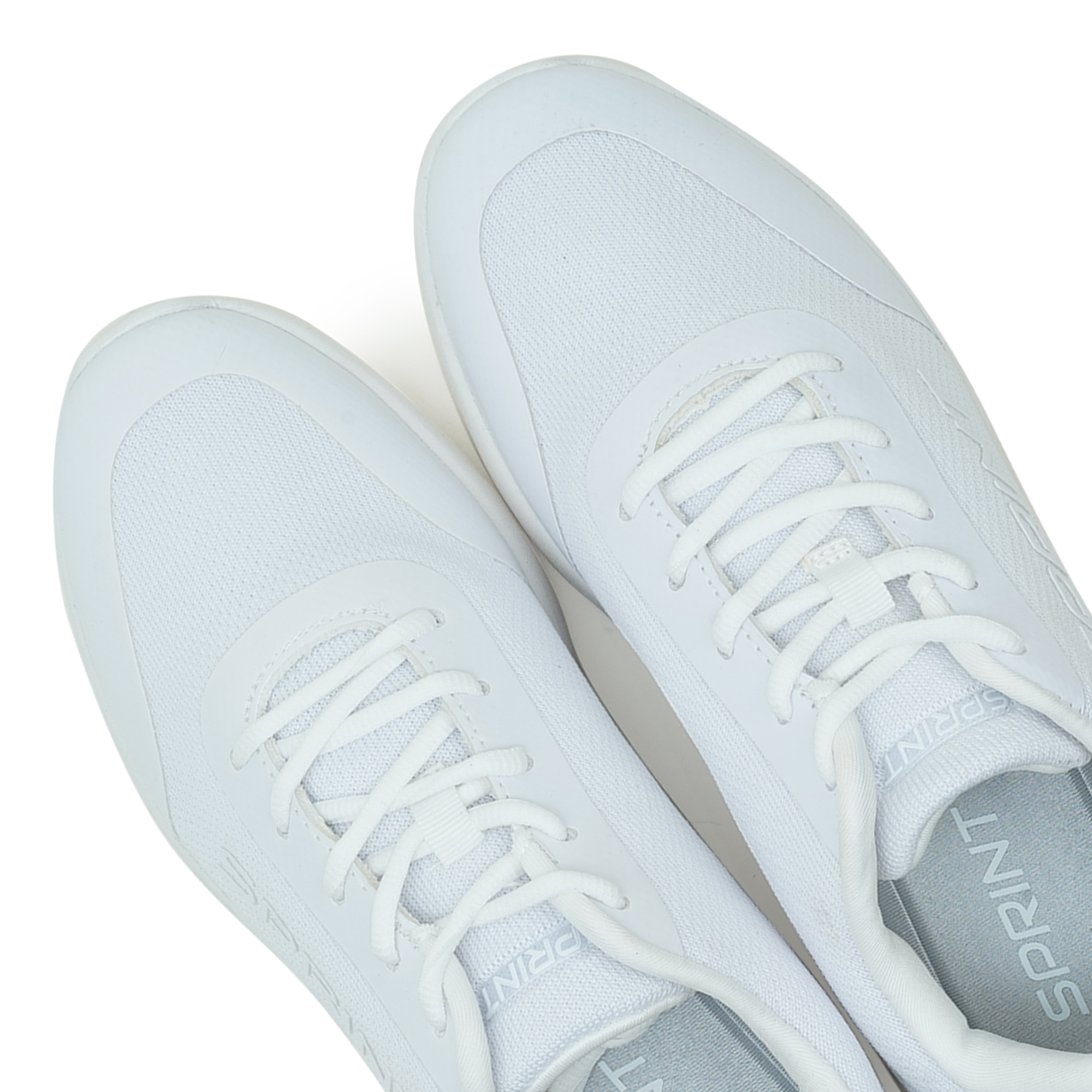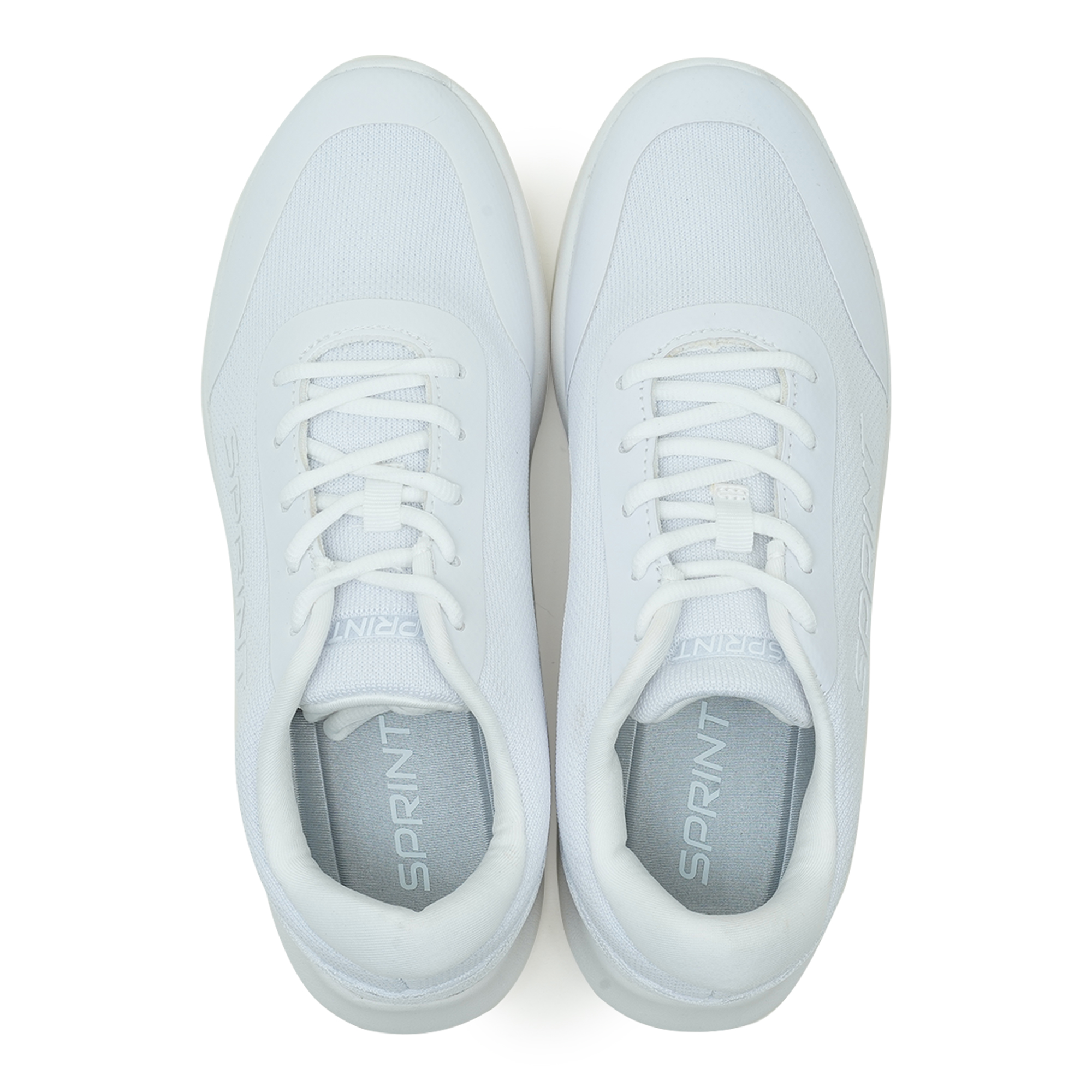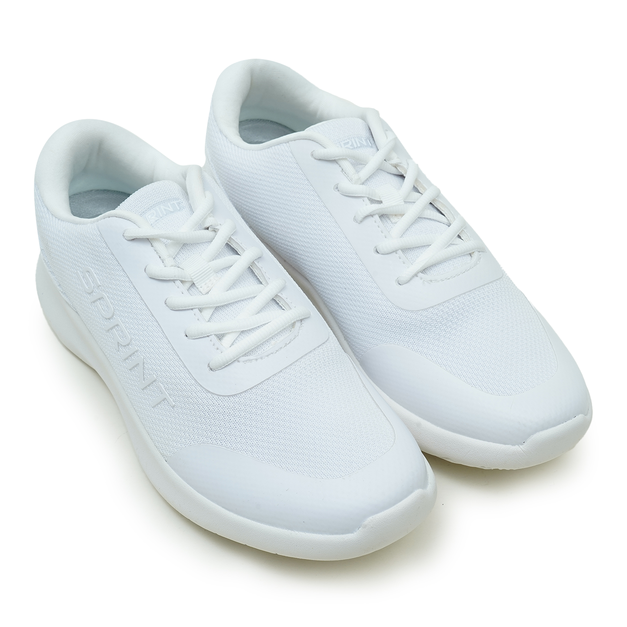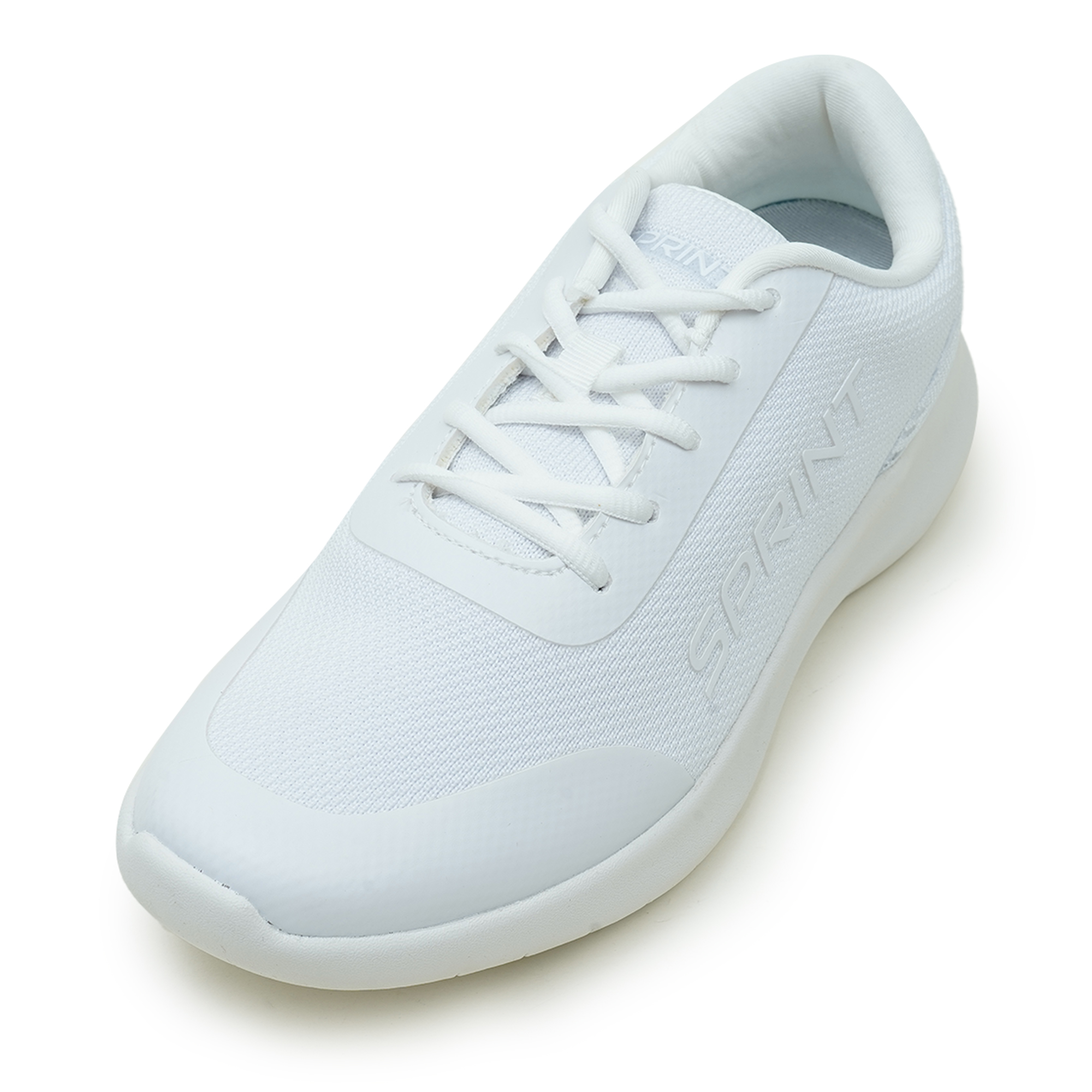 White Sprint sneaker with a breathable mesh upper and textile lining for cool, comfortable wear. An EVA sole delivers cushioned, responsive steps, while the clean sneaker silhouette supports active living—from walking to daily training. Lightweight, versatile, and built for performance with a minimal, modern look.