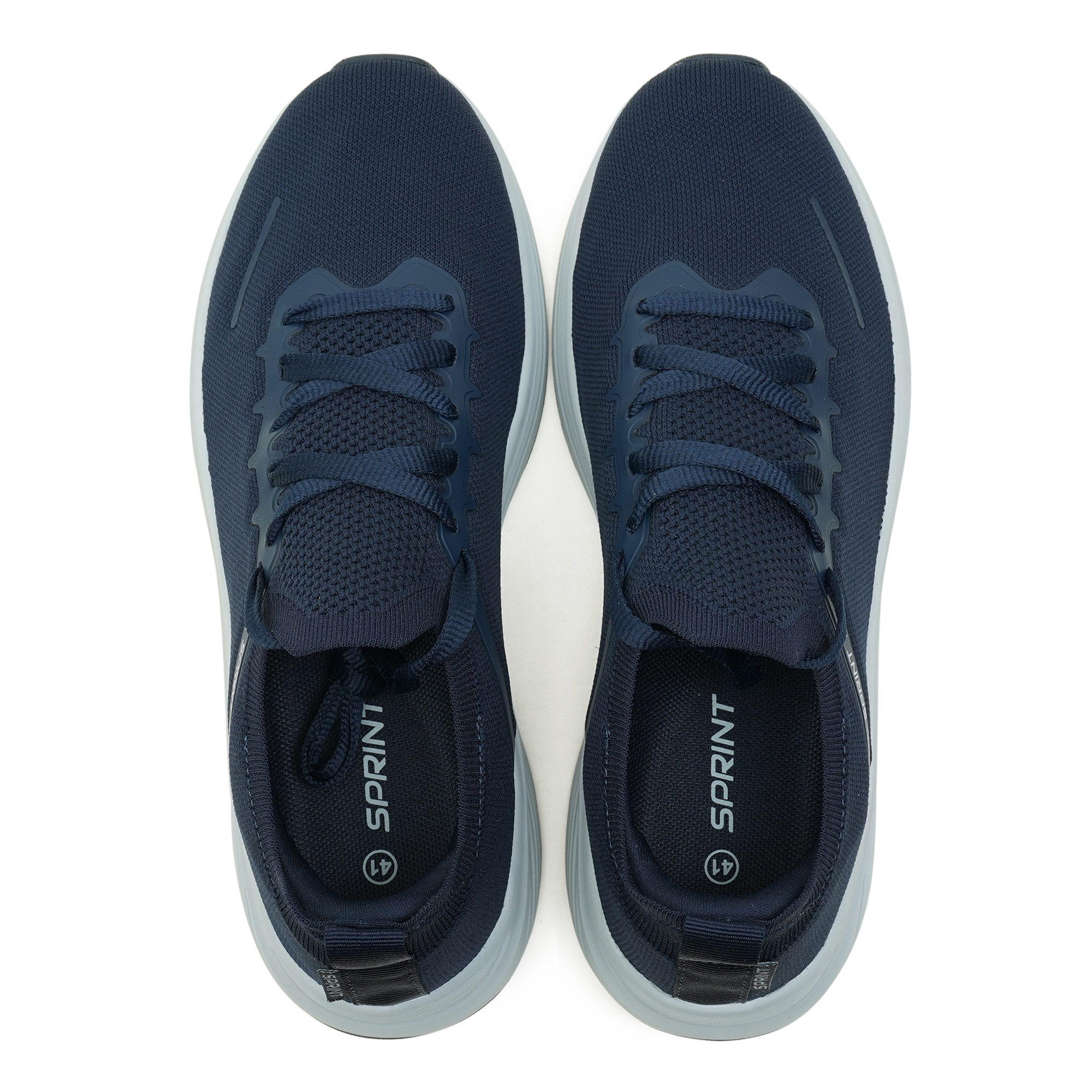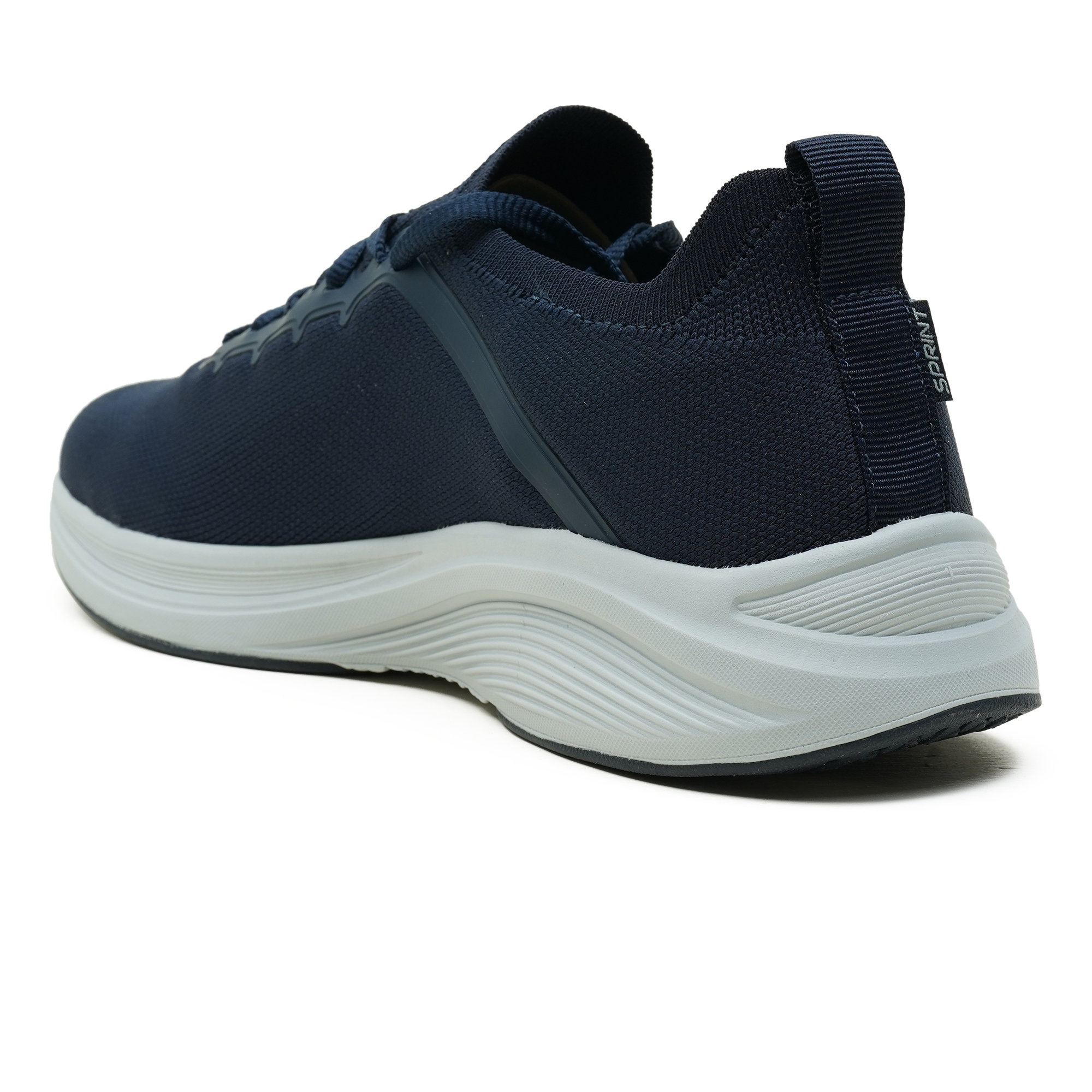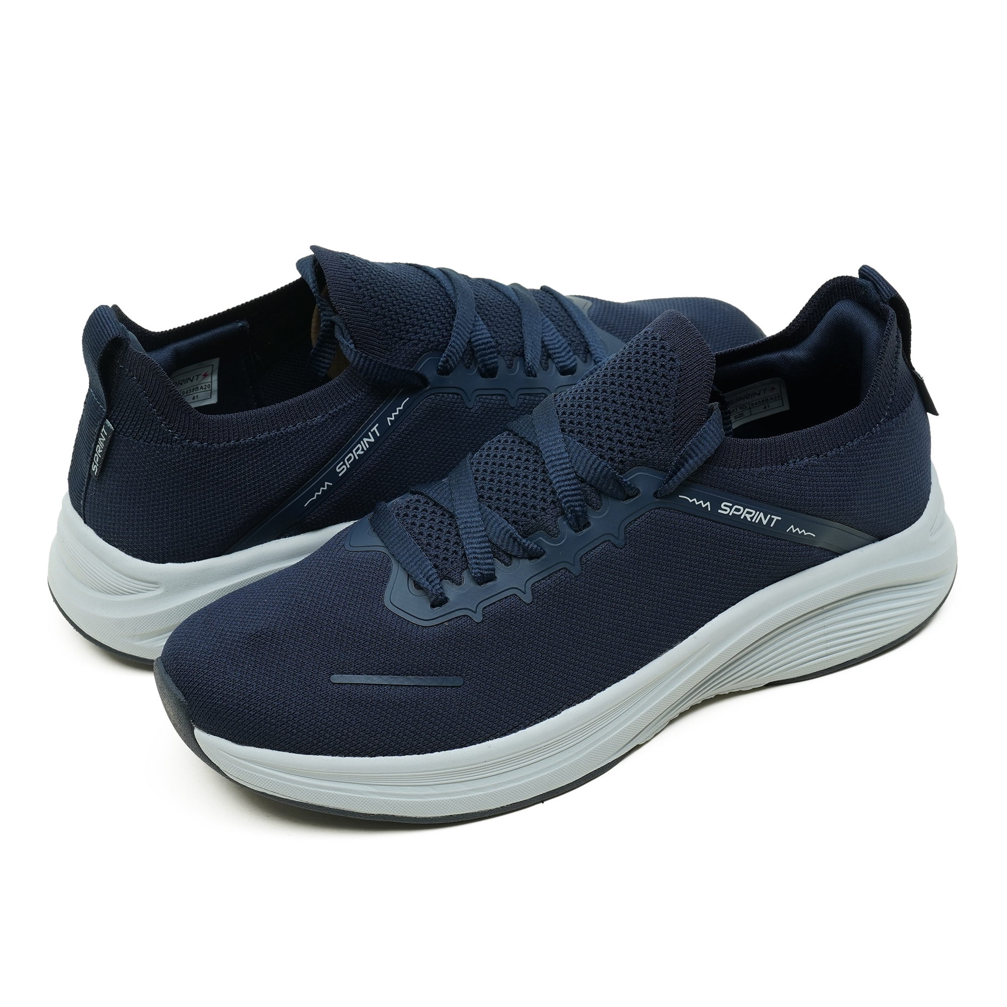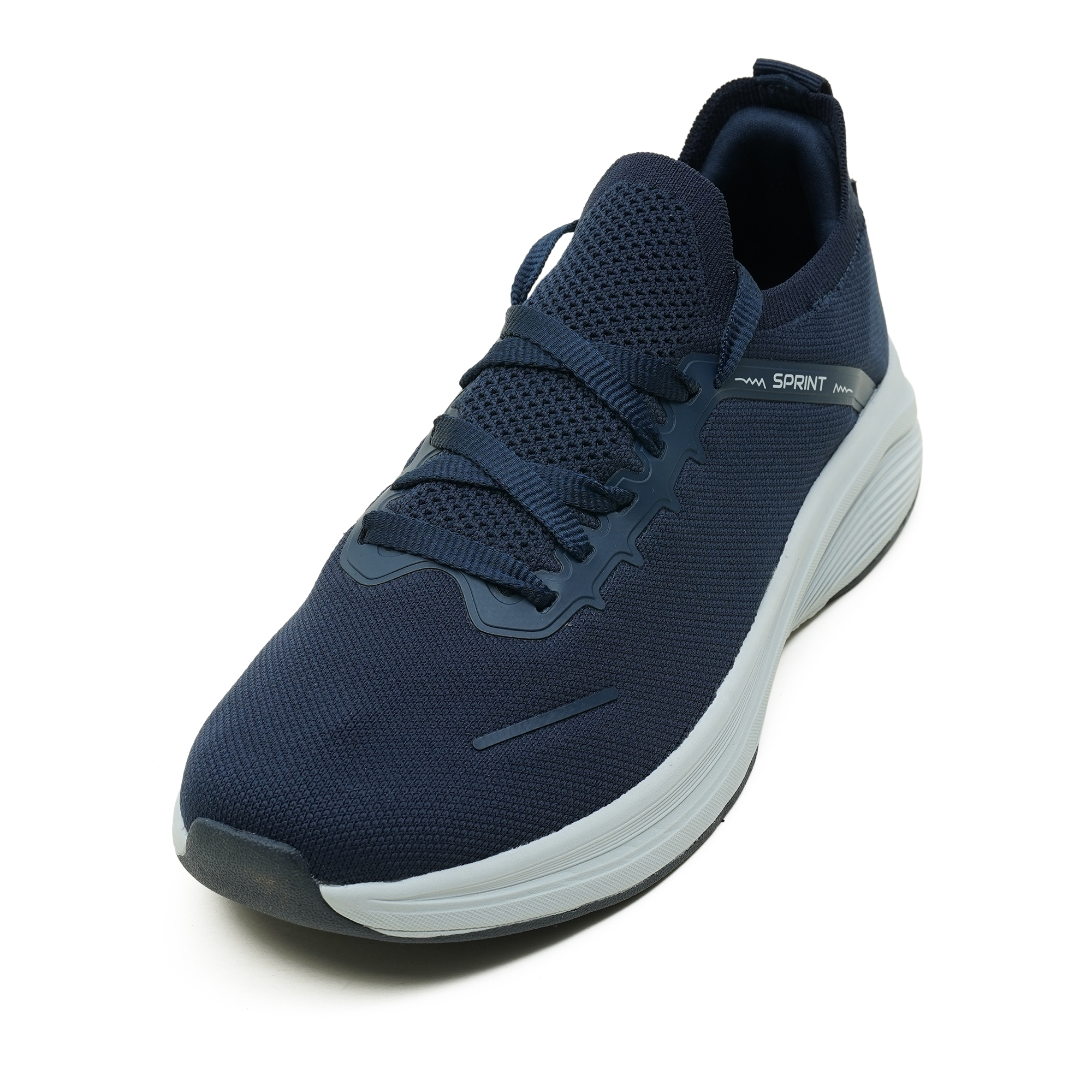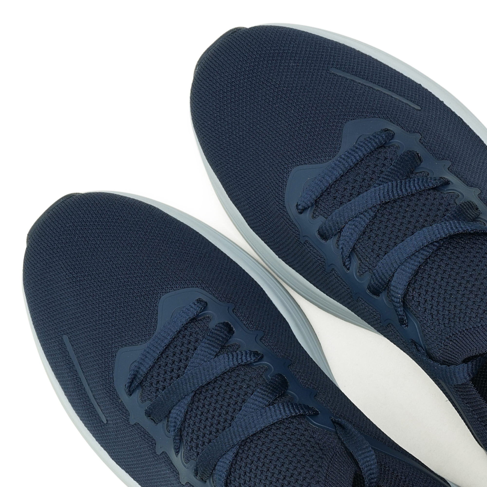 Upgrade your everyday performance with this men’s navy lace-up sports shoe. The breathable Flyknit upper keeps the fit light and flexible, helping you stay comfortable through workouts and daily movement. Inside, an OrthoLite insole adds long-lasting cushioning to reduce foot fatigue. Underfoot, the EVA midsole supports smooth, shock-absorbing strides, while the TPR outsole enhances durability and grip. A great all-round choice for training, walking, and active routines.