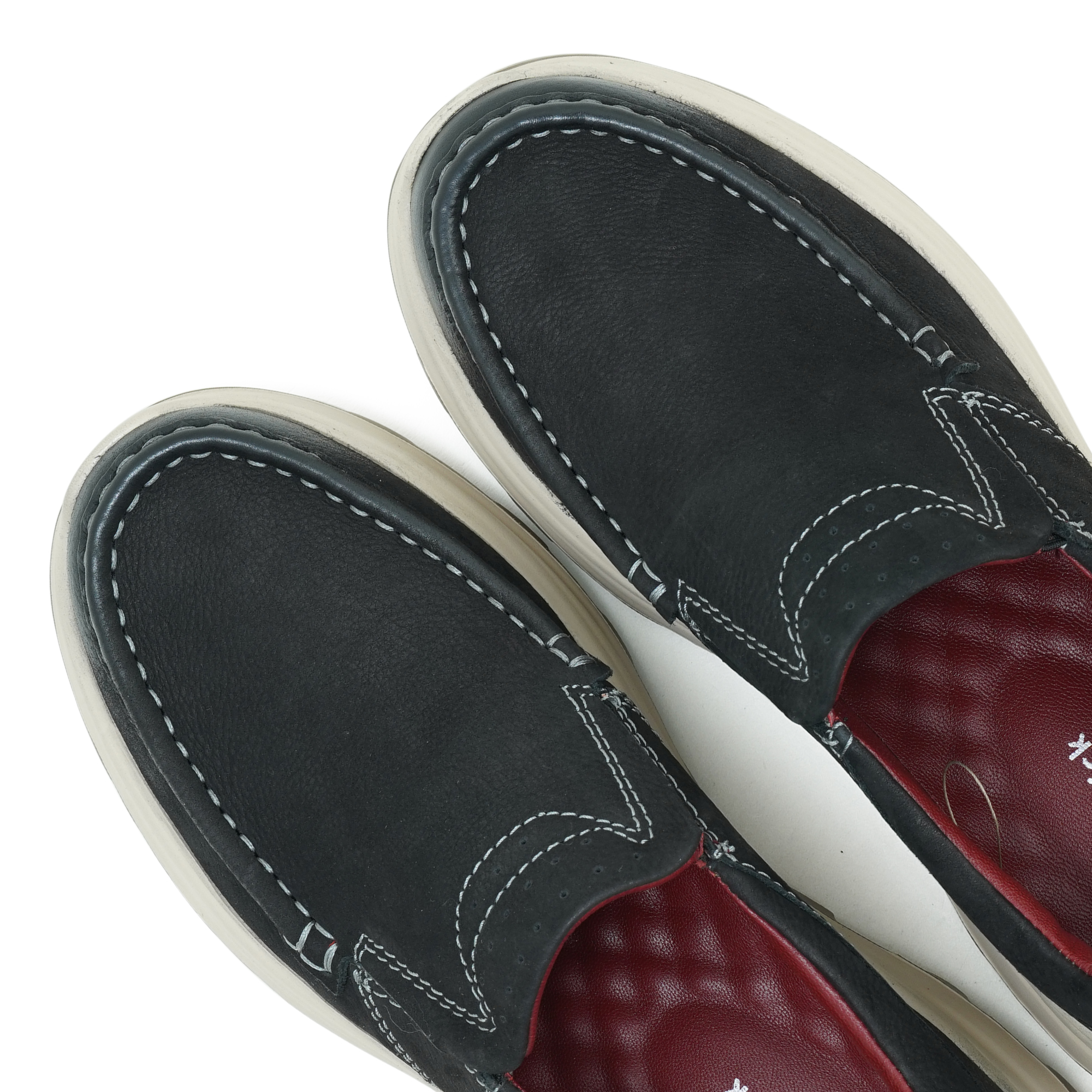 Classic moccasin-style stitching for a timeless casual look.