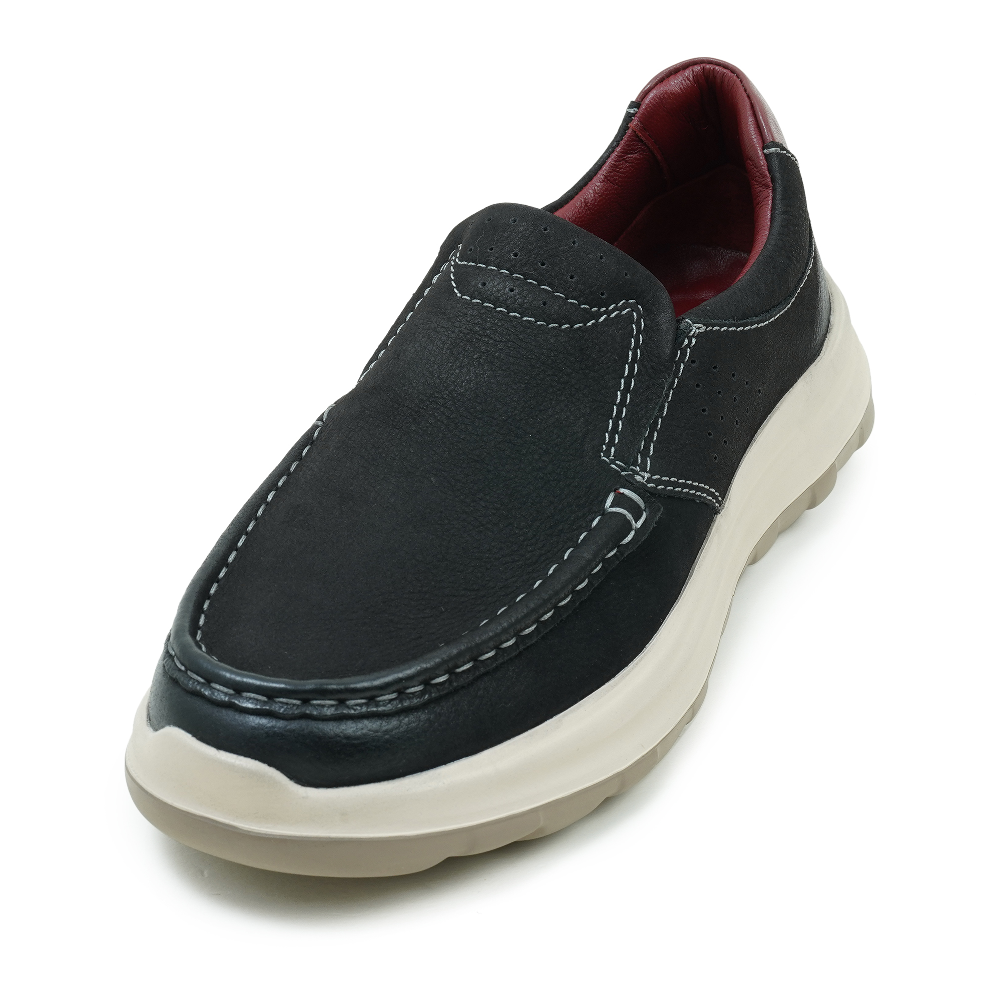 The Maverick Men’s Casual Moccasin in a sleek black color is the perfect fusion of a relaxed, slip-on style and a rugged, adventurous spirit. Crafted from premium nubuck leather, these shoes provide a soft, velvety texture that is both durable and sophisticated, allowing you to feel free to be yourself in any setting. The classic moccasin silhouette offers a flexible fit that conforms naturally to your foot, while the ultra-lightweight EVA sole ensures superior shock absorption and all-day comfort. Designed for the modern man who values effortless transitions, these black slip-ons provide a lightweight yet sturdy foundation for both urban exploration and casual weekend getaways.