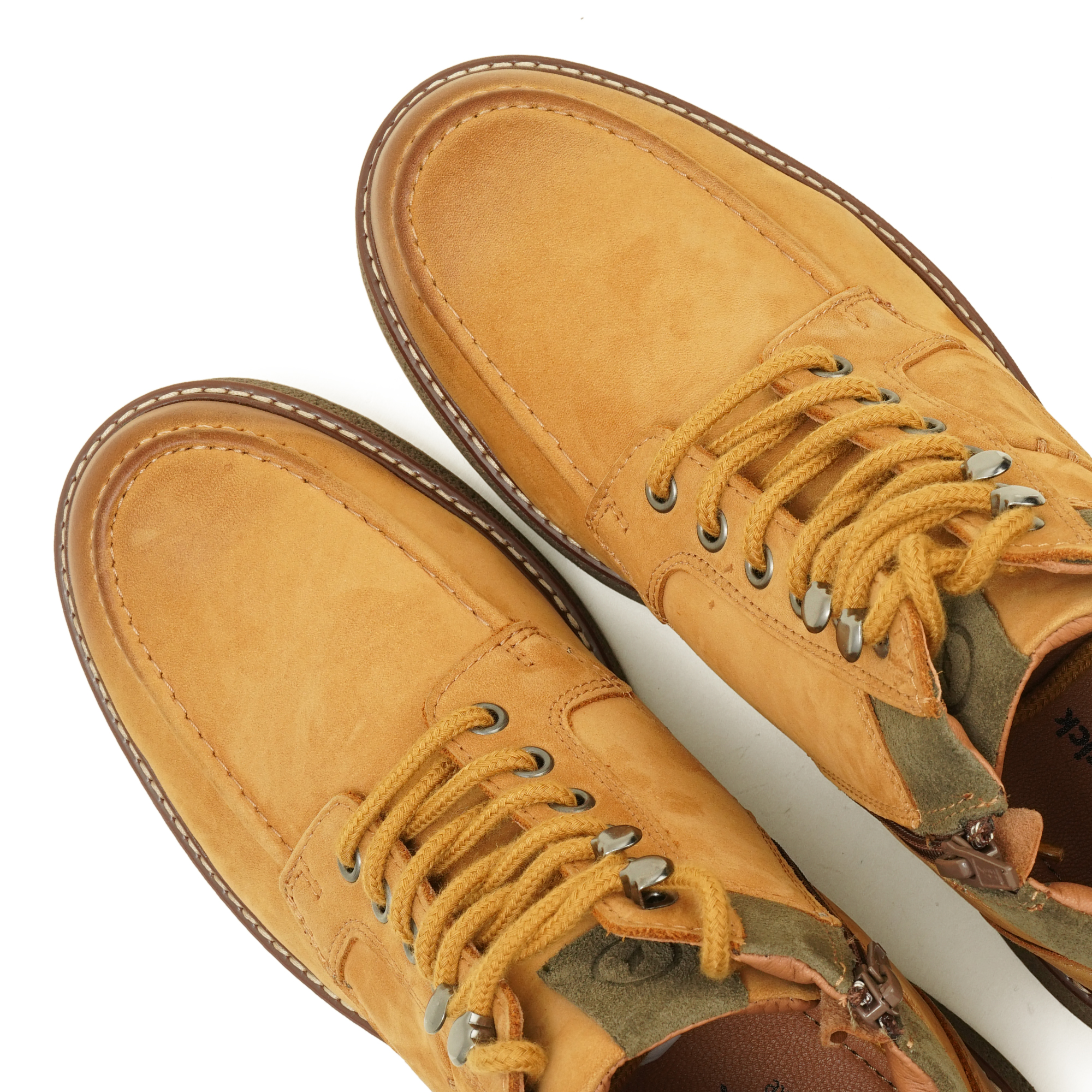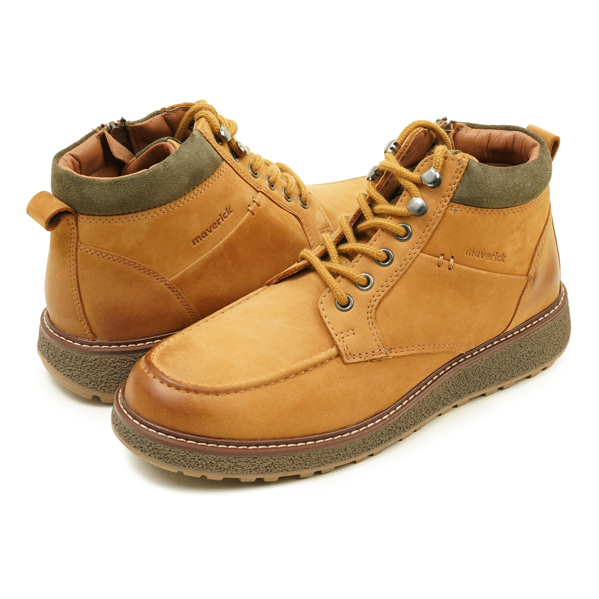 The Maverick Men’s Boot in a warm tan color is the ultimate gear for those who live to explore and embrace the spirit of being free to be. Crafted from premium nubuck leather, these boots provide a soft, velvety texture that offers both rugged durability and a refined outdoor aesthetic. The earthy tan tone perfectly complements an adventurous lifestyle, whether you are navigating mountain trails or wandering through urban landscapes. Featuring a secure lace-up system, these boots ensure maximum ankle stability and a customized fit, empowering you to take on every new journey with confidence, comfort, and a bold sense of personal style.