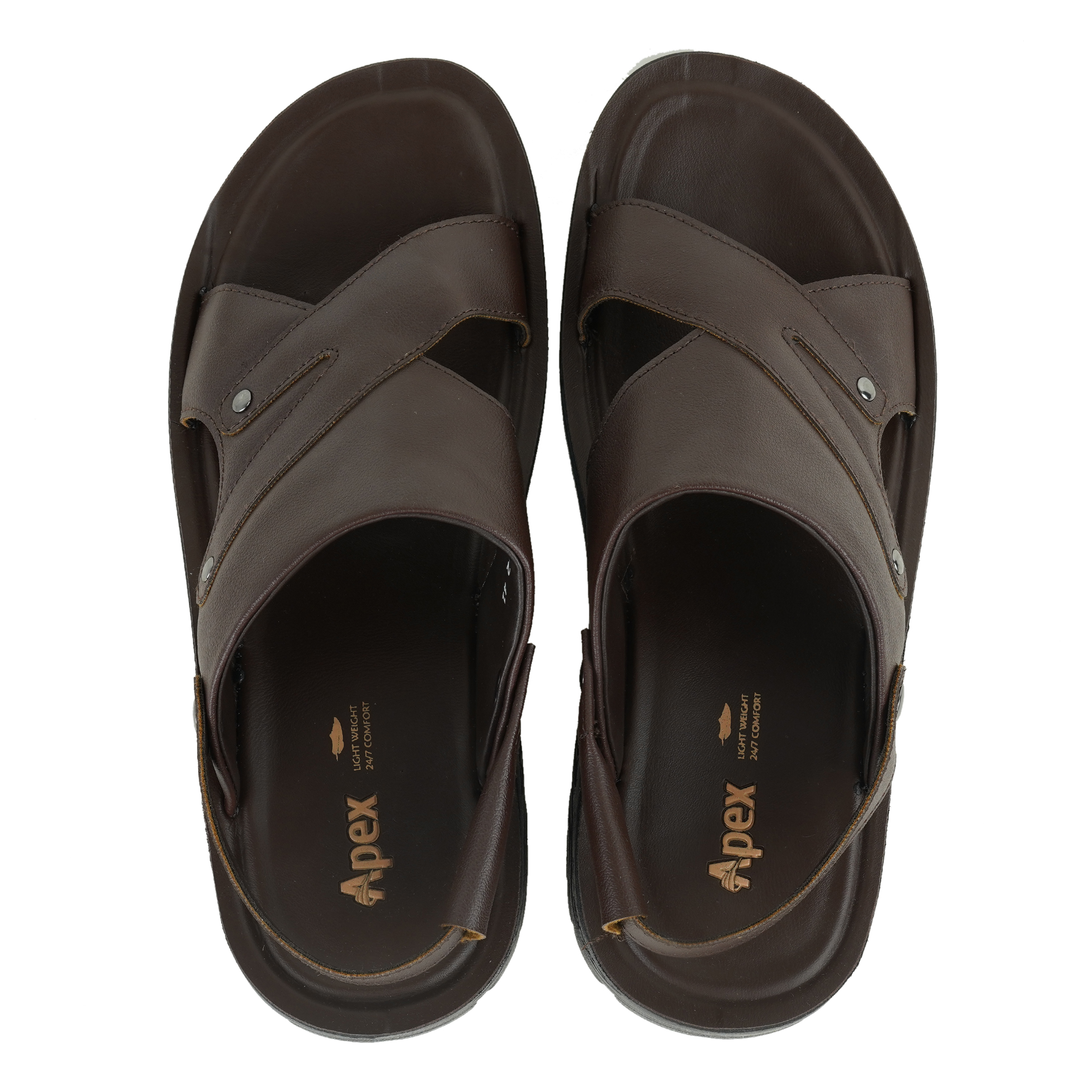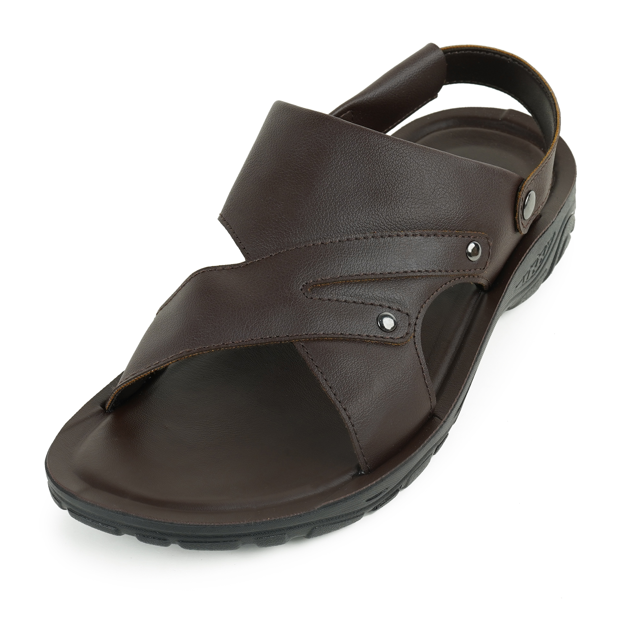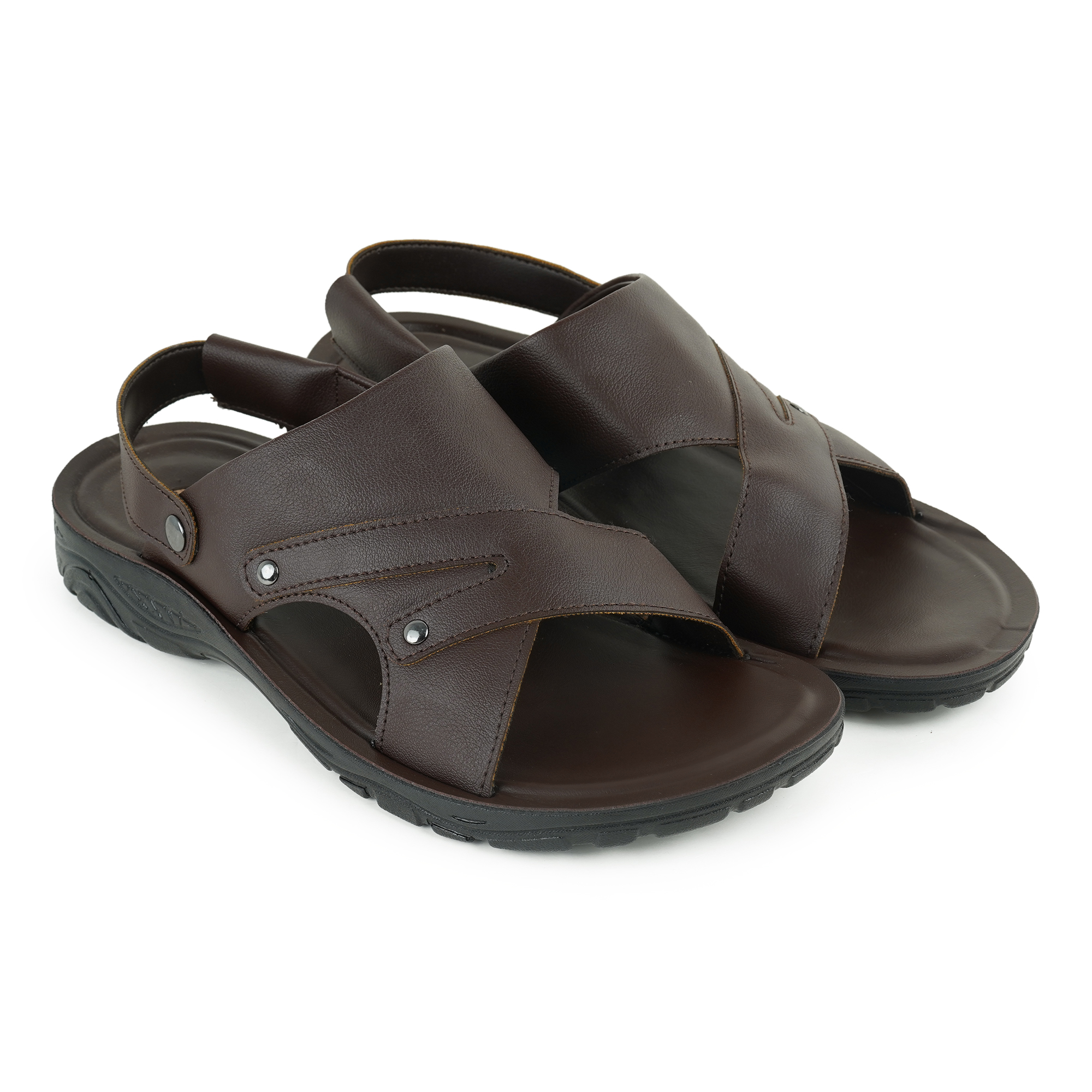 The Apex Men's Back Belt Sandal is designed for the modern man who prefers to choose style and comfort both. Featuring a rich, matte-finish upper with sophisticated cross-straps and metallic rivet details, this sandal elevates any casual outfit.
