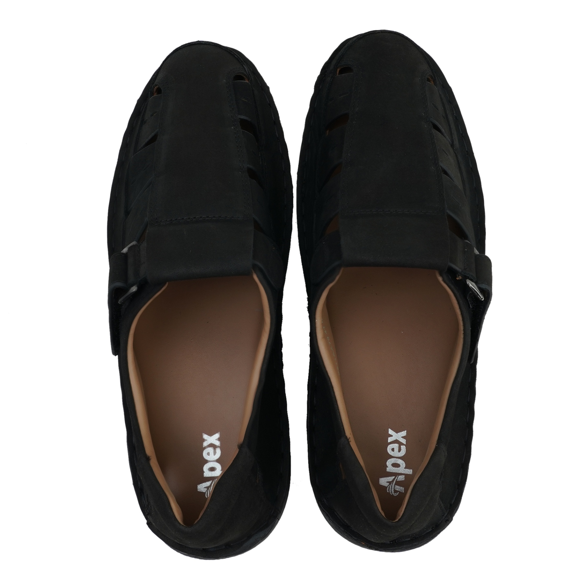 The Apex Men’s Closed Sandal combines durability, comfort, and straightforward style for men on the go. Crafted with a black leather upper and a supportive PU sole, it provides all-day cushioning while keeping your feet secure. Its closed design adds protection without compromising breathability, making it perfect for casual outings, errands, or relaxed weekends. Reliable, comfortable, and versatile — a sandal that fits seamlessly into your daily routine.