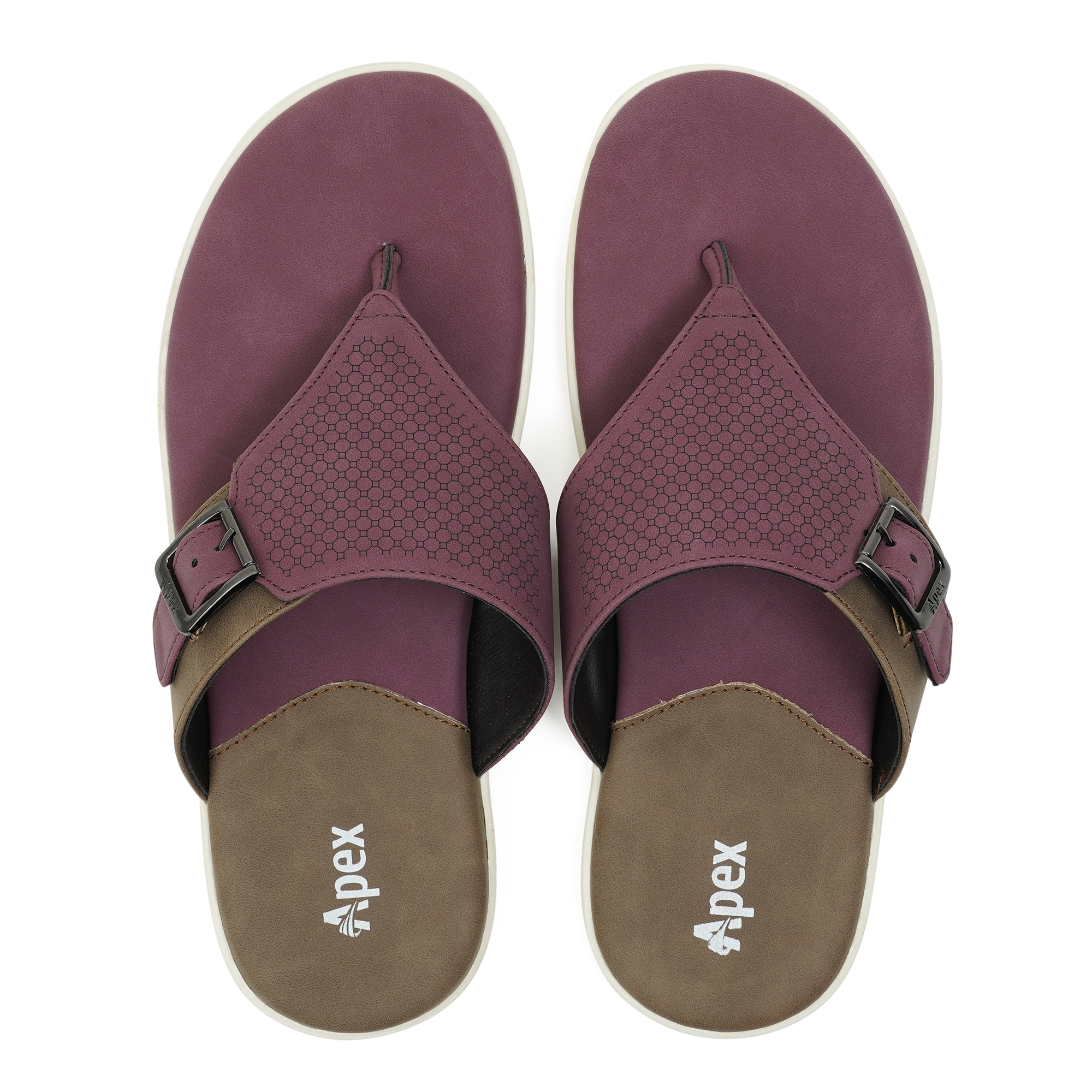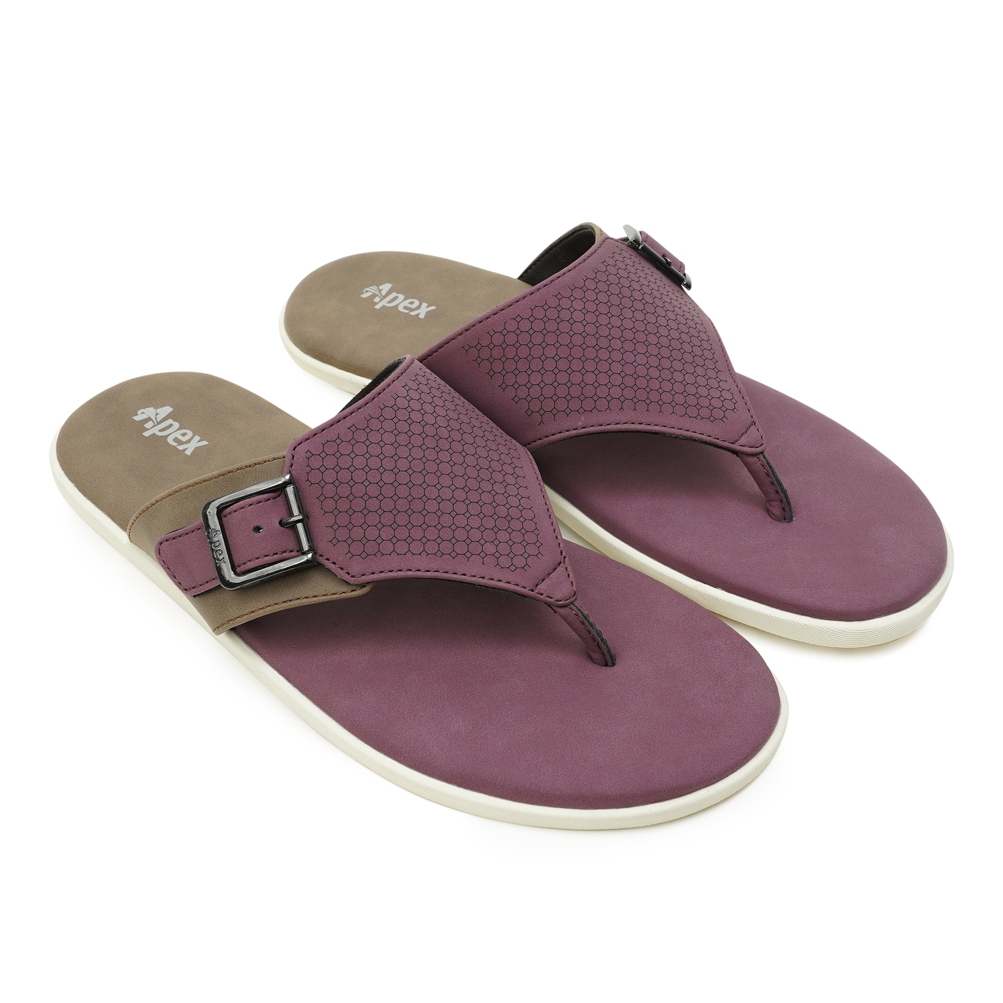 Add a standout touch to your casual wardrobe with the Apex Men’s Thong Sandal in red wine. Designed with a comfortable slip-on silhouette, it features a durable synthetic upper and a stylish textured front strap. The side belt with a metal buckle closure gives an adjustable fit and a more secure feel while walking. Finished with a contrasting sole and an easygoing profile, this sandal is a reliable choice for daily wear, weekends, and relaxed outings.