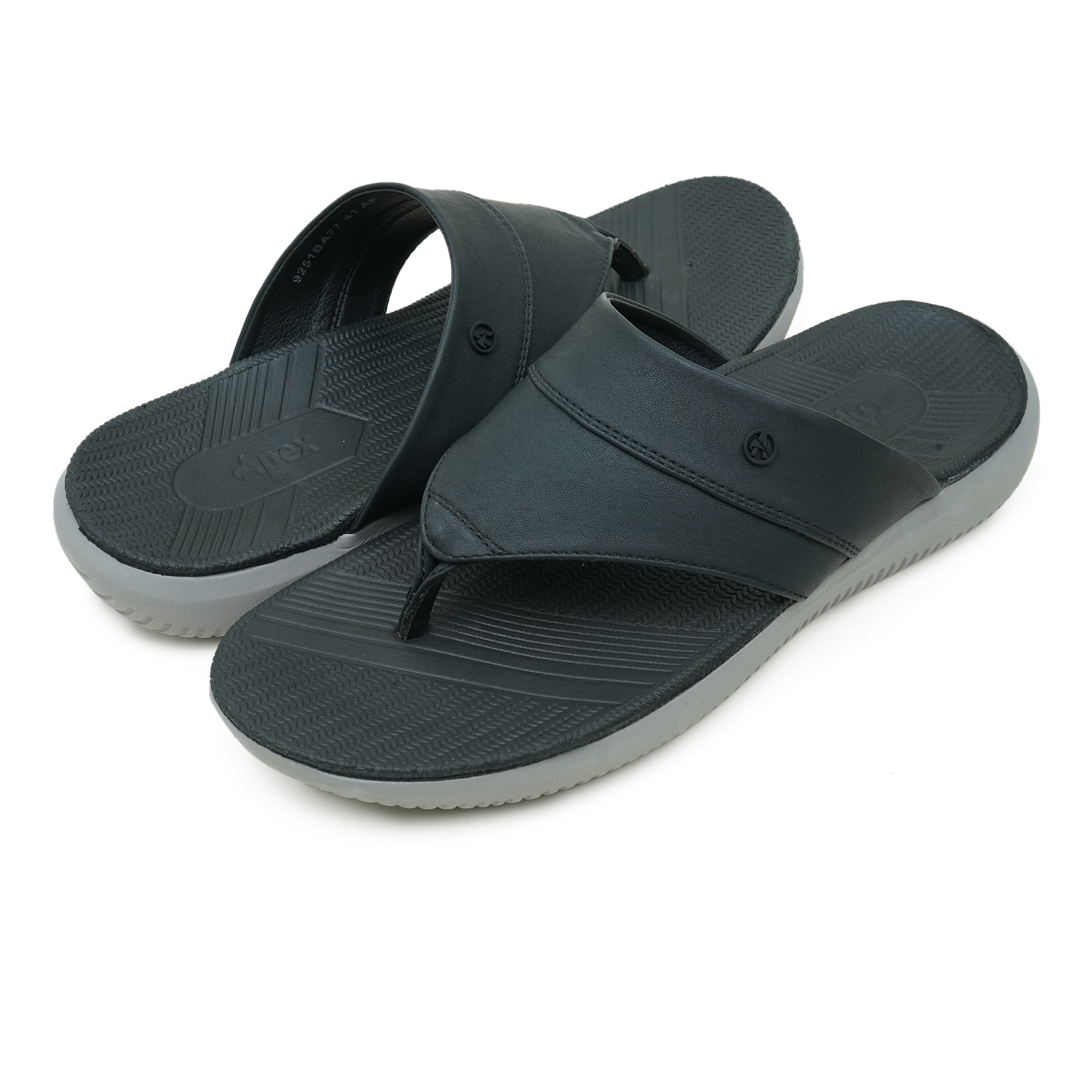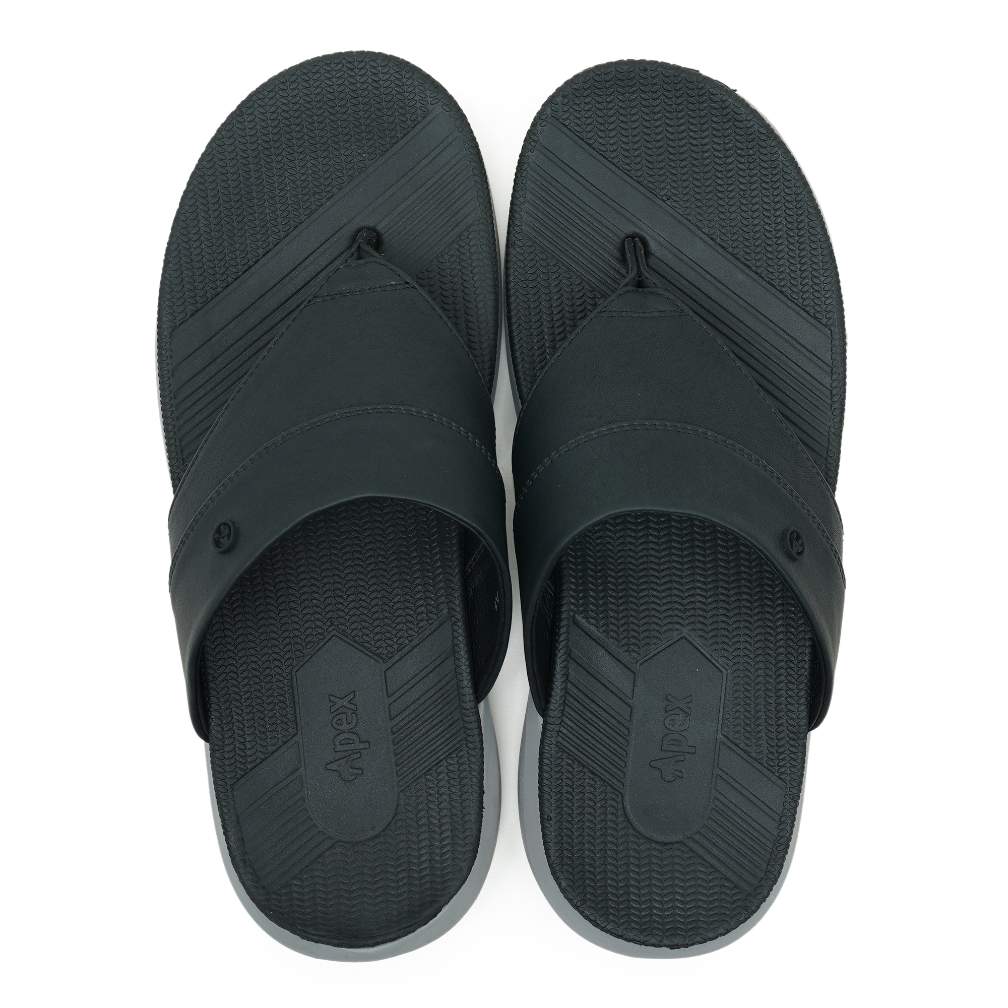 Step into everyday comfort with the Apex Men’s Sandal in classic black. Designed in a thong-style slip-on profile, it features a durable synthetic upper with a wide strap that sits securely on the foot. The textured footbed helps keep your steps stable during regular wear, while the sturdy outsole is built for daily use.