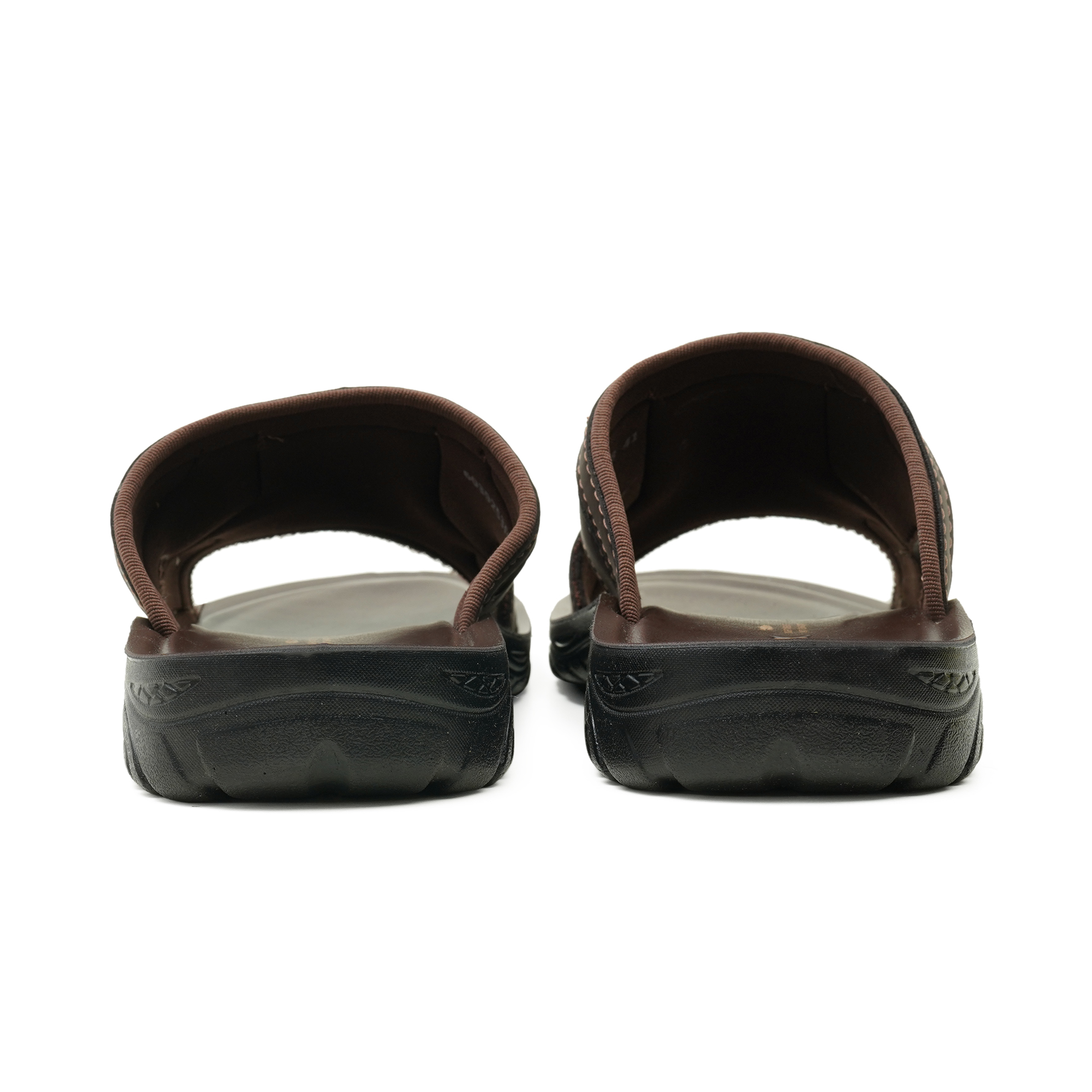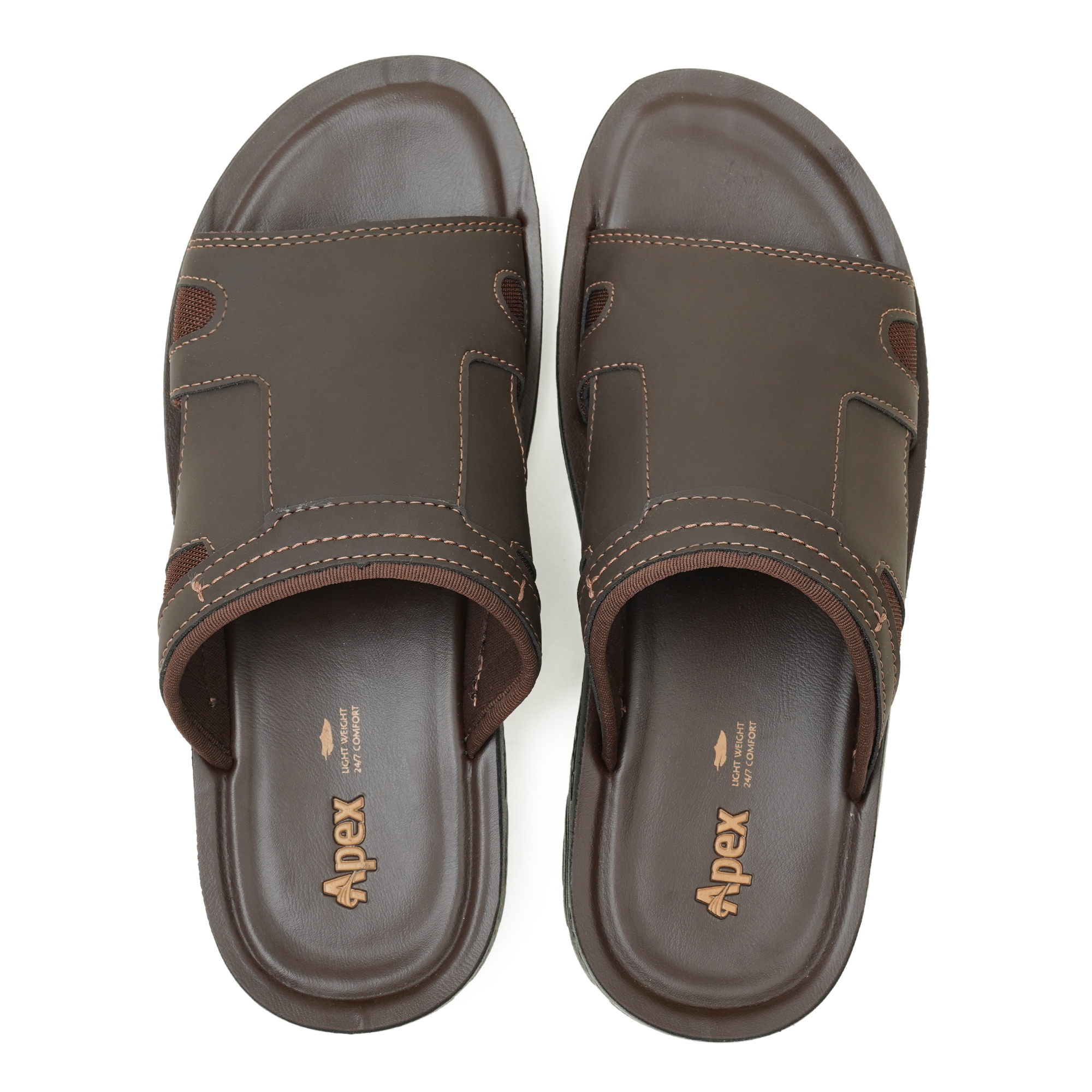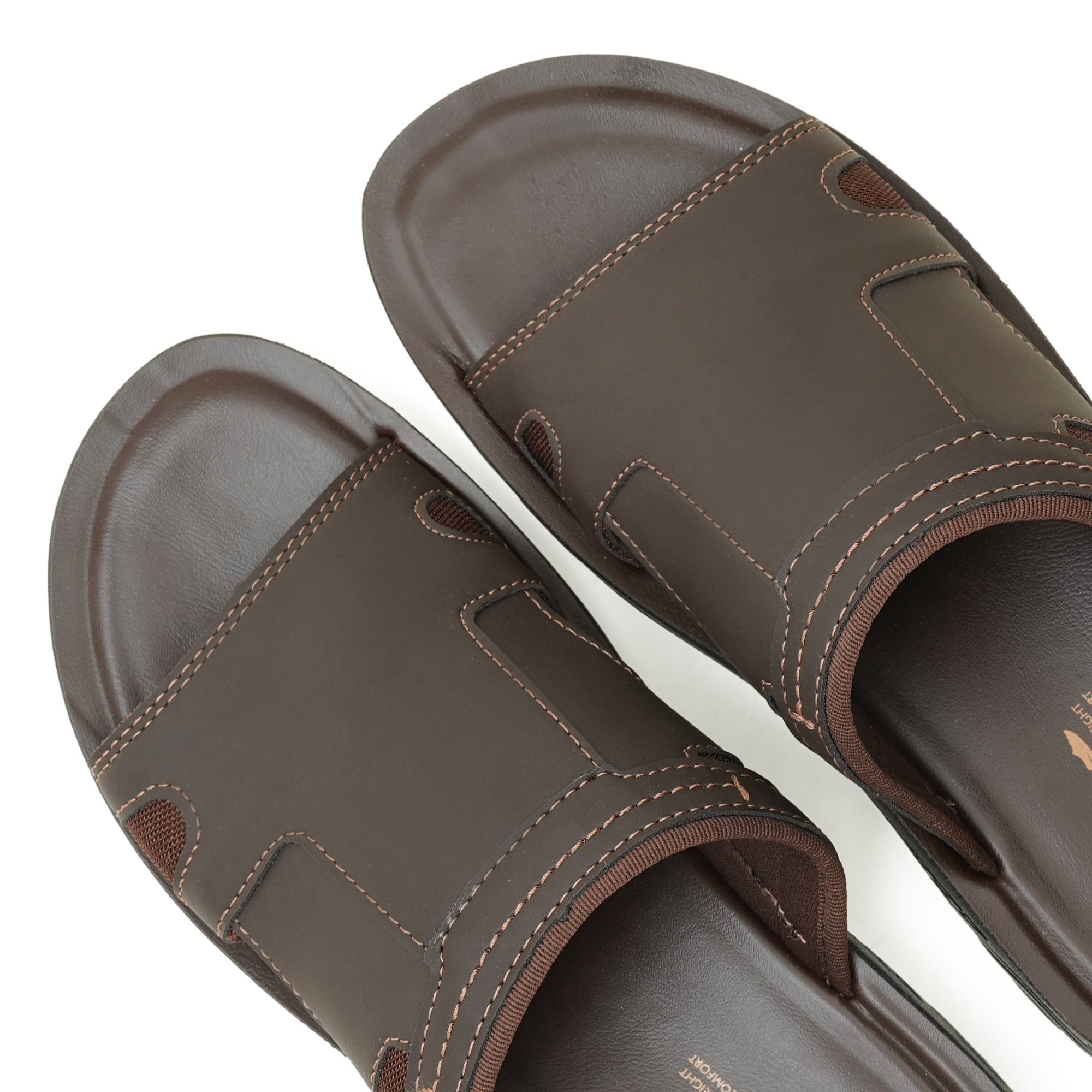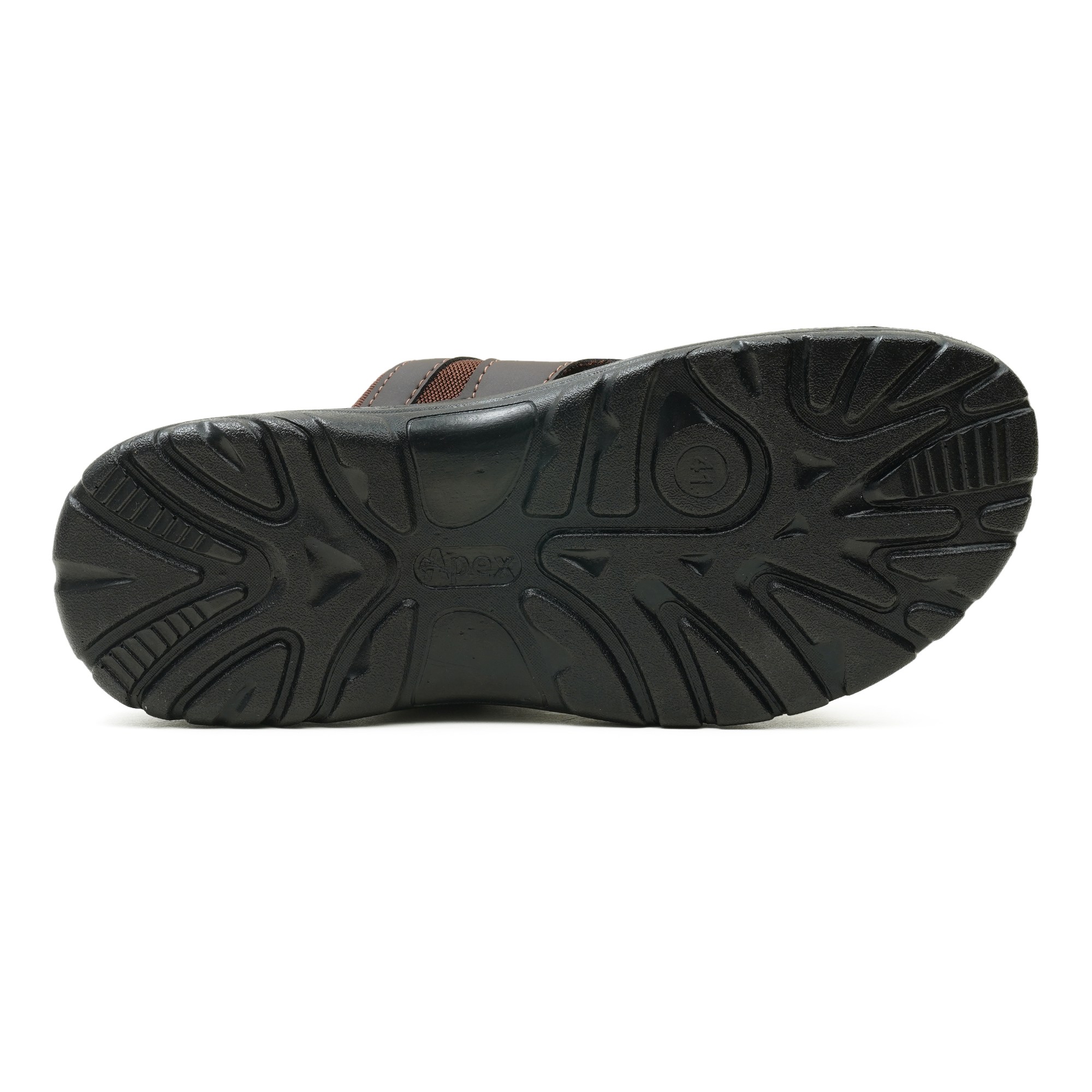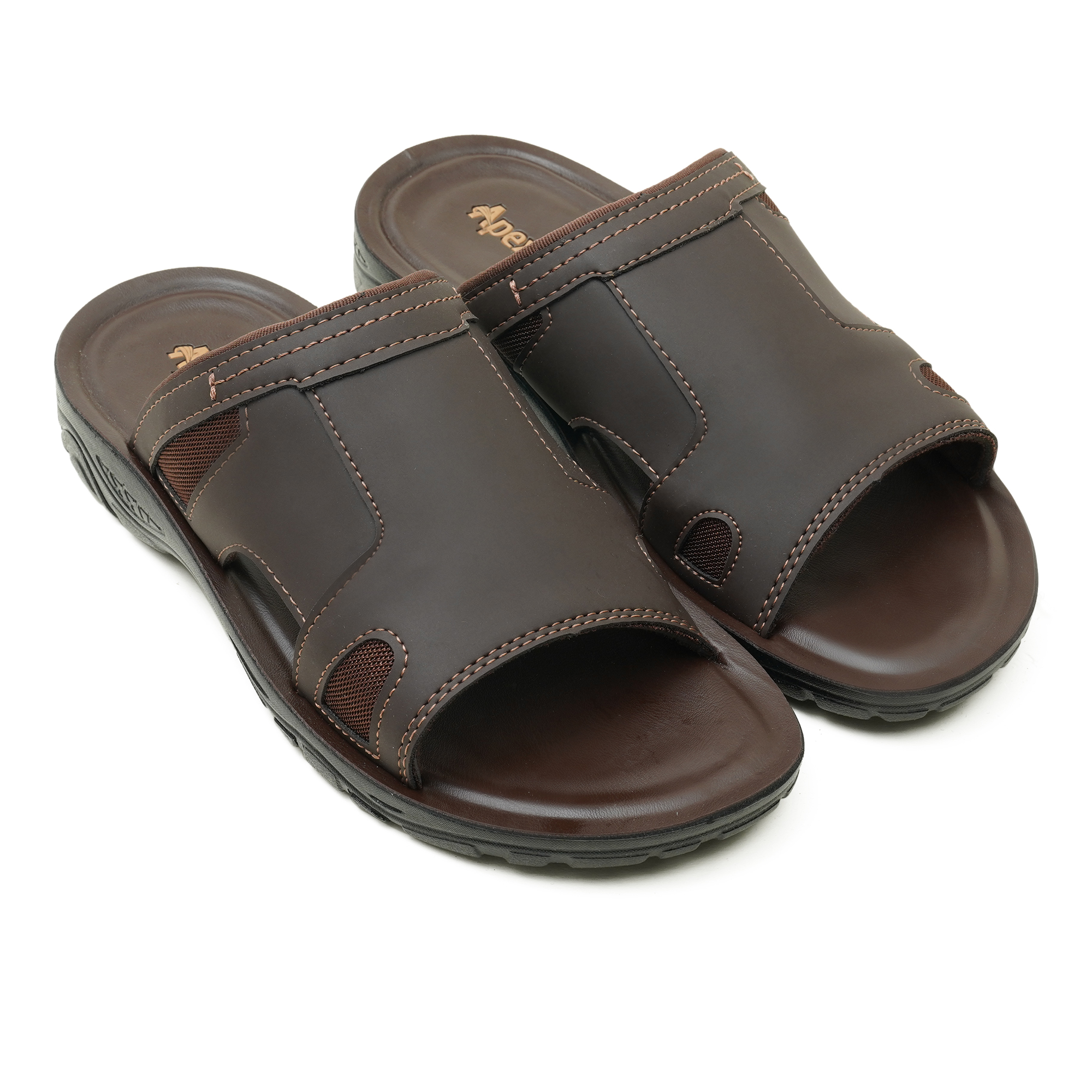 Upgrade your everyday comfort with this Apex men’s slip-on sandal in dark brown. Featuring an open-toe design, it helps keep your feet cool and relaxed throughout the day. The PVC upper comes with a leather-like texture, giving it a smart, premium look while remaining easy to clean and maintain. Built for daily wear, the comfortable footbed and supportive sole make it ideal for casual outings