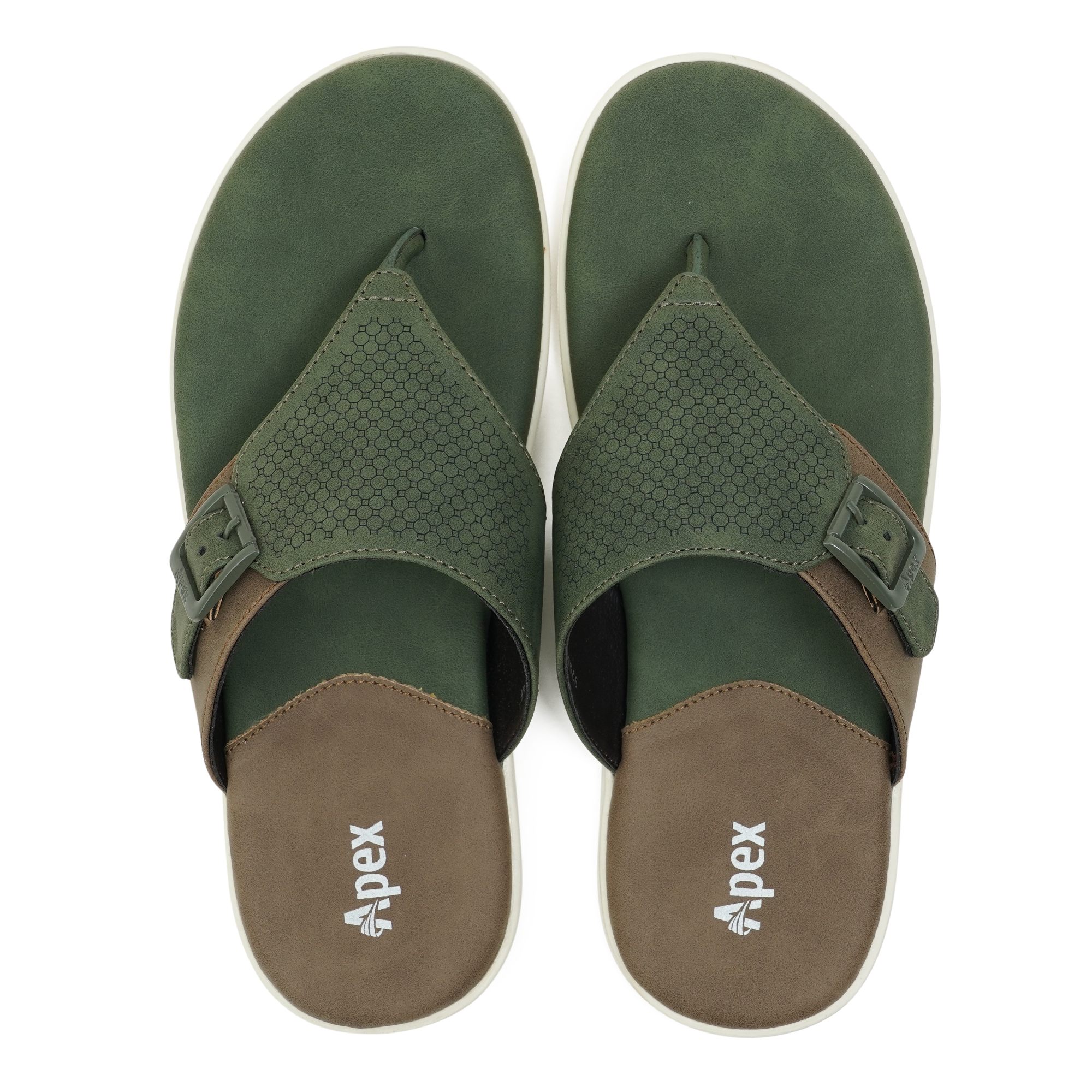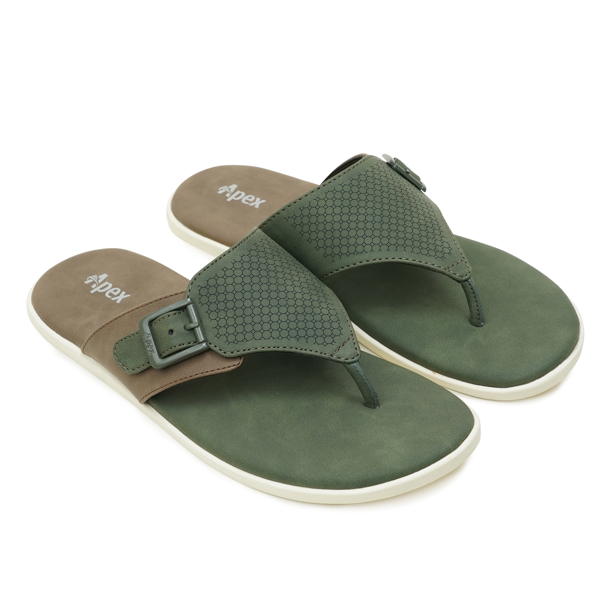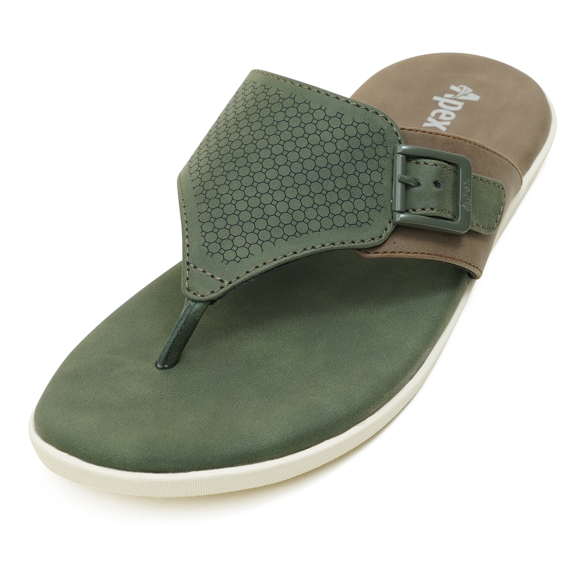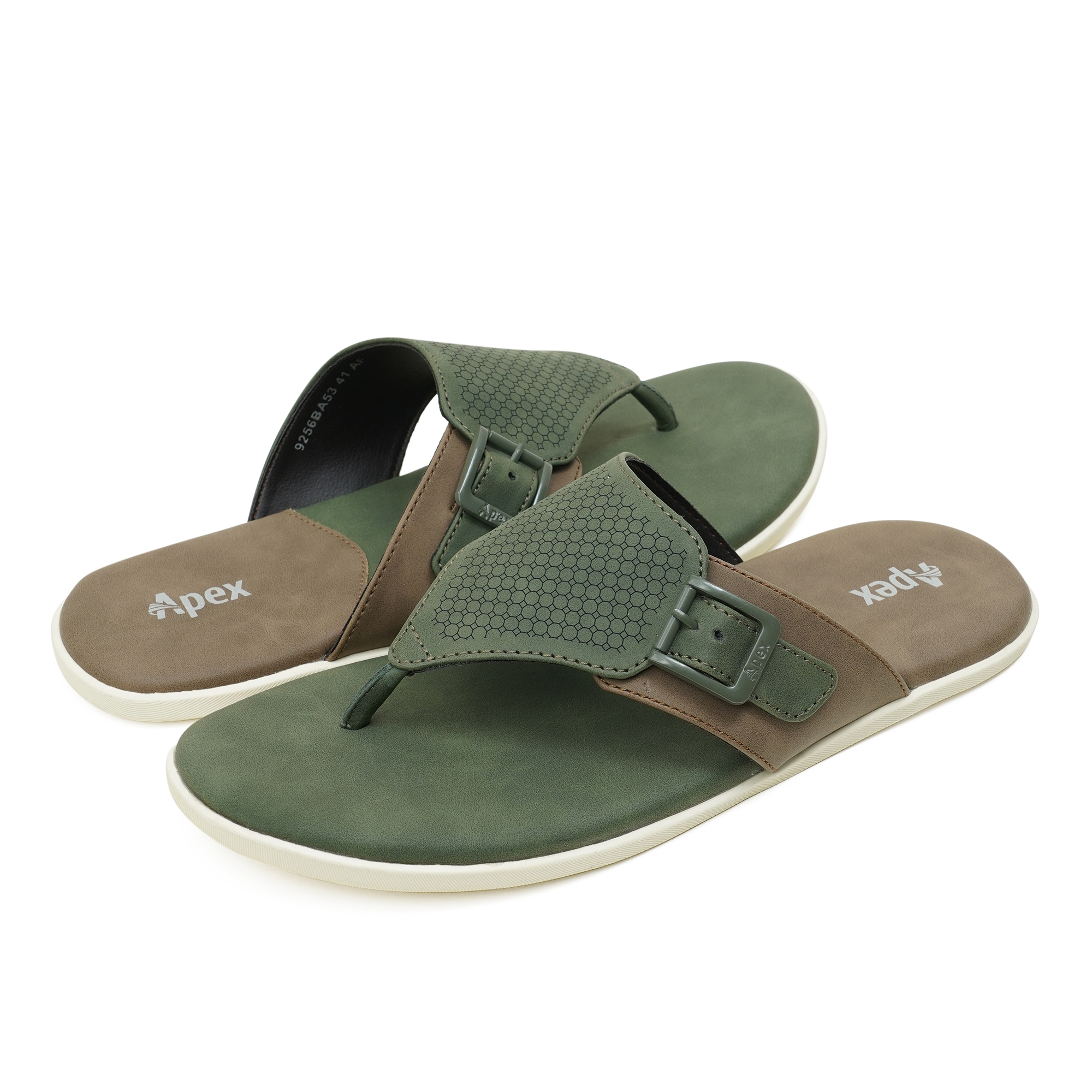 Adventure-ready style in an earthy palette. The Apex Men’s Thong Sandal upgrades the classic flip-flop with a wrap-around panel and metal buckle that lets you fine-tune the fit. A quick-dry synthetic upper and lining keep chafing out of your day, while the arch-hugging footbed delivers long-haul cushioning. Beneath it all, a grippy TPR outsole digs into wet boat decks and city pavement with equal confidence.