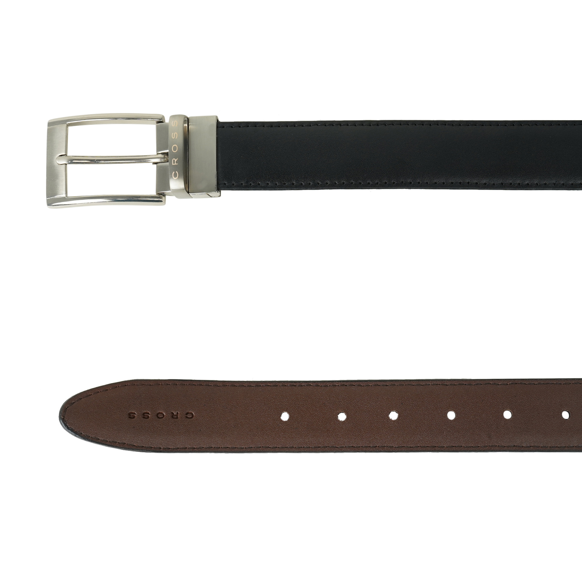 Maximize your wardrobe with the Cross Men's Reversible Belt. This versatile accessory features a clever rotating buckle that allows you to switch between styles in seconds, giving you two premium looks in one belt. Crafted from high-quality genuine leather and finished with a robust, solid metal buckle, it offers the durability you expect from an international brand.