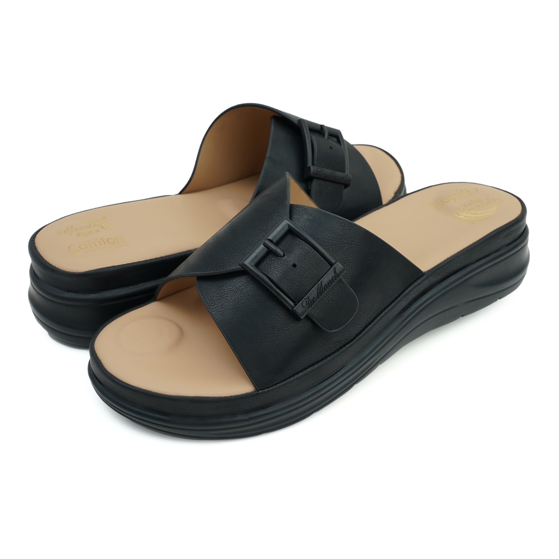 Designed for everyday elegance, the Dr. Mauch Women’s Slipper combines timeless style with reliable comfort. Crafted with a black PU upper and durable PU sole, it ensures lasting wear while offering a smooth, polished look. The matching black buckle adds a refined accent, enhancing the slipper’s sophisticated design. Lightweight and versatile, it’s ideal for casual outings, office wear, or relaxed days at home. Effortless, stylish, and comfortable — your go-to slipper for modern living.