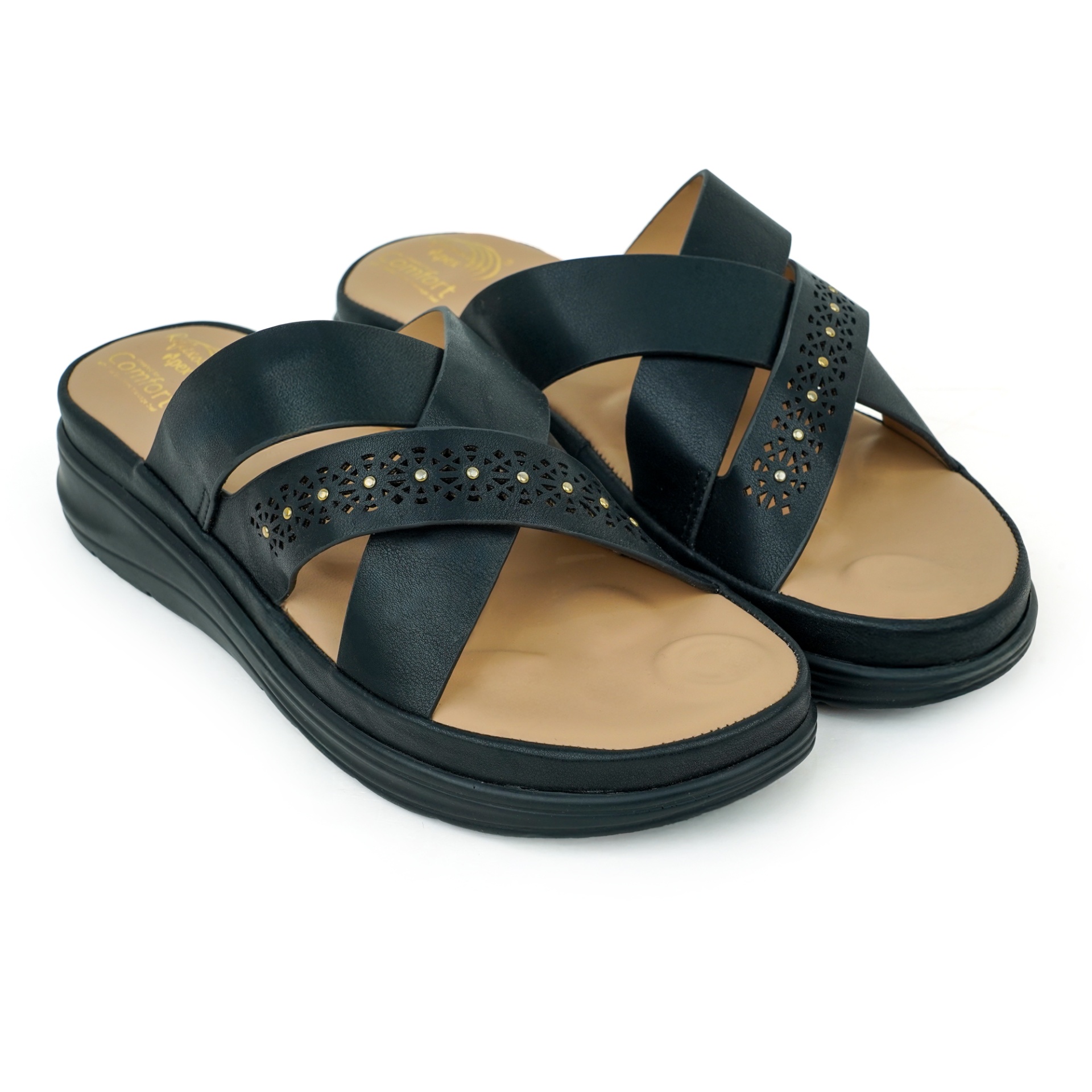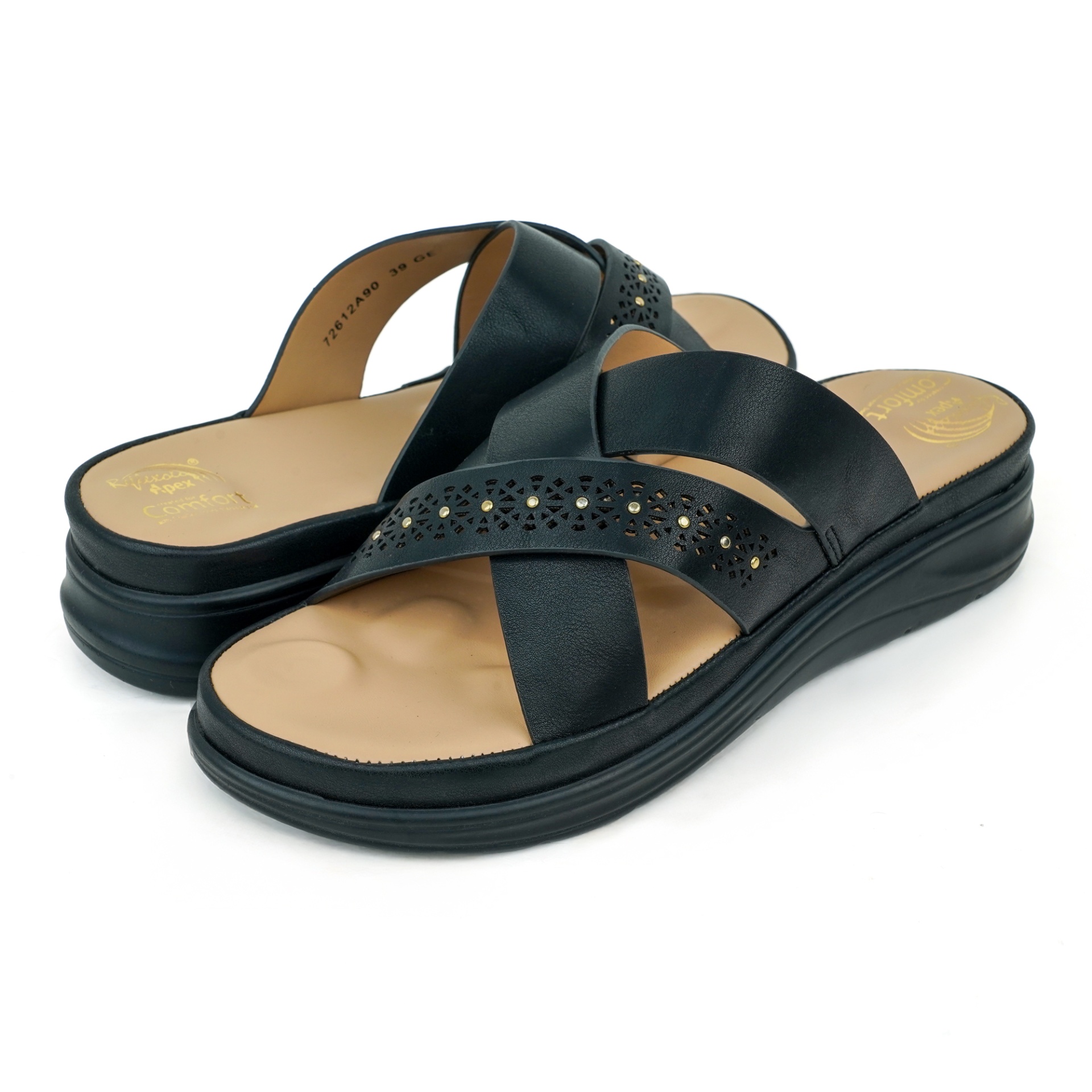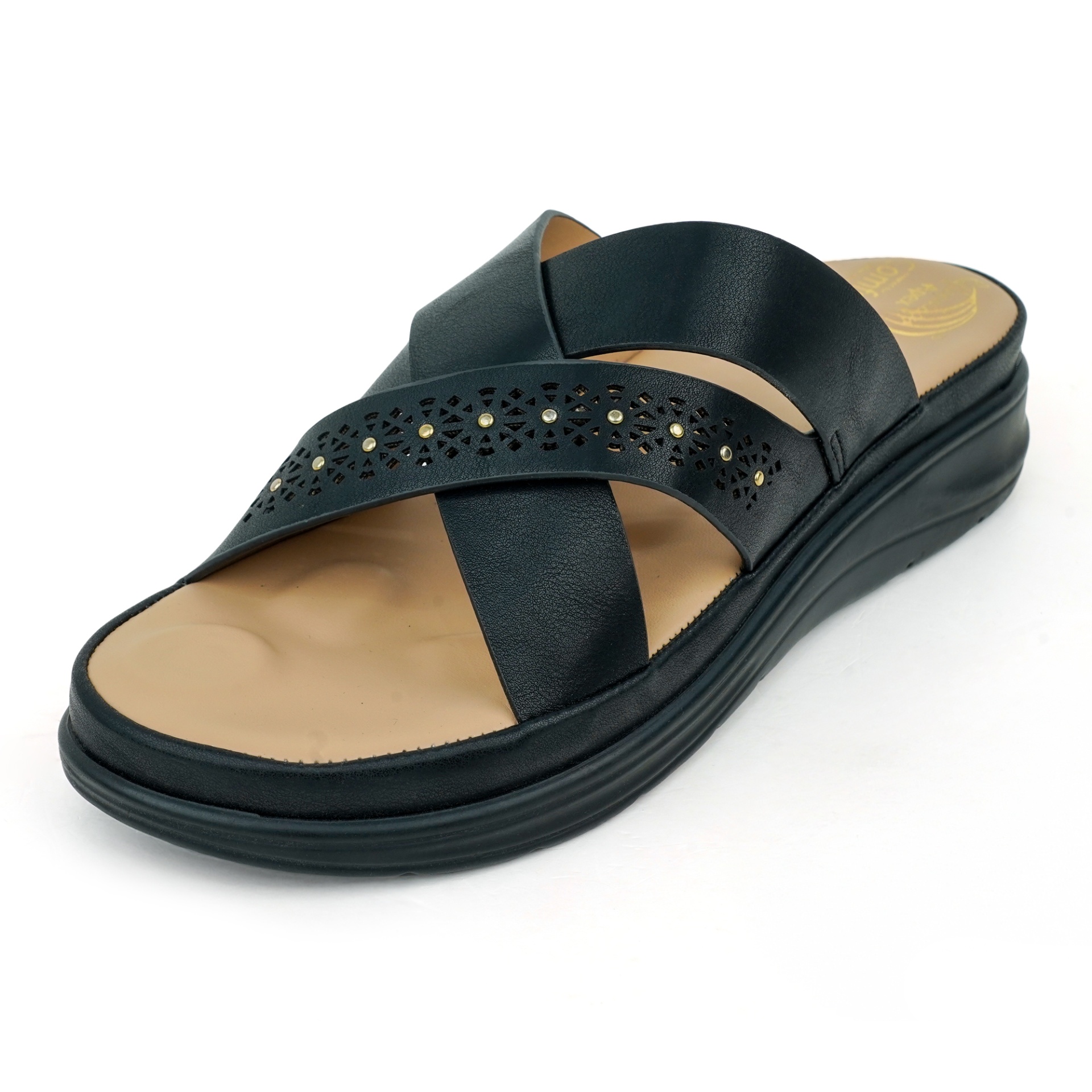 Enhance your well-being with Dr. Mauch Women's Slipper, a perfect blend of comfort and health benefits. Designed to promote better blood circulation, relax muscles, and improve breathing, this slipper supports your overall wellness. With an intricate laser-cut upper with stones, a moderate heel for style, and expertly crafted construction, it ensures all-day ease and sophistication.