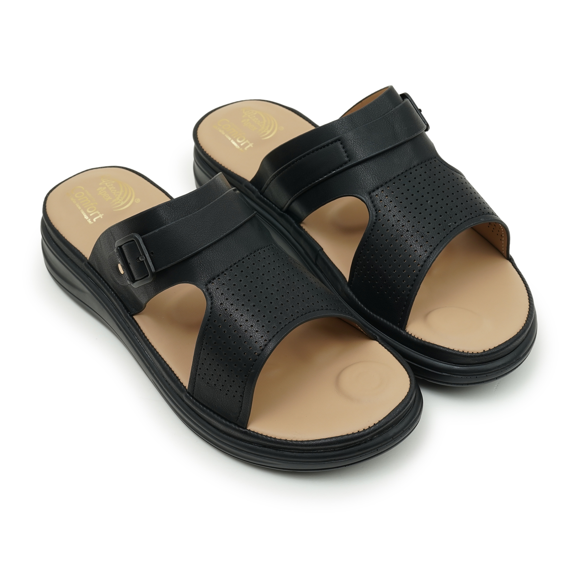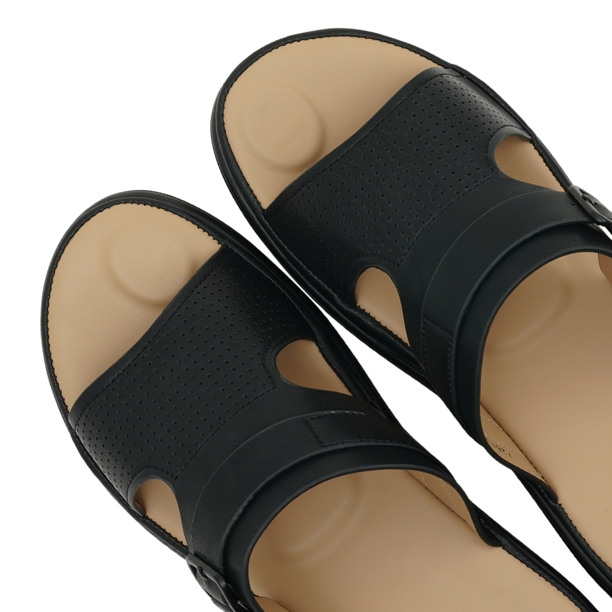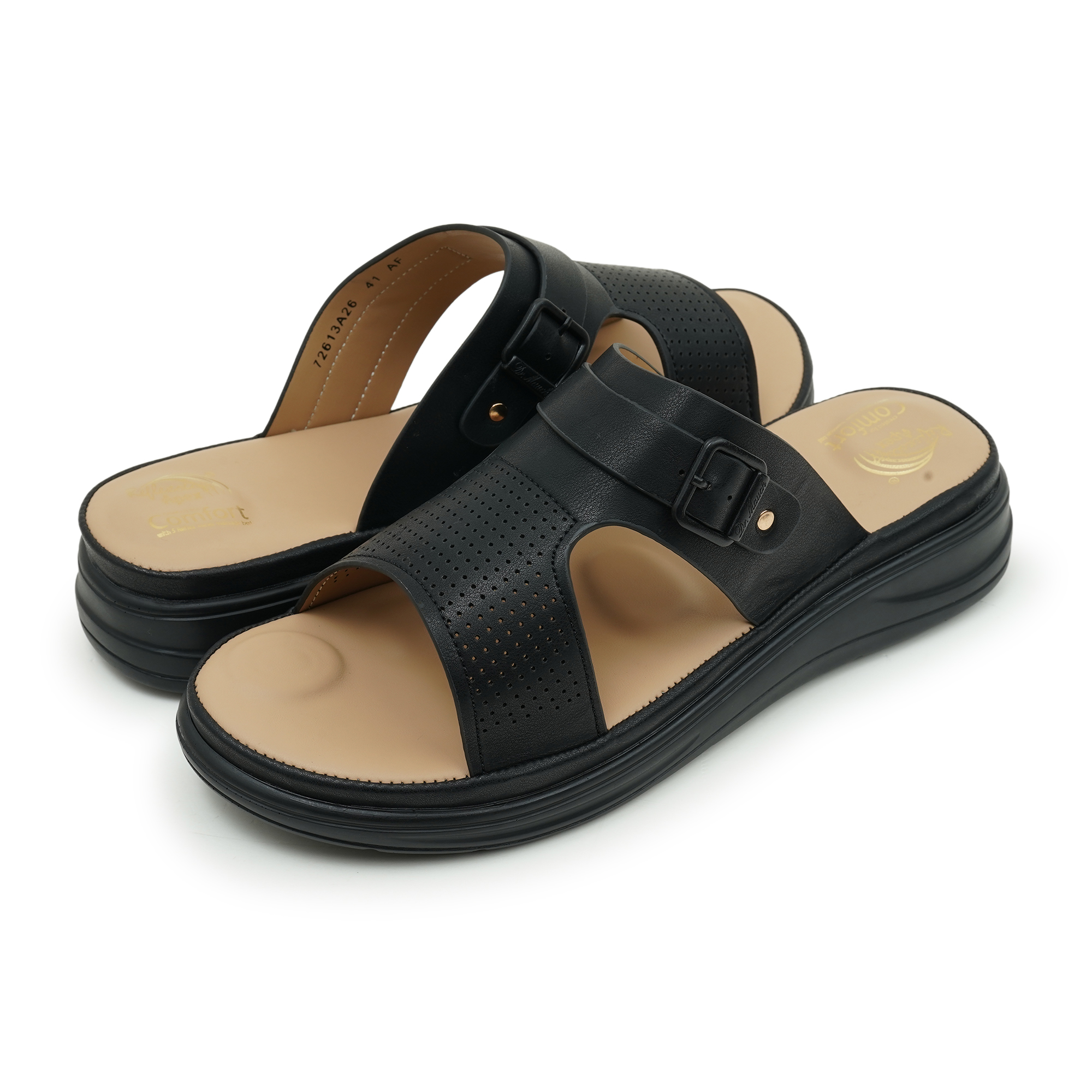 DR. MAUCH women's slippers, the wide front strap features laser-cut perforations, ensuring maximum breathability and airflow to keep your feet cool throughout the day. Accented with a sleek black buckle on the secondary strap, these slides offer a professional yet relaxed look. Built on an ergonomically molded footbed that supports the natural arch of your foot, they are the perfect choice for busy days at home or casual weekend errands.