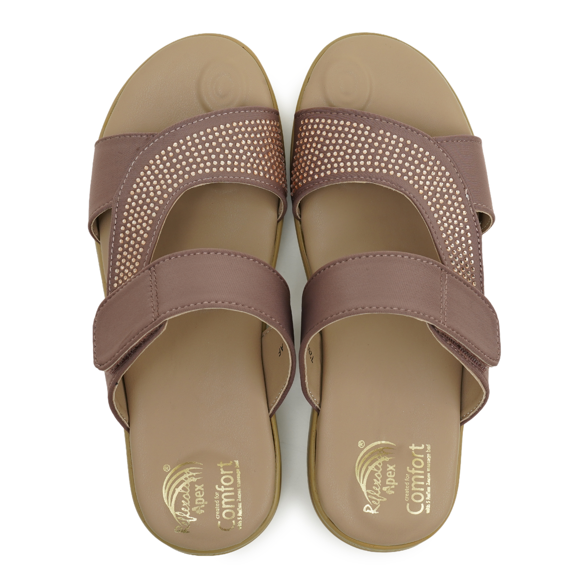 - Elegant double-strap with rose-gold crystal embellishments
