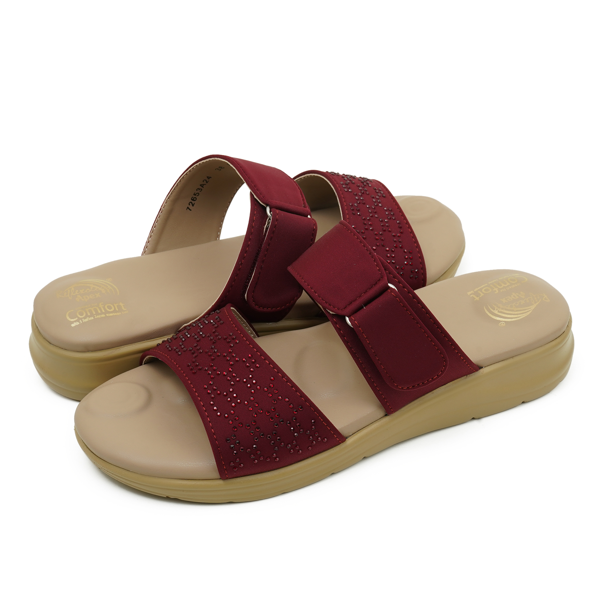 Experience the perfect medical-grade support and contemporary design. The DR. MAUCHS' Slipper is specifically engineered to alleviate foot pressure and provide all-day relief. The contoured beige footbed supports the natural arch of the foot, while the adjustable hook-and-loop strap ensures a secure fit for any foot width. Finished in a premium maroon PU material, these slippers are as durable as they are comfortable, making them an essential choice for those prioritizing foot wellness.