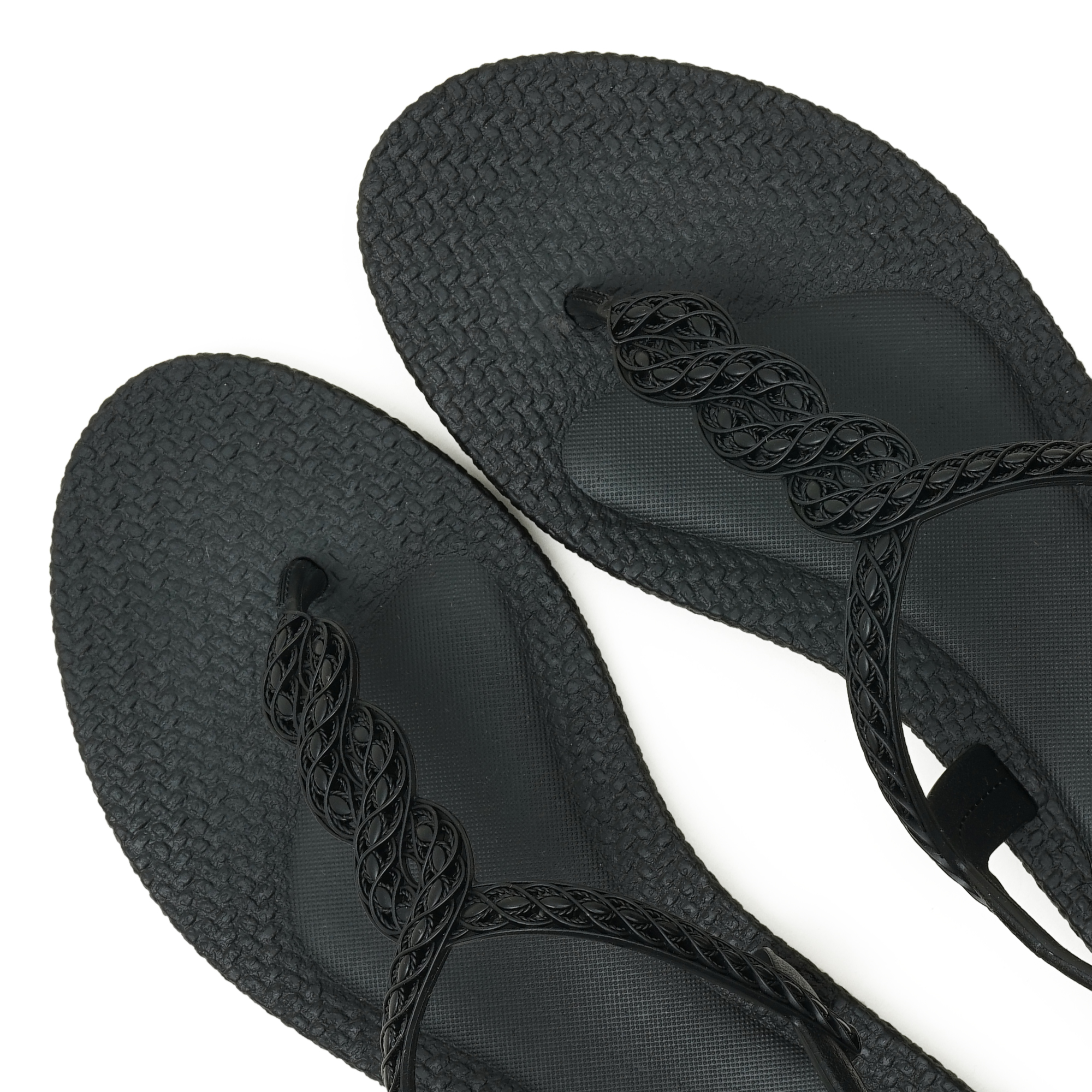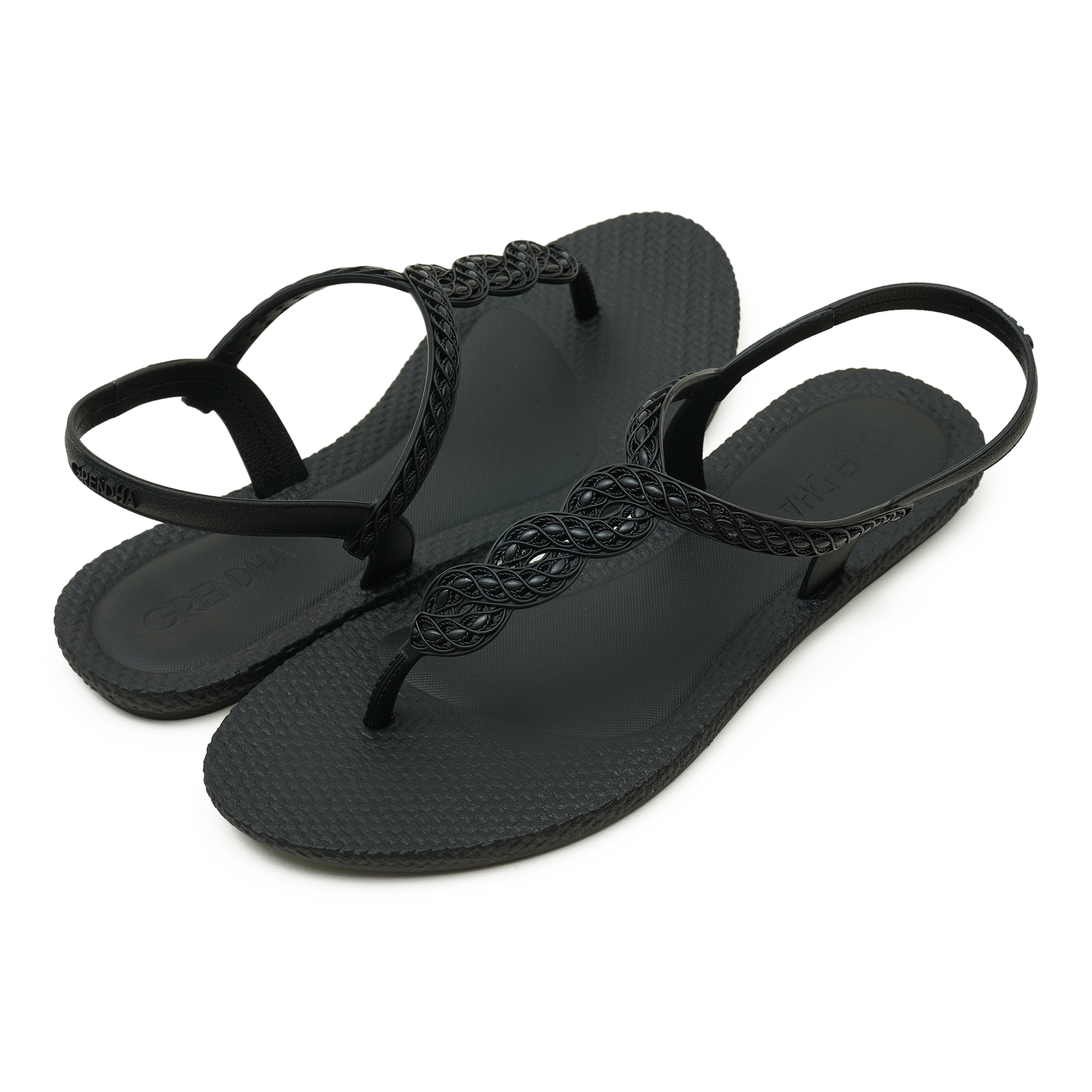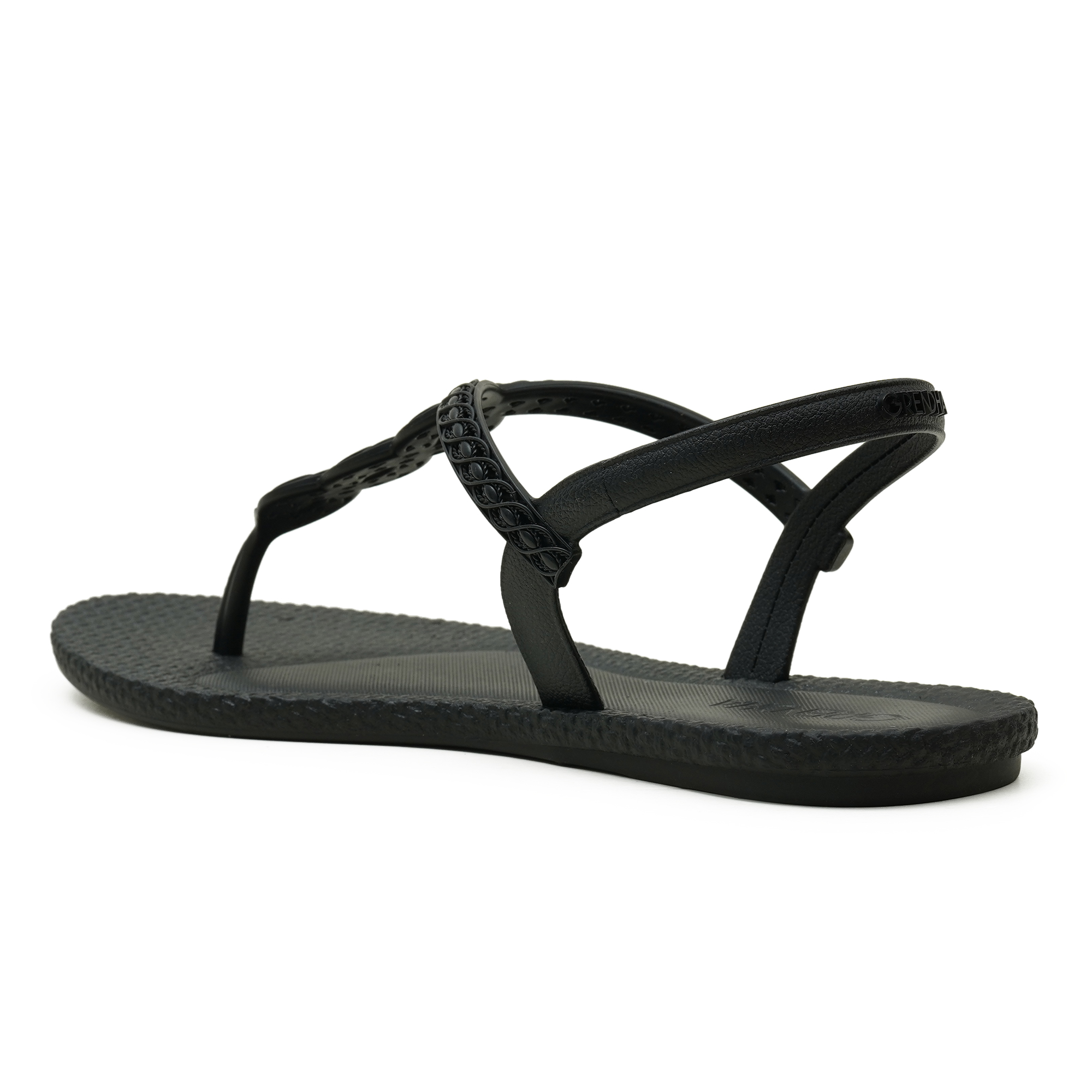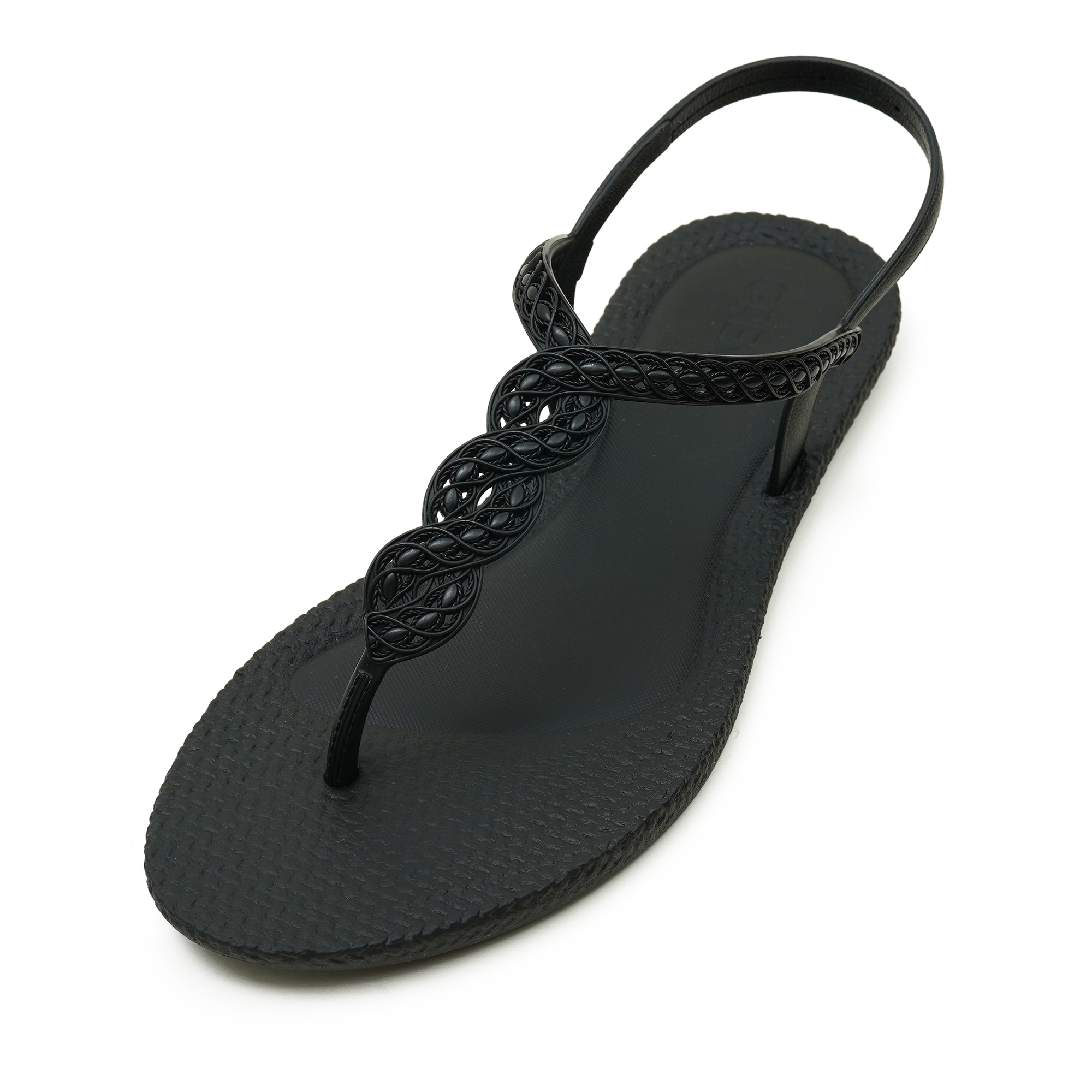 - Braided T-strap with a secure back-belt