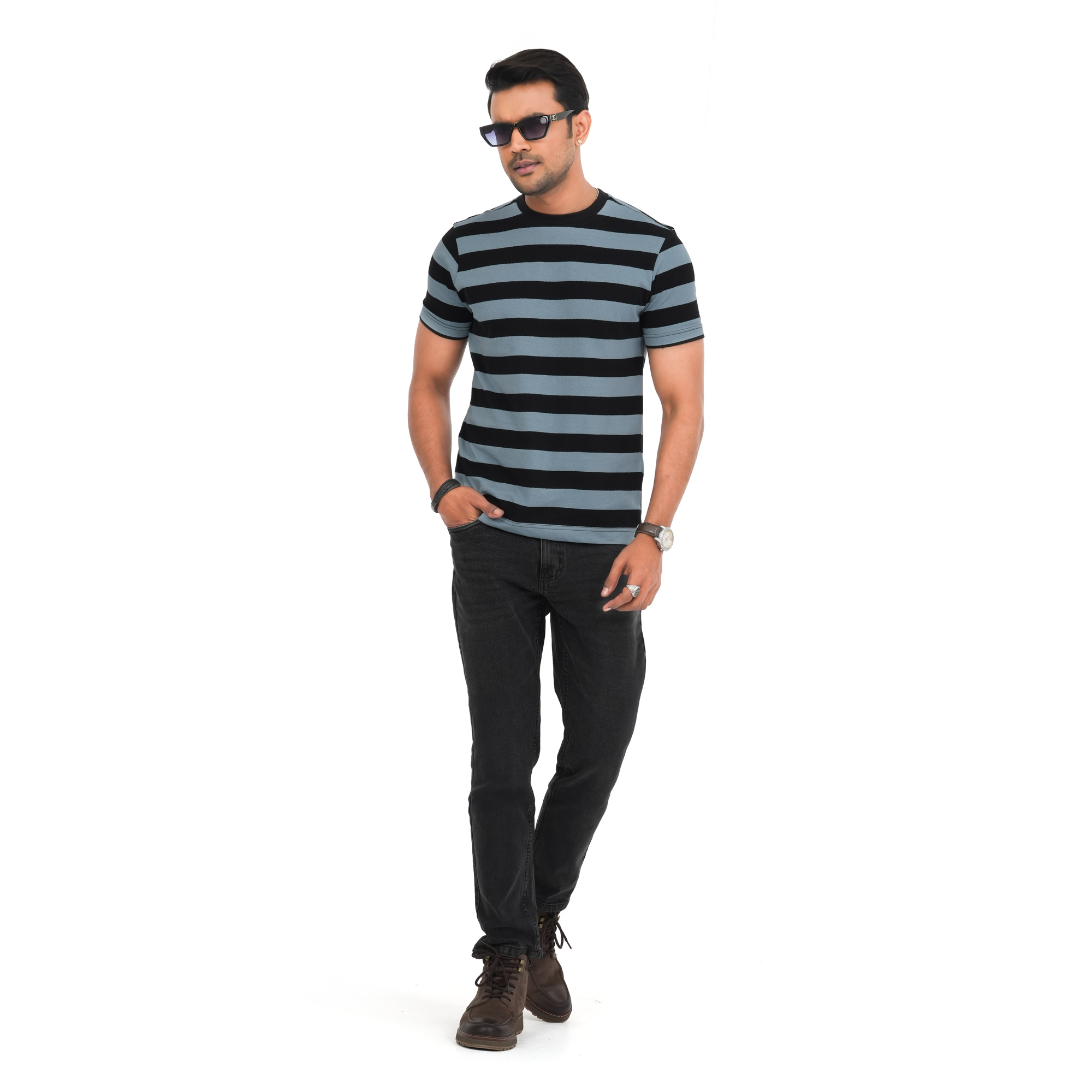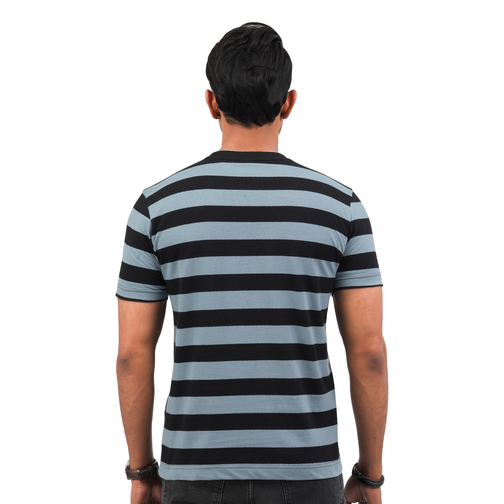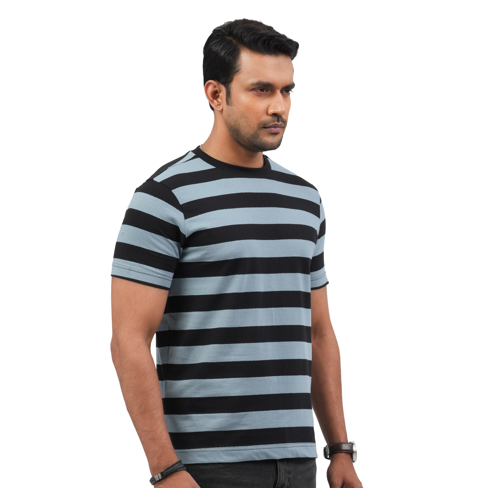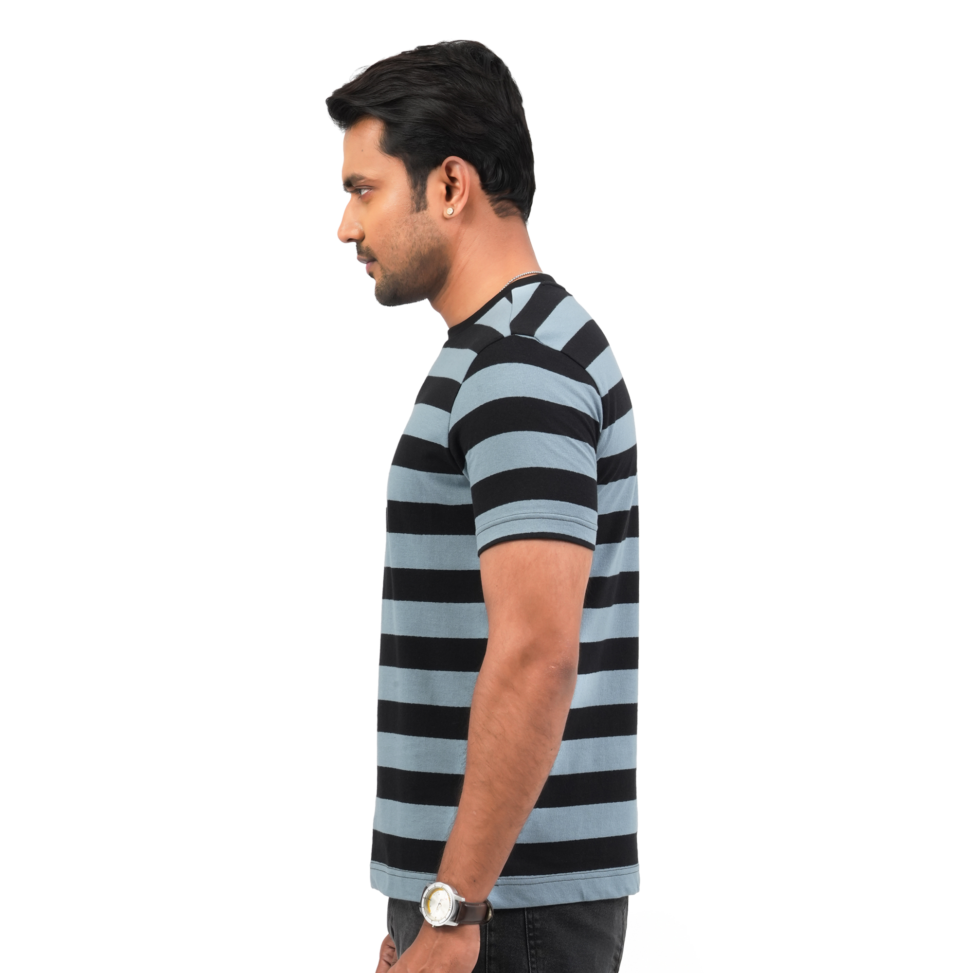A bold striped design meets everyday comfort in this Maverick men’s t-shirt. Crafted from premium breathable fabric, it delivers a soft feel with lasting durability. The black and blue horizontal stripes create a modern, eye-catching look that stands out while remaining easy to style. Perfect for casual outings and relaxed everyday wear.