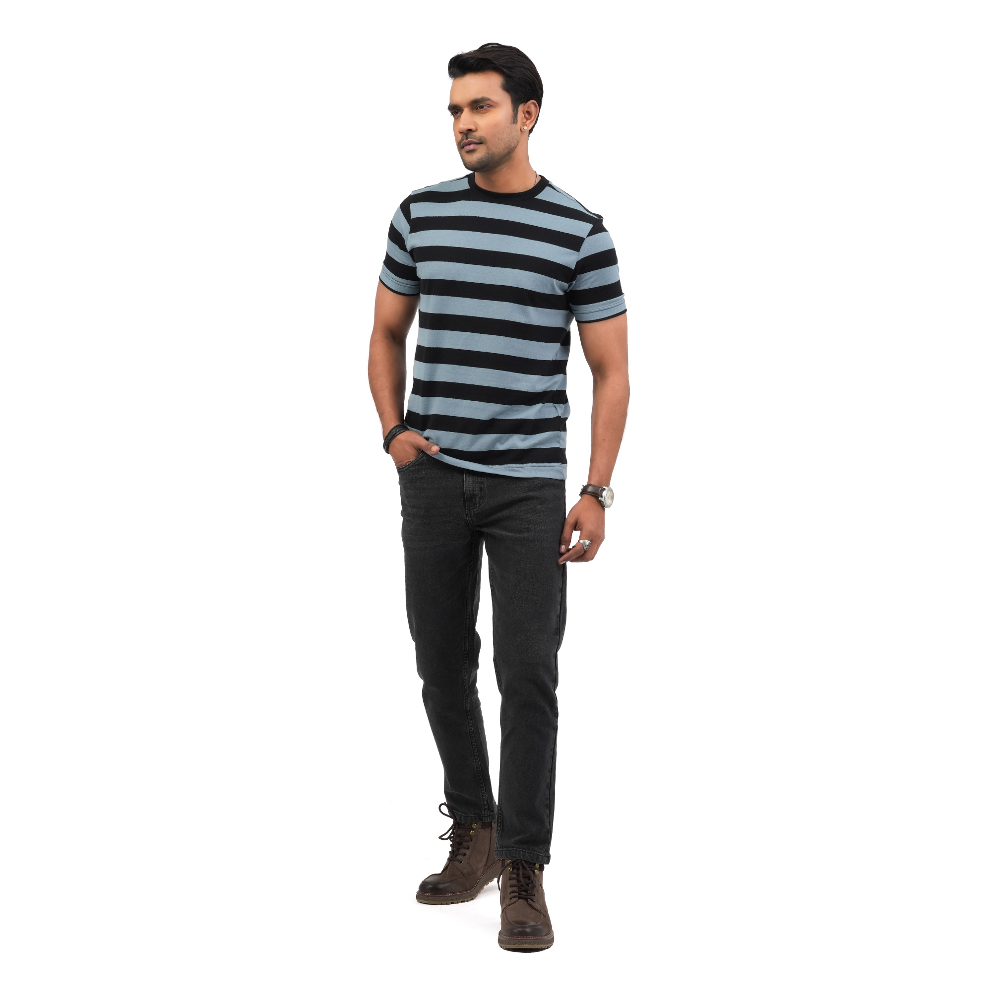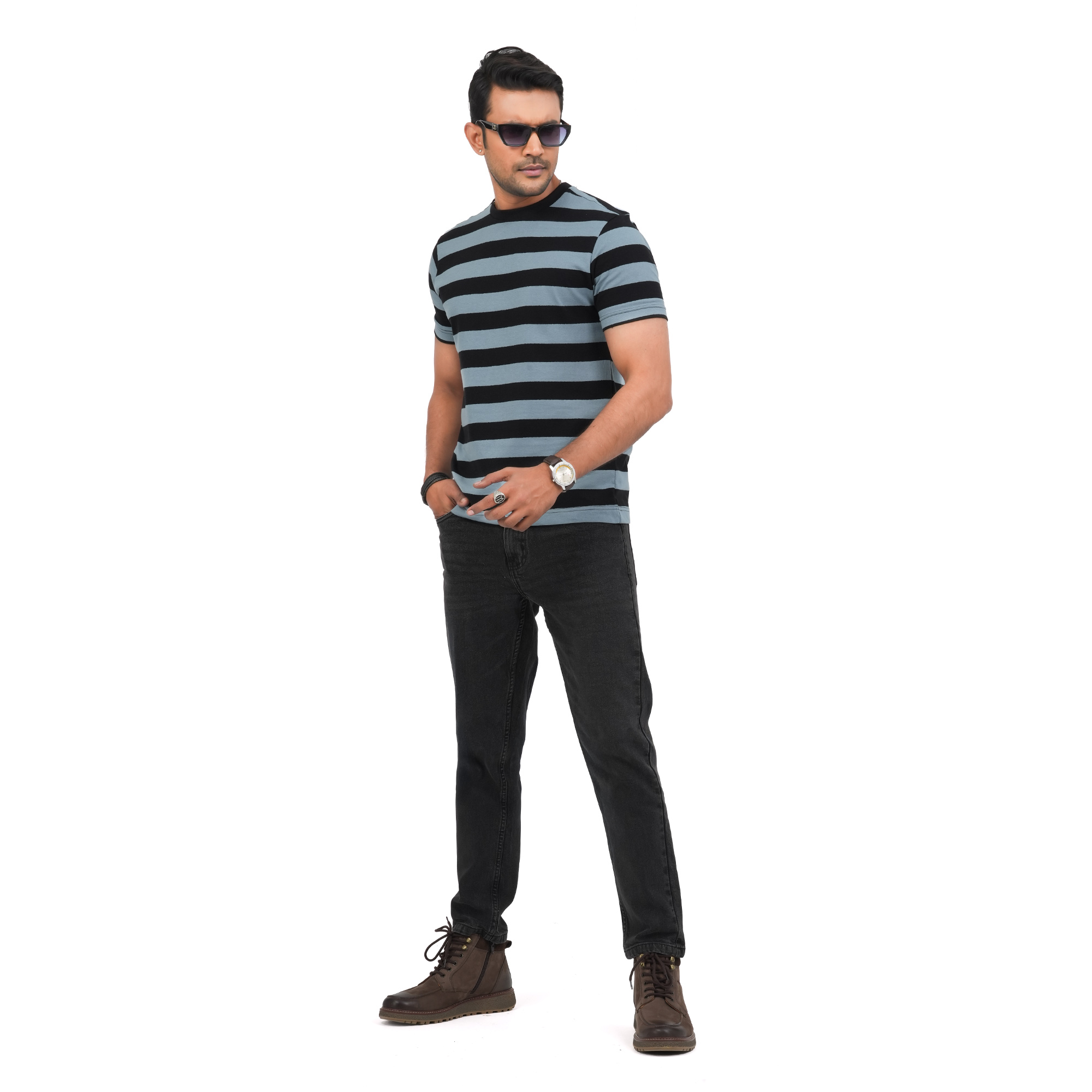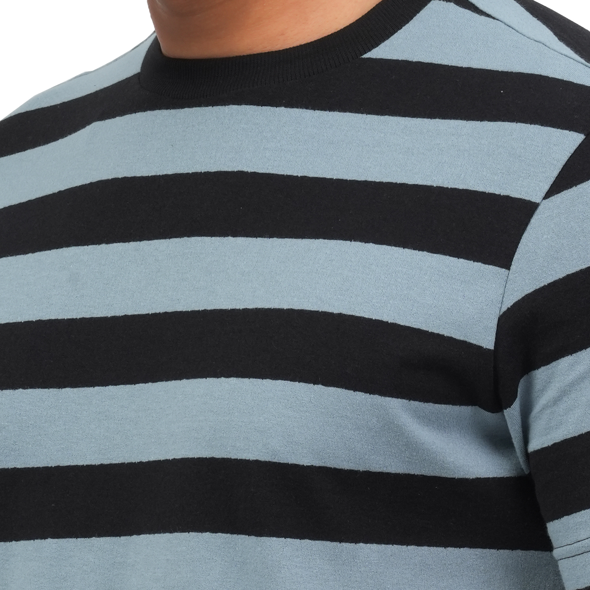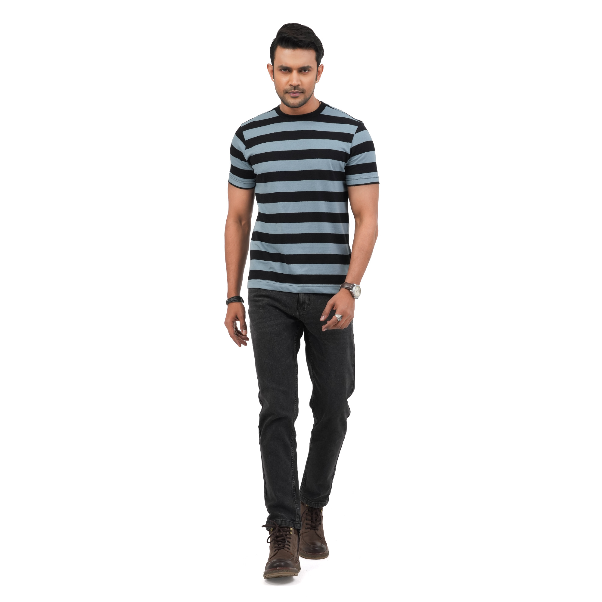 A bold striped design meets everyday comfort in this Maverick men’s t-shirt. Crafted from premium breathable fabric, it delivers a soft feel with lasting durability. The black and blue horizontal stripes create a modern, eye-catching look that stands out while remaining easy to style. Perfect for casual outings and relaxed everyday wear.