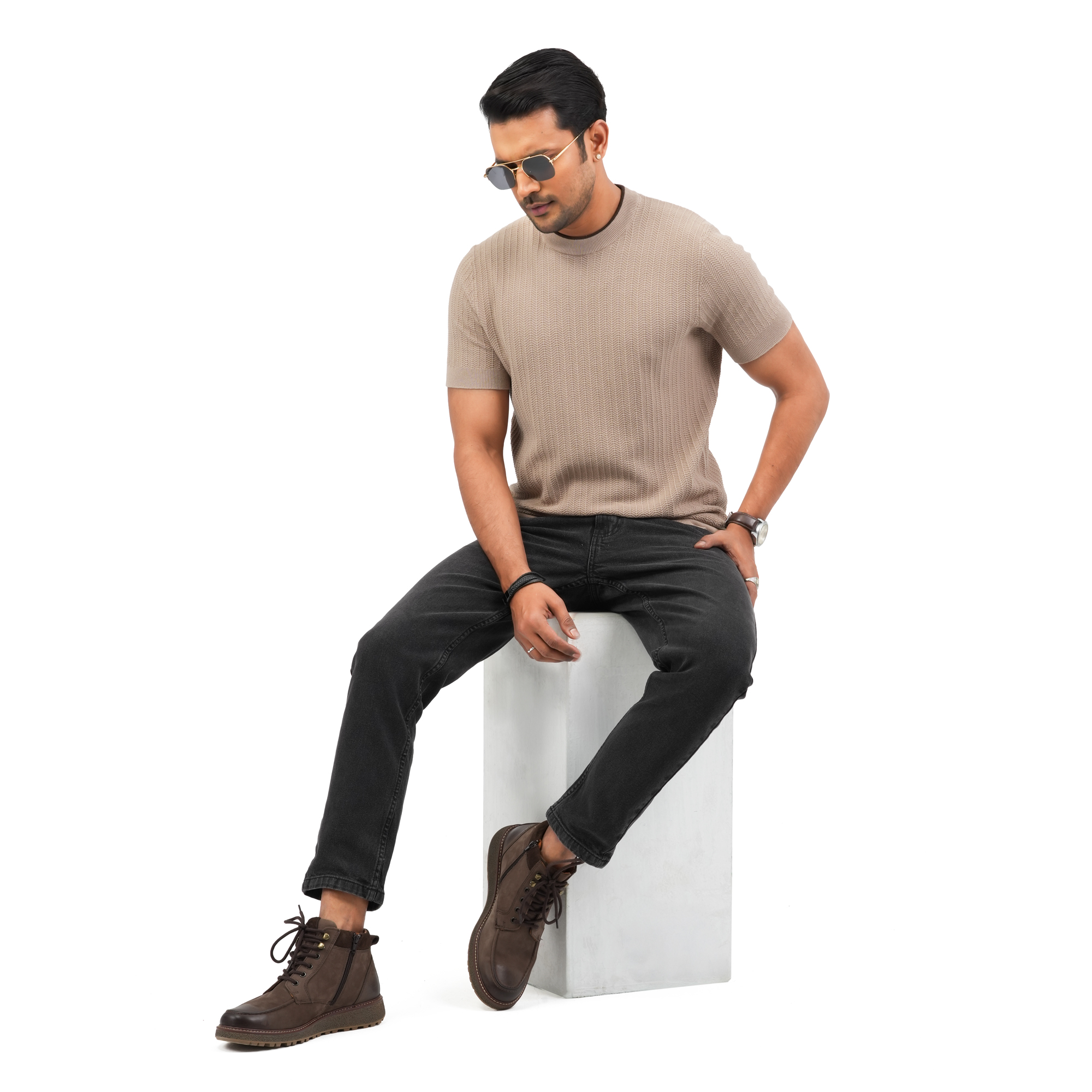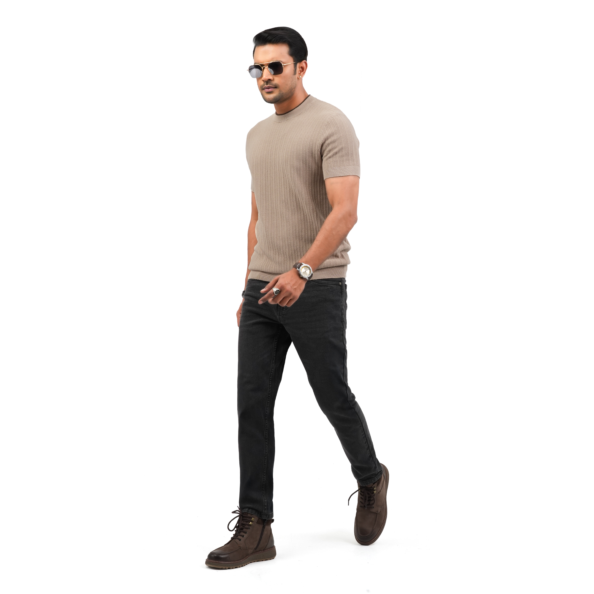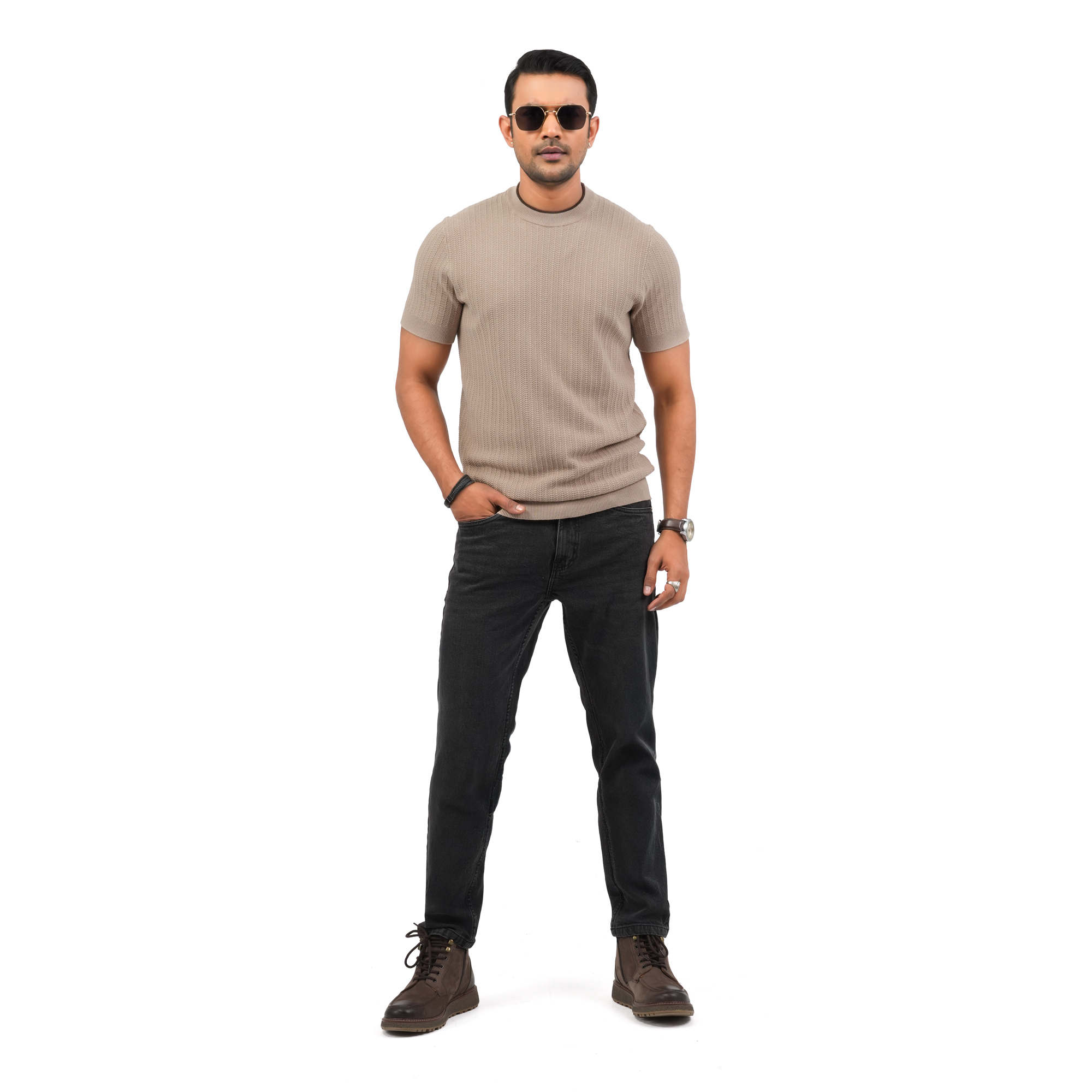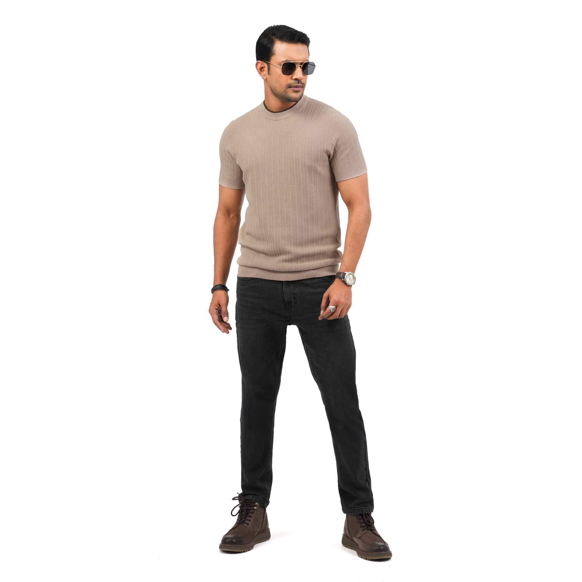 Designed for modern minimal style, this Maverick men’s beige t-shirt offers a refined and versatile look for everyday wear. Crafted from premium breathable fabric, it provides a soft touch and all-day comfort. The subtle textured pattern enhances its premium appeal, while the smart fit silhouette ensures a clean and polished appearance. Ideal for casual outings or relaxed smart-casual styling this piece blends comfort with understated elegance.