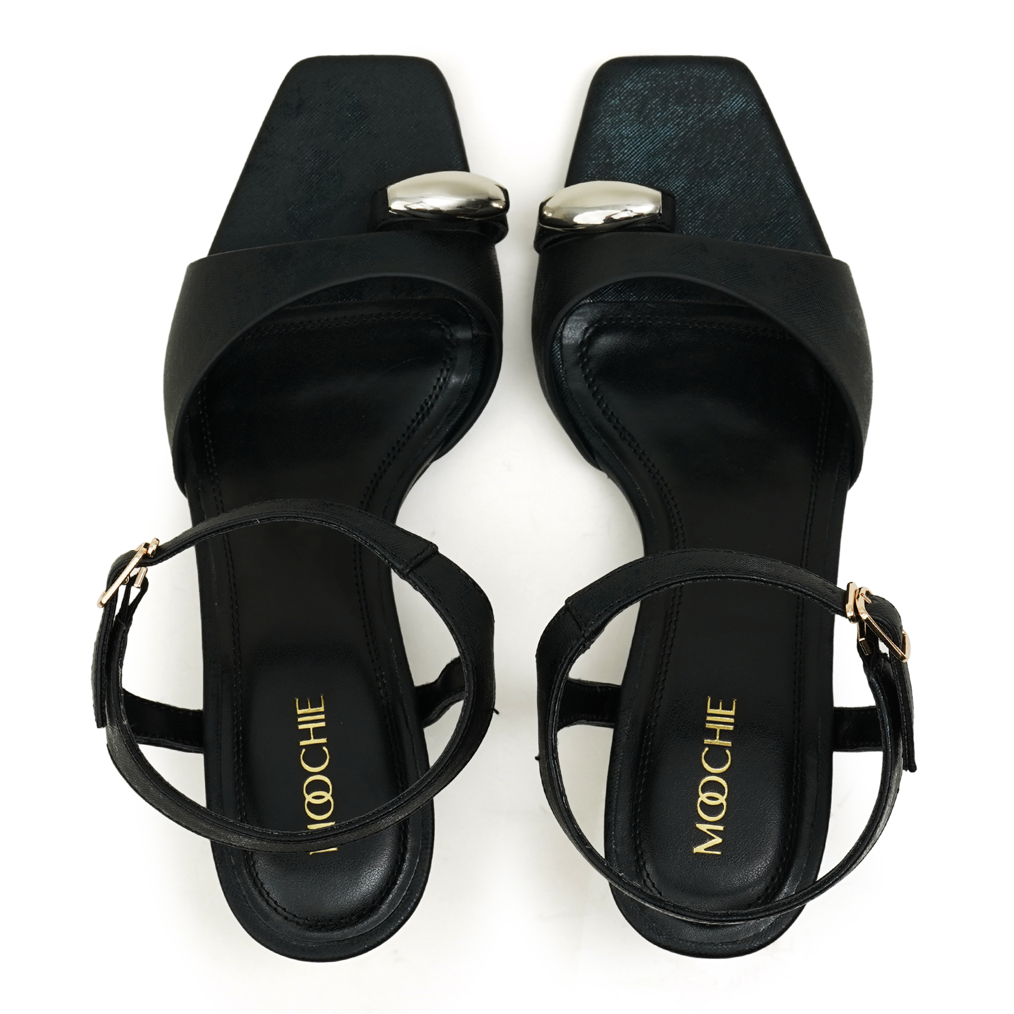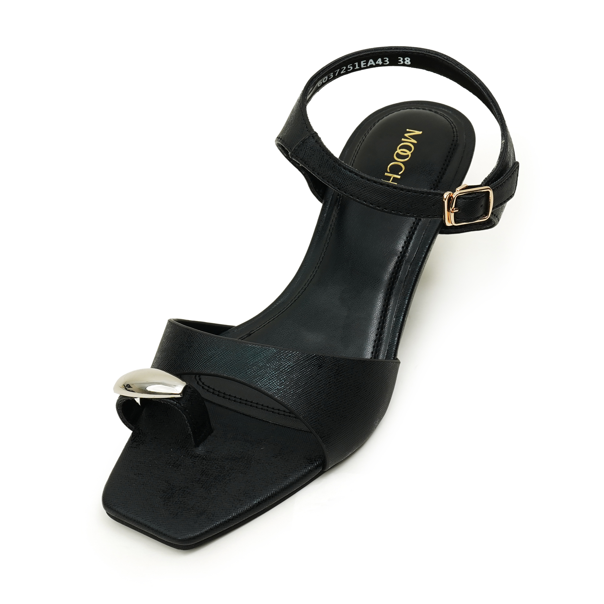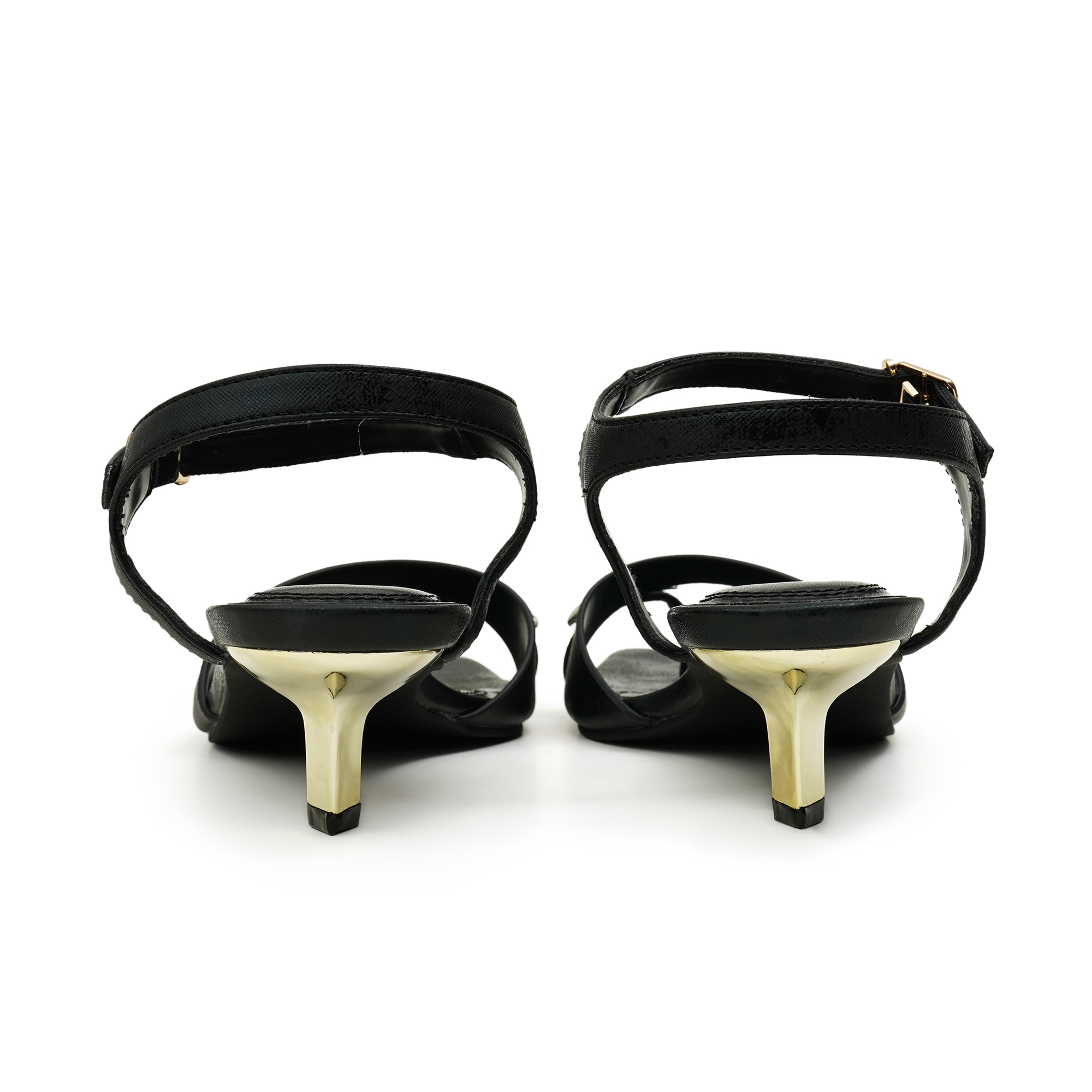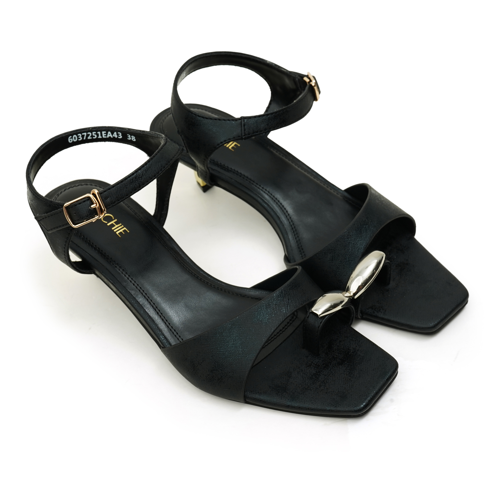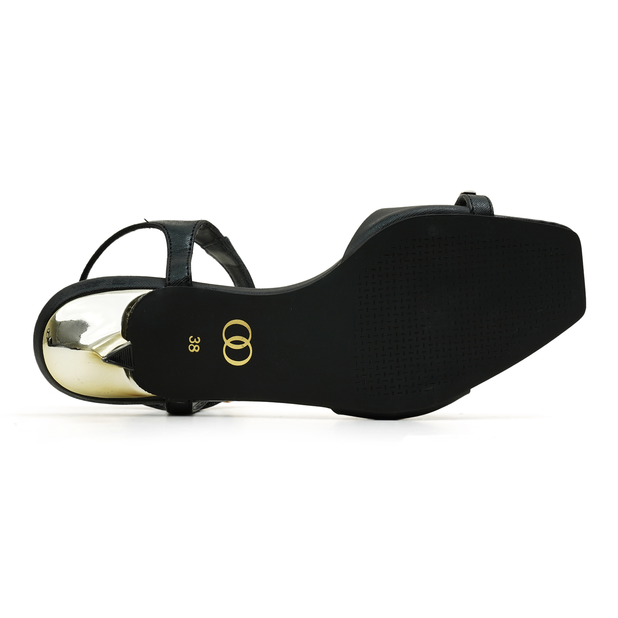 Elevate your day-to-night look. This mid-heel sandal features a supportive toe-loop and a stable block heel capped with gold for a hint of shine. The ankle-strap closure gives a secure, tailored fit, and a soft, padded insole delivers lasting comfort- ideal for both formal and casual outings in glamour.