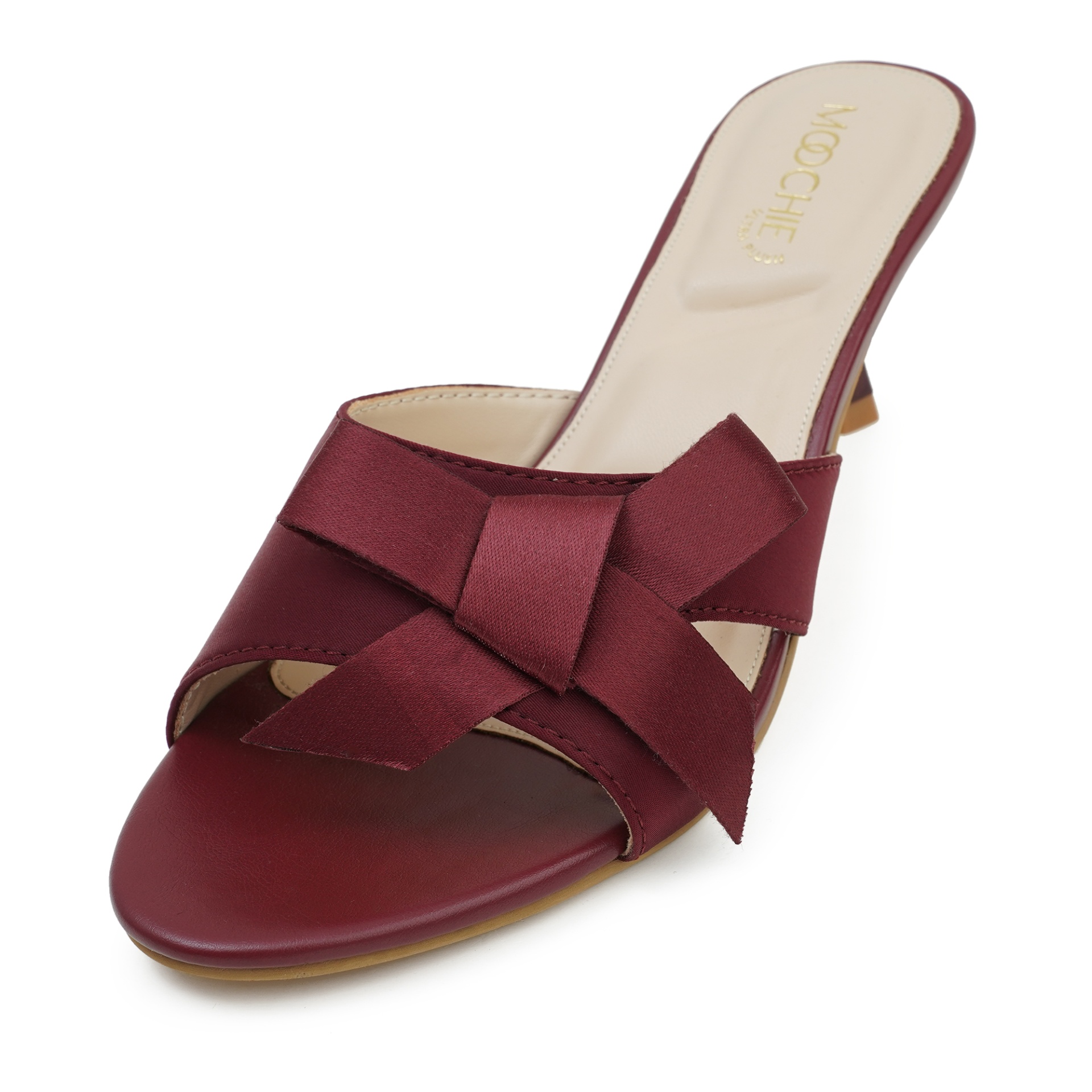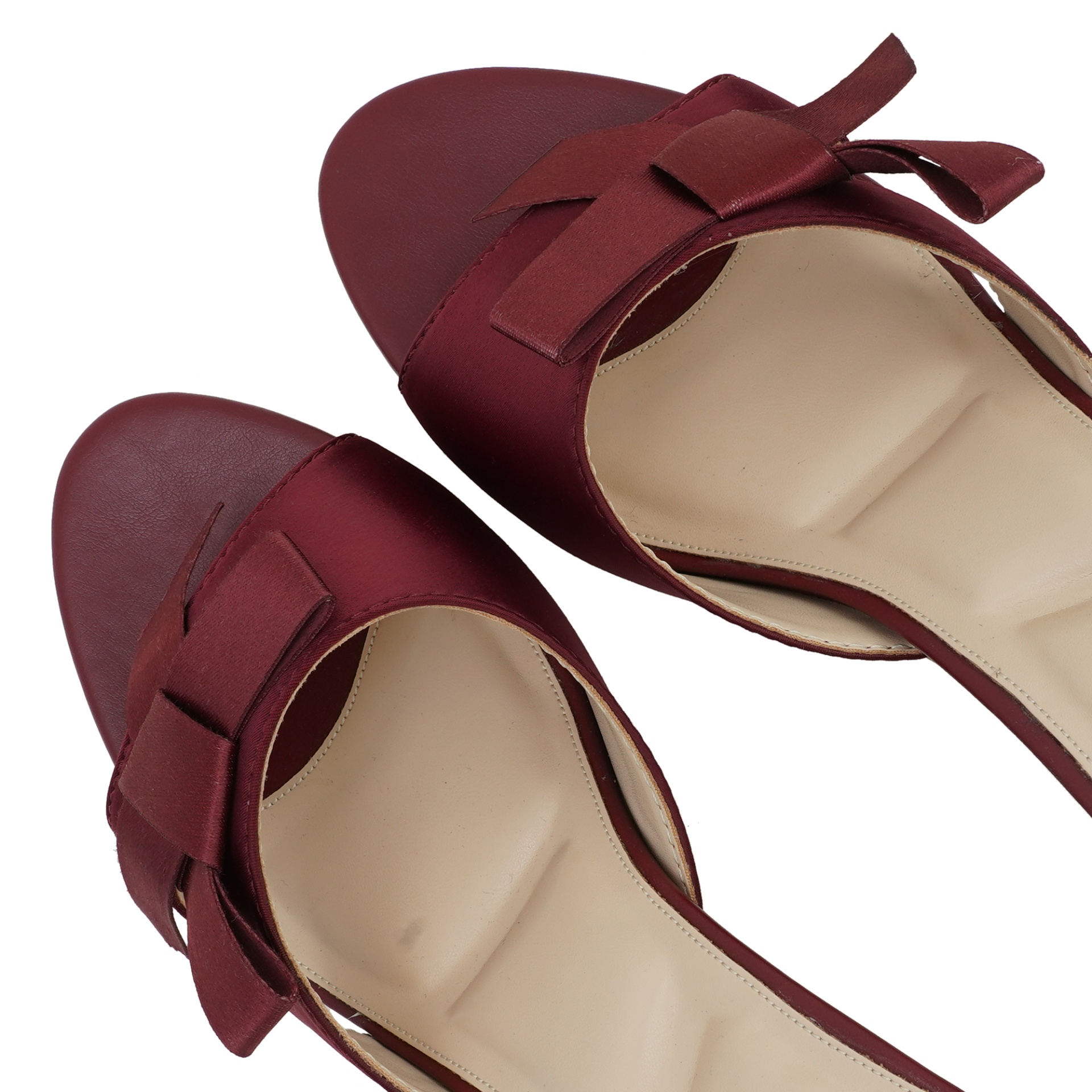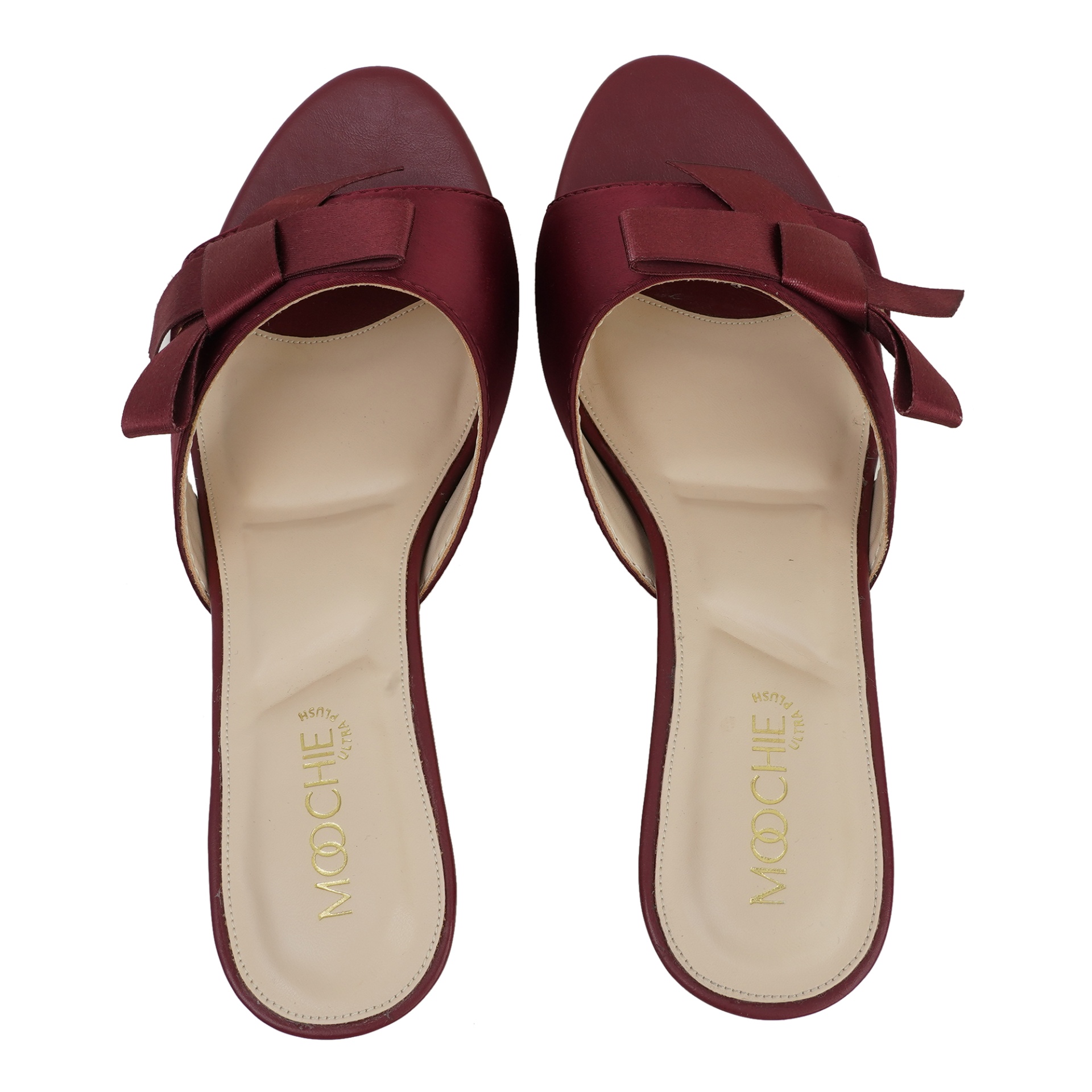 - PU upper with maroon ribbon bow for bold, feminine detail