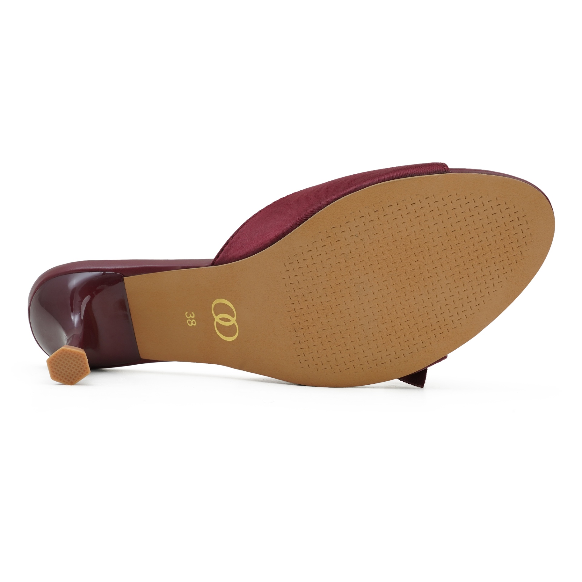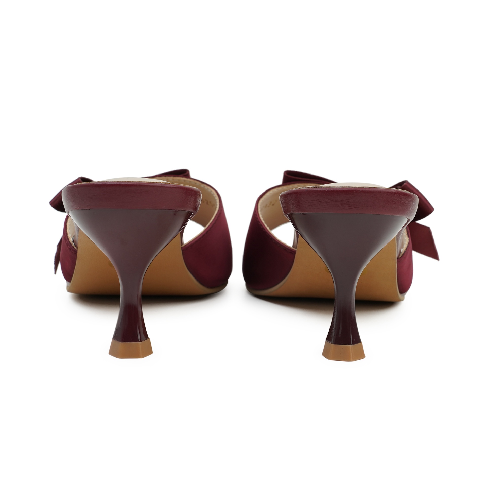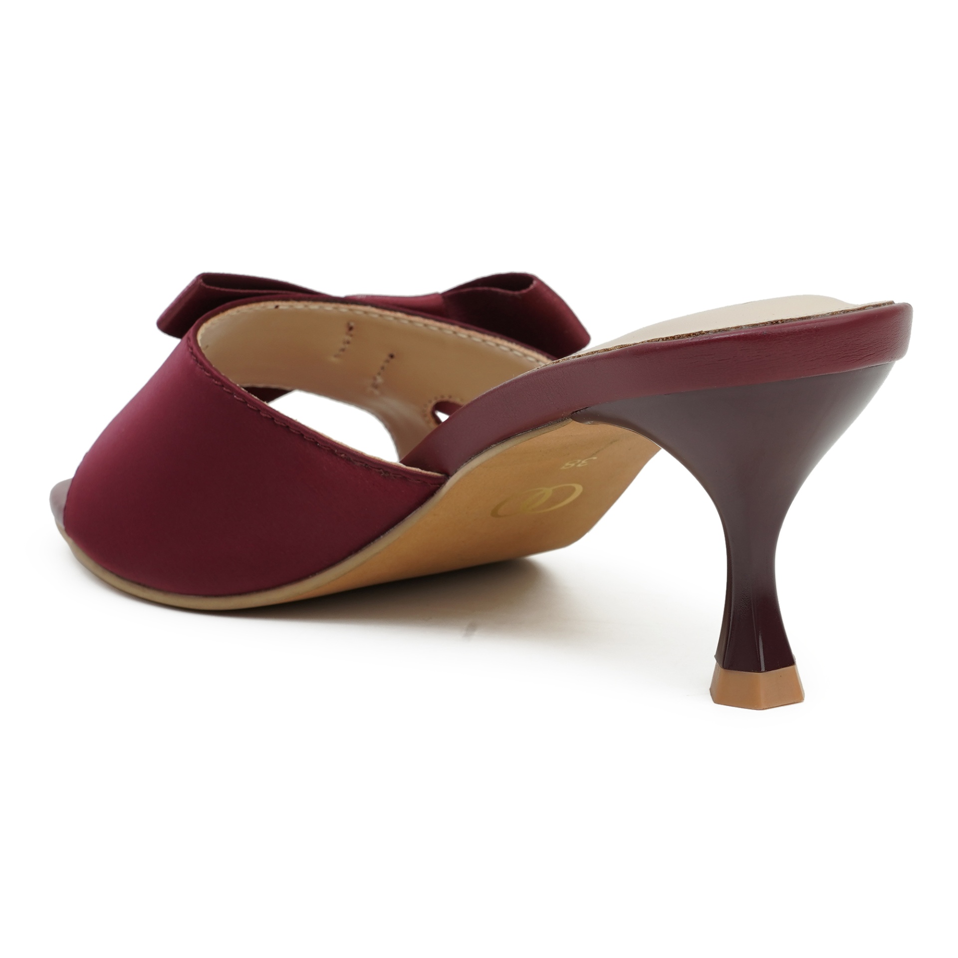 - PU upper with maroon ribbon bow for bold, feminine detail