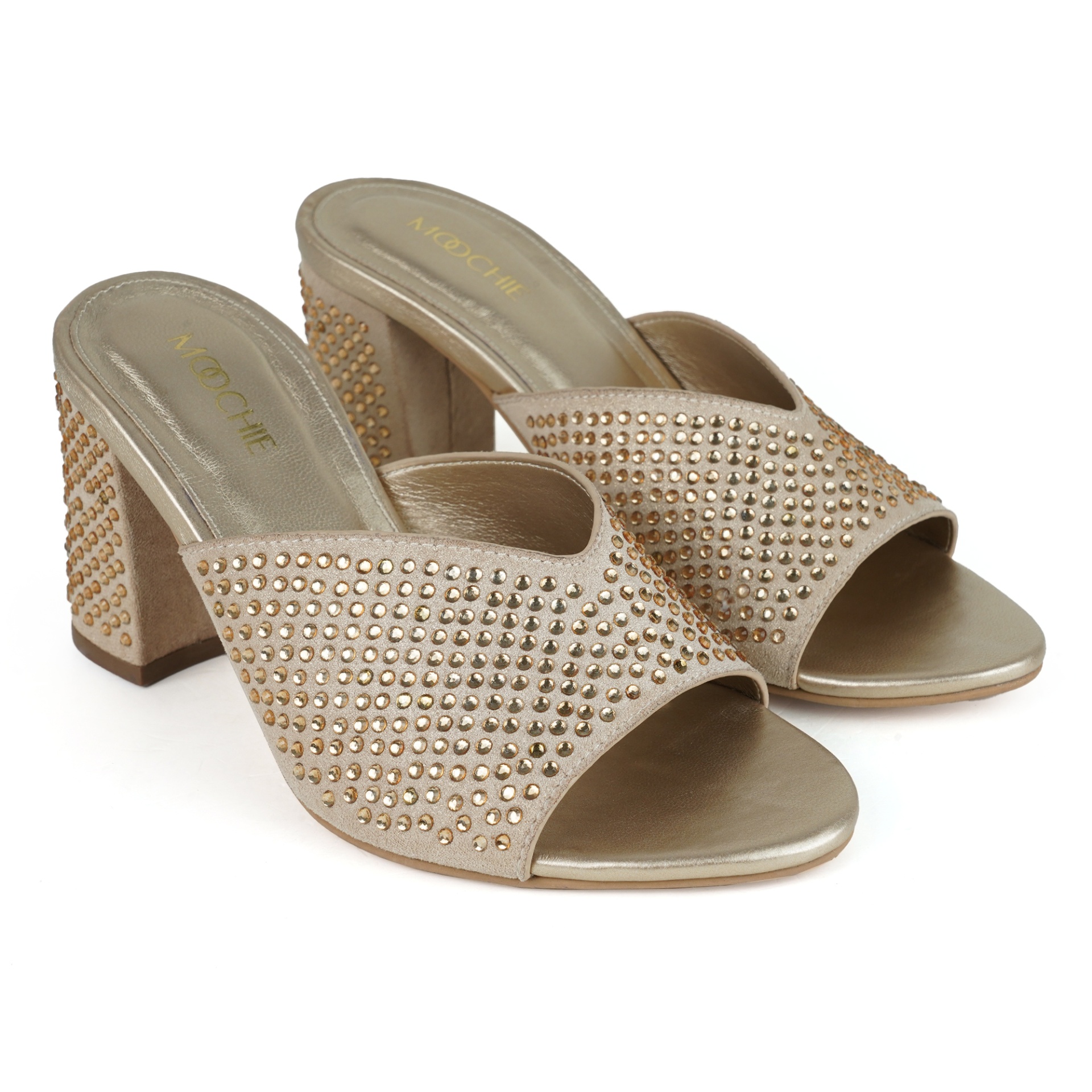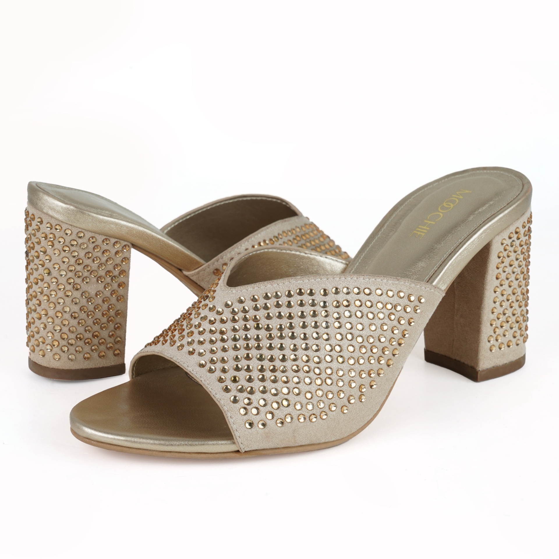 Elevate your style with the Moochie Women's High Heel, designed for an elegant and sophisticated look. Featuring a stone-detailed PU upper, this heel adds a touch of glamour, while the rubber sole provides stability for a confident stride.