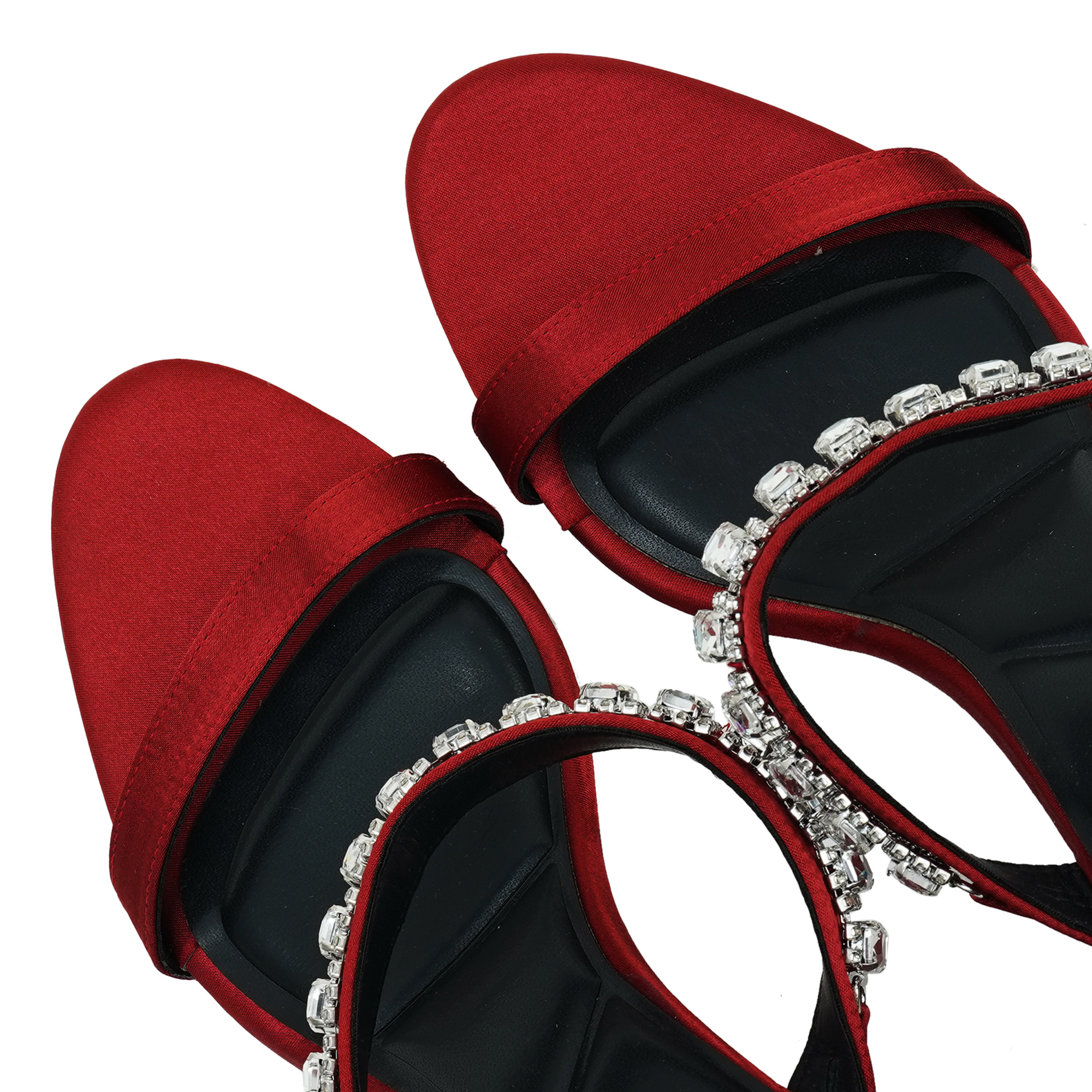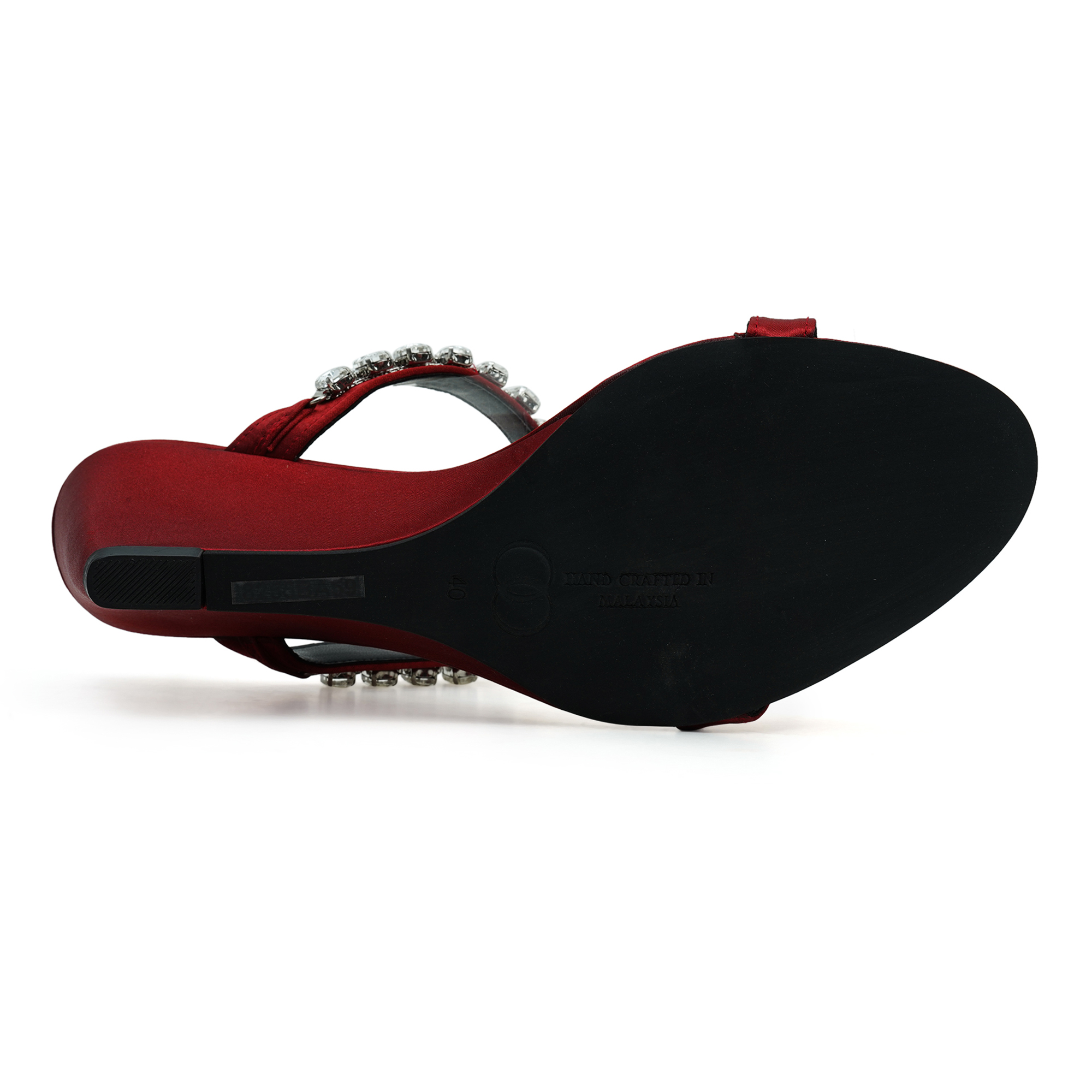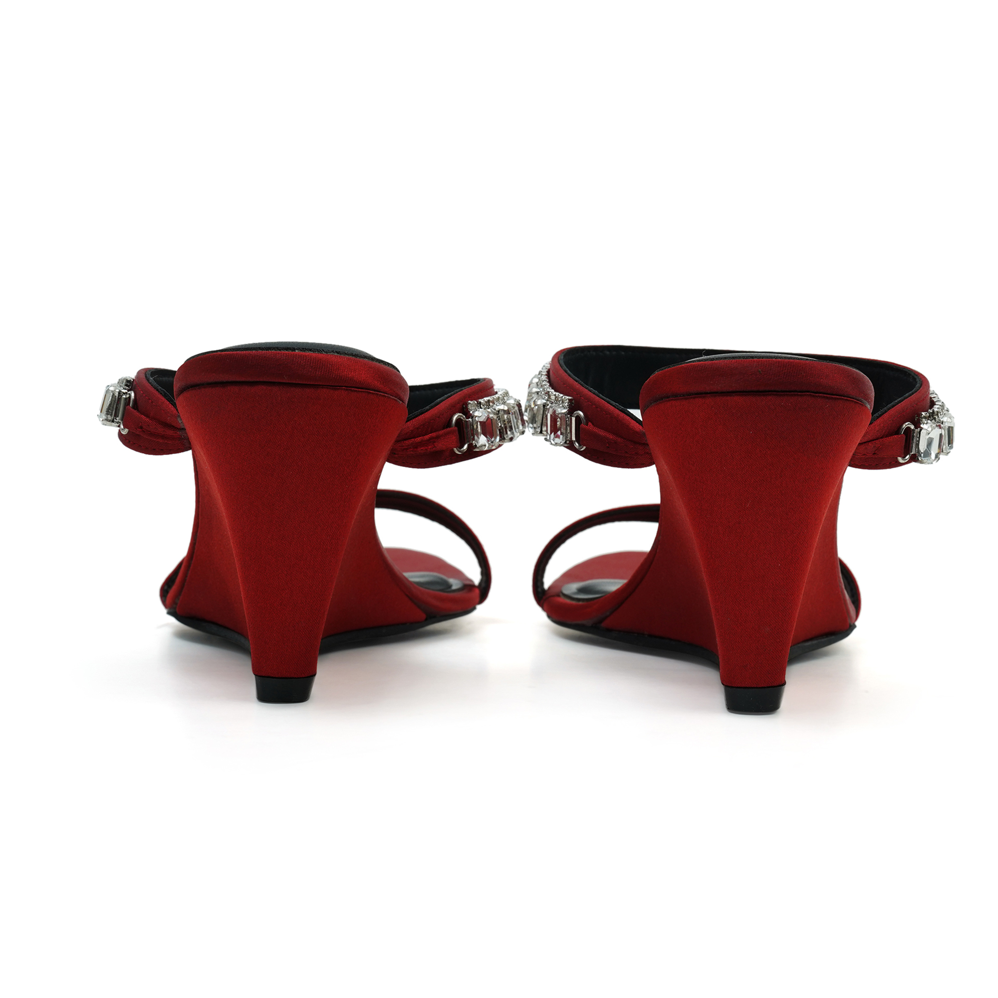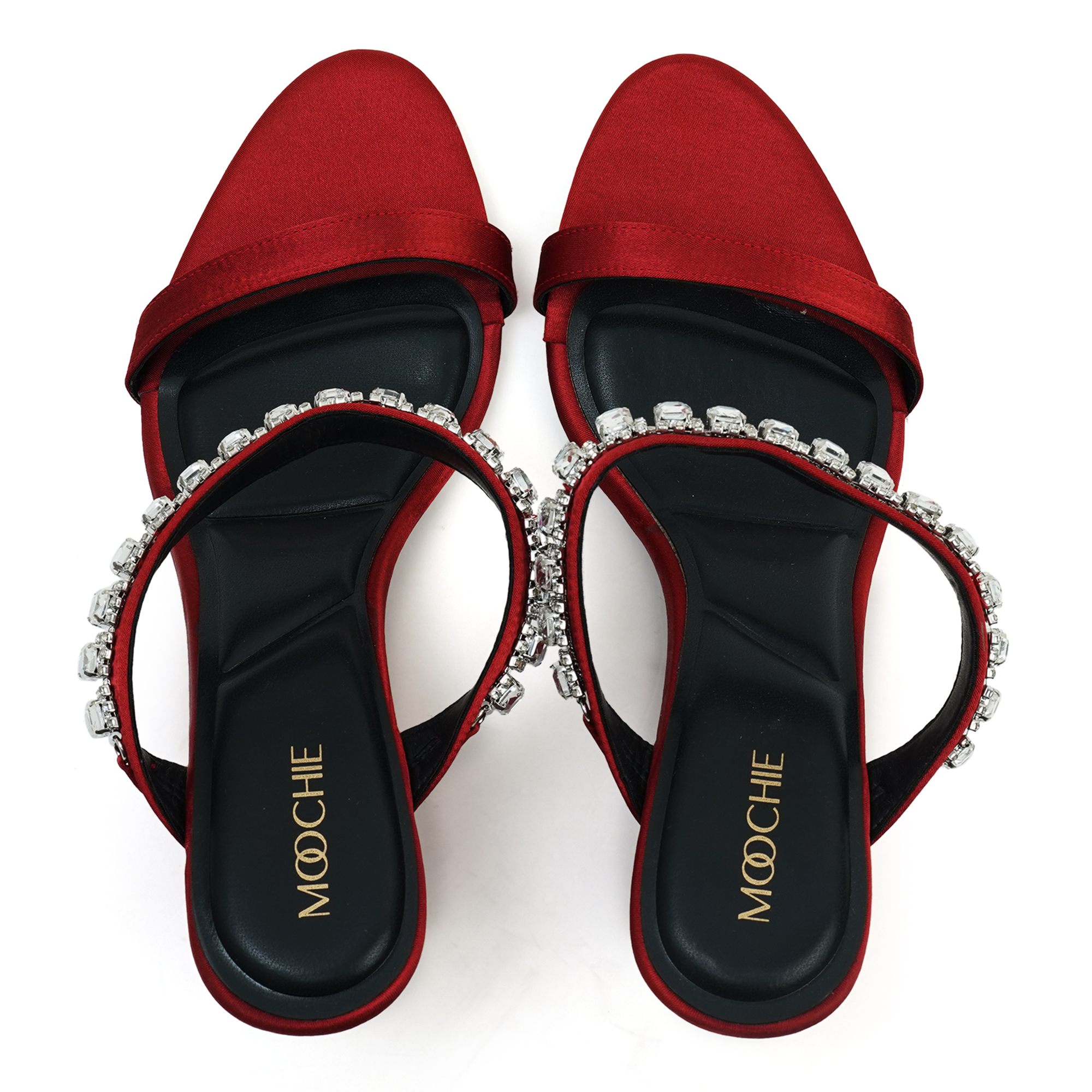 Turn every sidewalk into a red carpet. The Moochie Ruby Radiance Heels wrap your foot in liquid-smooth maroon PU and finish it with a row of sparkling crystal drops. A sky-high yet stable wedge keeps you comfortable while you collect compliments.