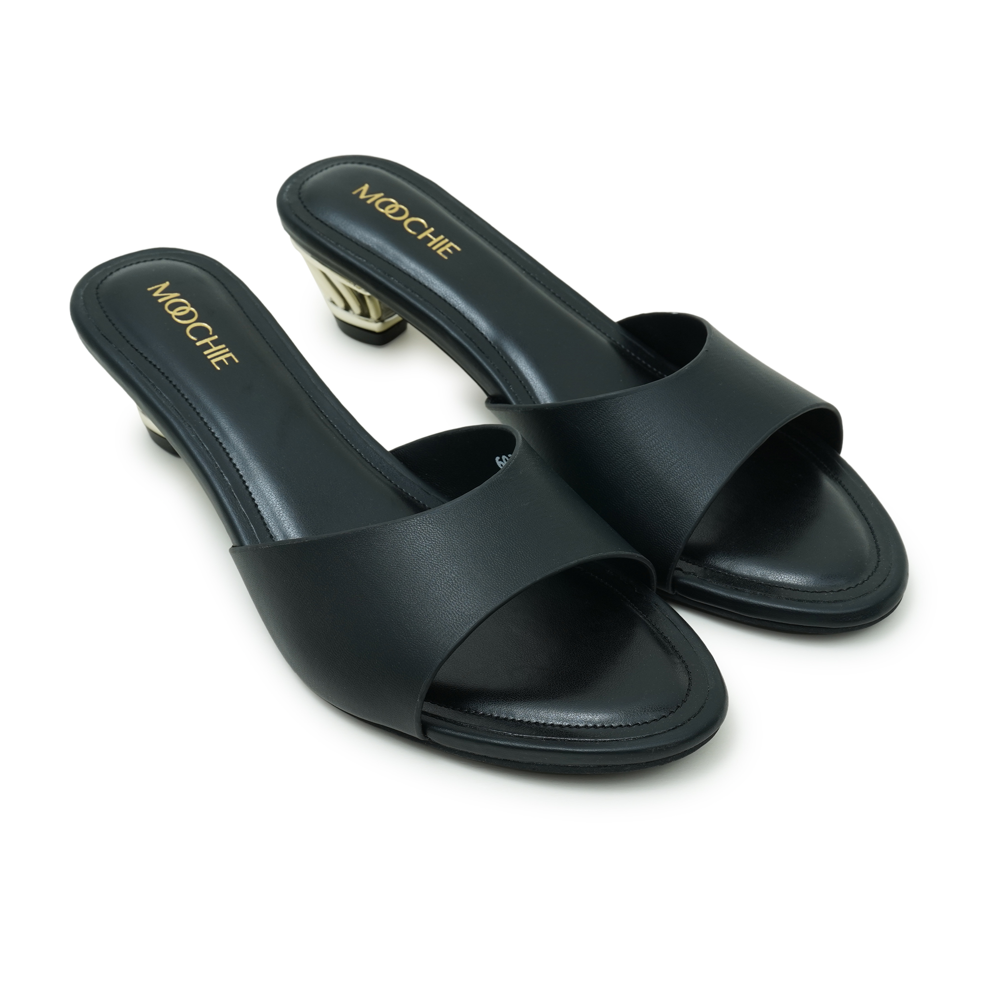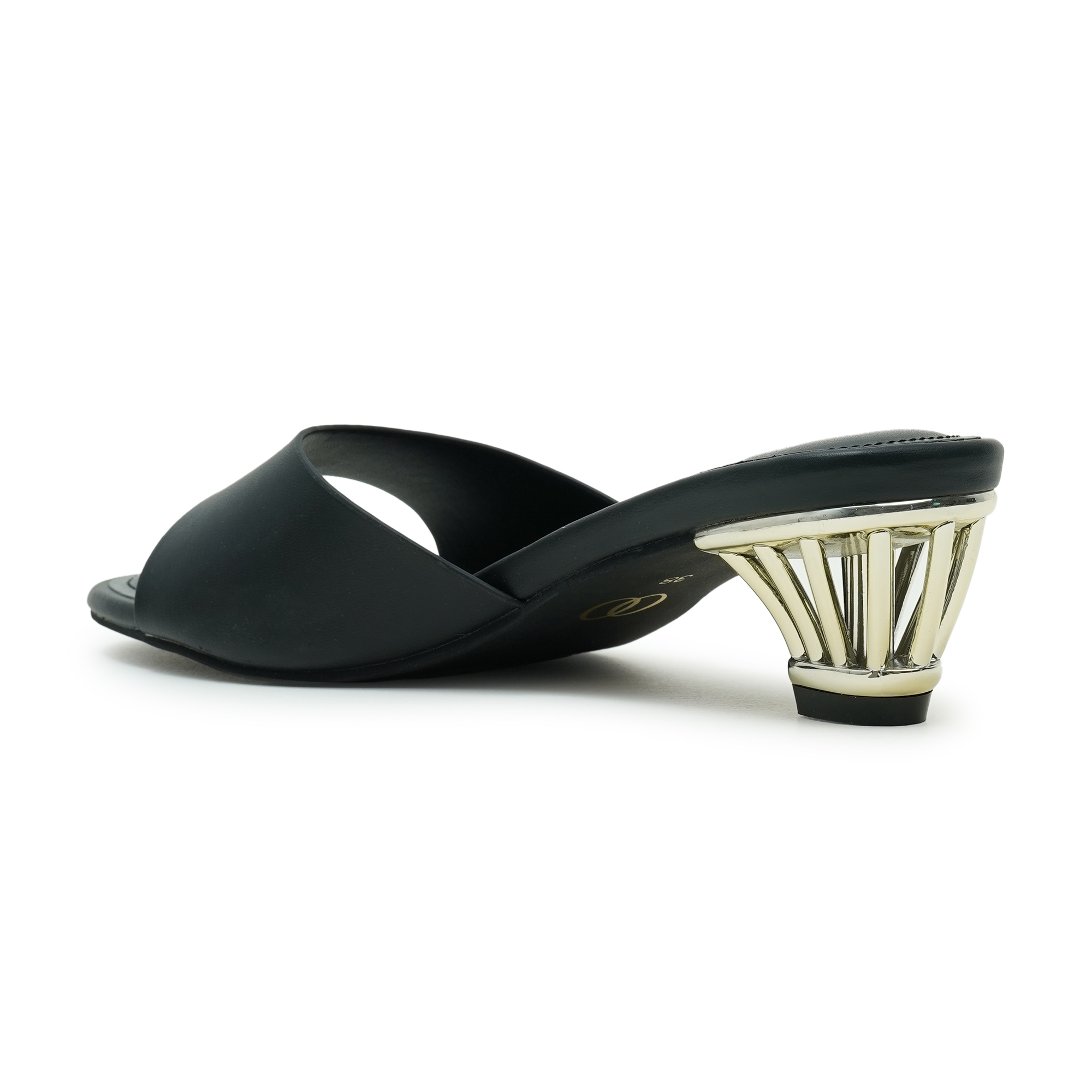 Elevate your evening style with the Moochie Women’s Mid Heel Sandal in classic black. Designed with an open toe and a clean slip-on silhouette, it’s the perfect blend of minimal elegance and party-ready glamour. The standout golden heel adds a luxe, statement touch that instantly upgrades both western and ethnic outfits. Pair it with cocktail dresses, sarees, or co-ords for a polished look that feels confident, refined, and effortlessly chic.