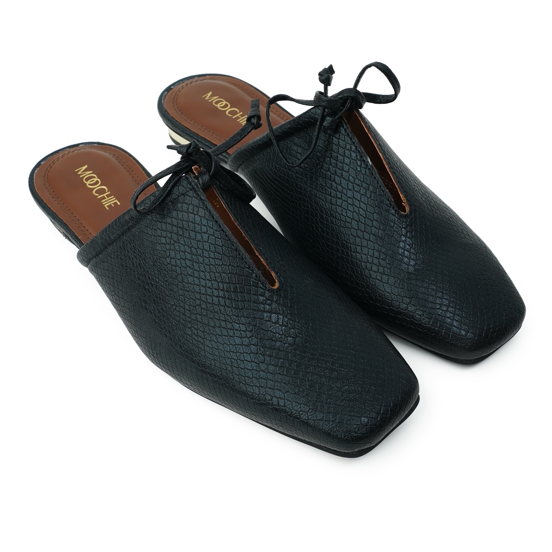 Own the spotlight with the Moochie Women’s Mule Sandal in black, a chic and sophisticated addition to your wardrobe. Crafted with a premium PU upper, this sandal exudes refined elegance, while the durable rubber sole ensures confident, comfortable wear. Perfect for making a bold, stylish statement, it effortlessly elevates both casual and upscale looks with a polished, feminine flair.