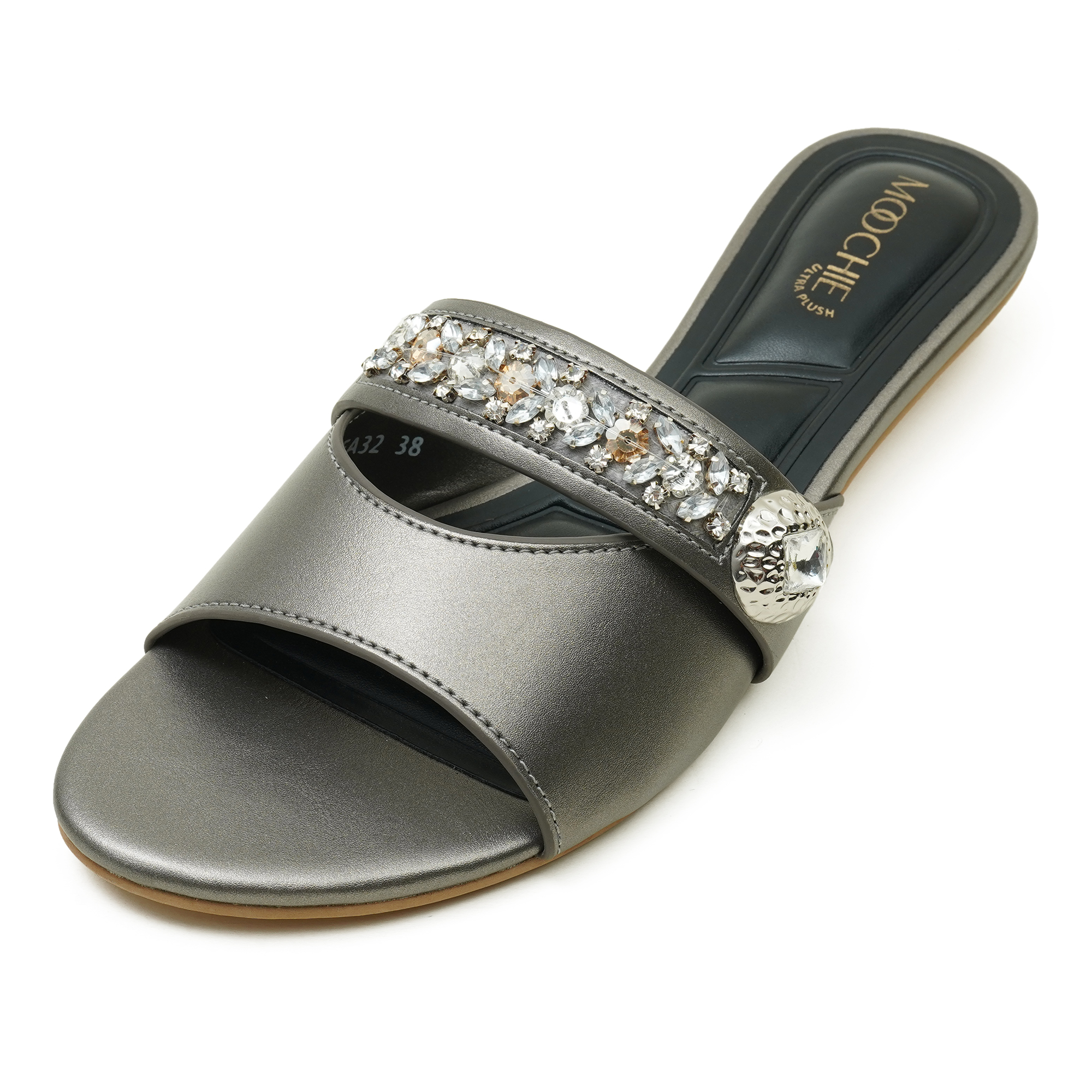 Step into luxurious confidence with this Moochie women’s sandal made for the fashion-forward woman who owns her independence. The standout stonework strap adds a refine d sparkle, elevating even the simplest outfit into a statement look. With its easy slip-on design and open-toe silhouette, it’s perfect for quick styling and effortless elegance. The cushioned footbed and stable sole keep you comfortable from daytime plans to evening occasions.