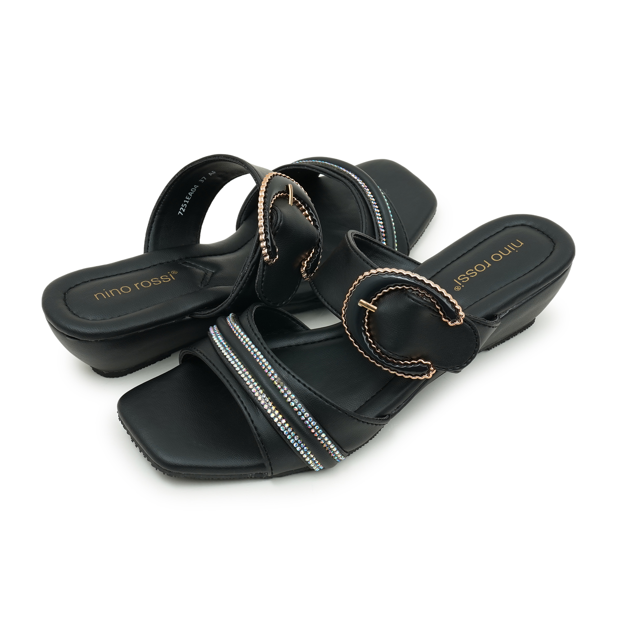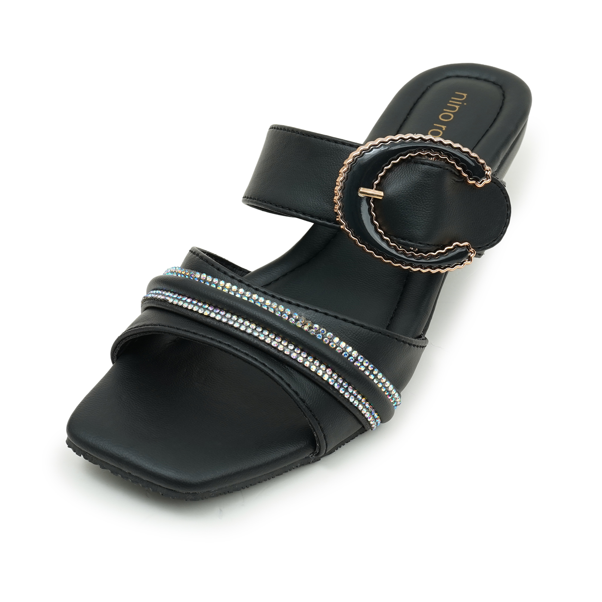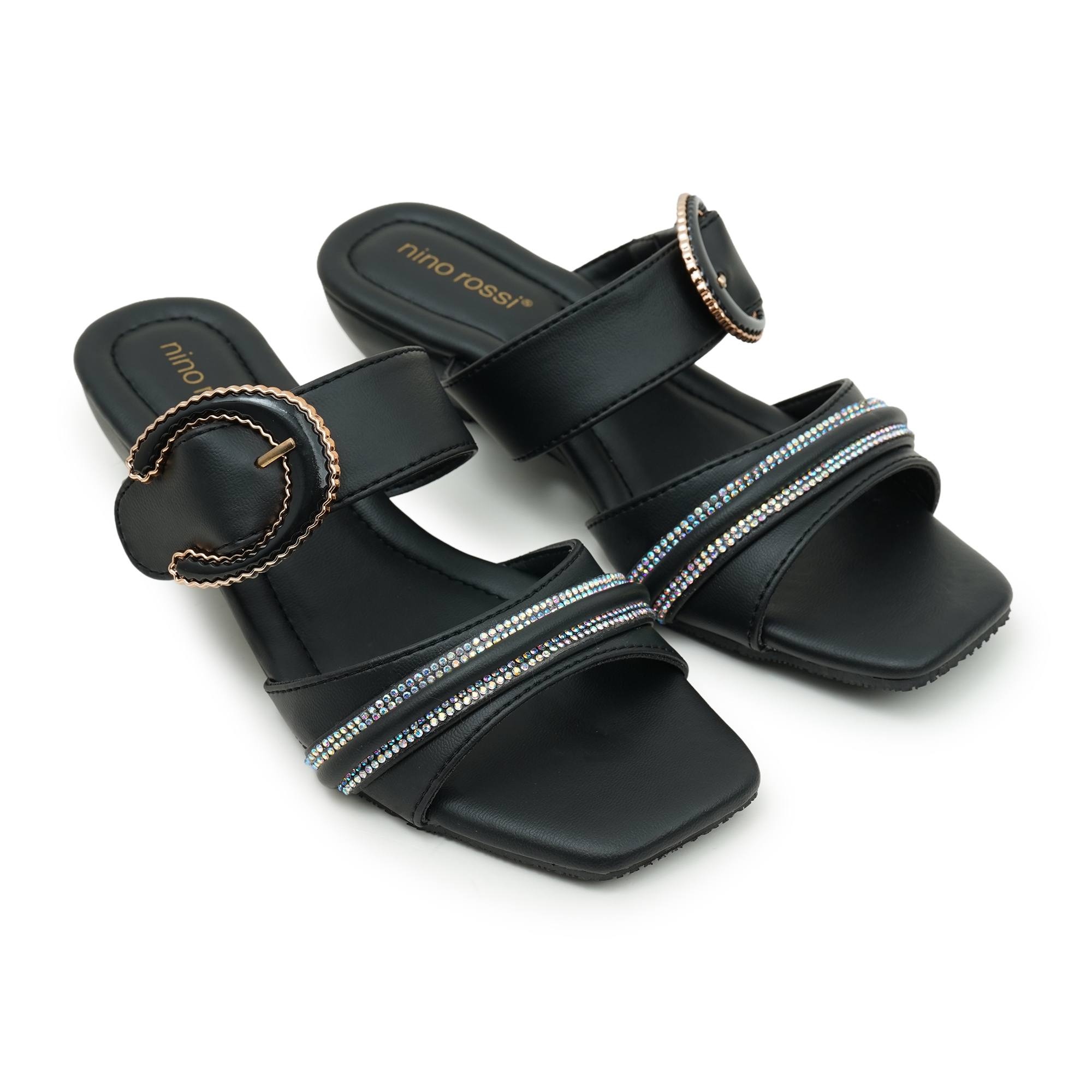 Elevate your everyday or evening outfits with Nino Rossi Open Mid Sandals in Black. Built with PU on the upper, lining, and sole, these sandals offer a balanced mid-heel for comfortable wear. The slip-on design and sleek silhouette make them versatile for workwear or after office ensembles to high your standards.