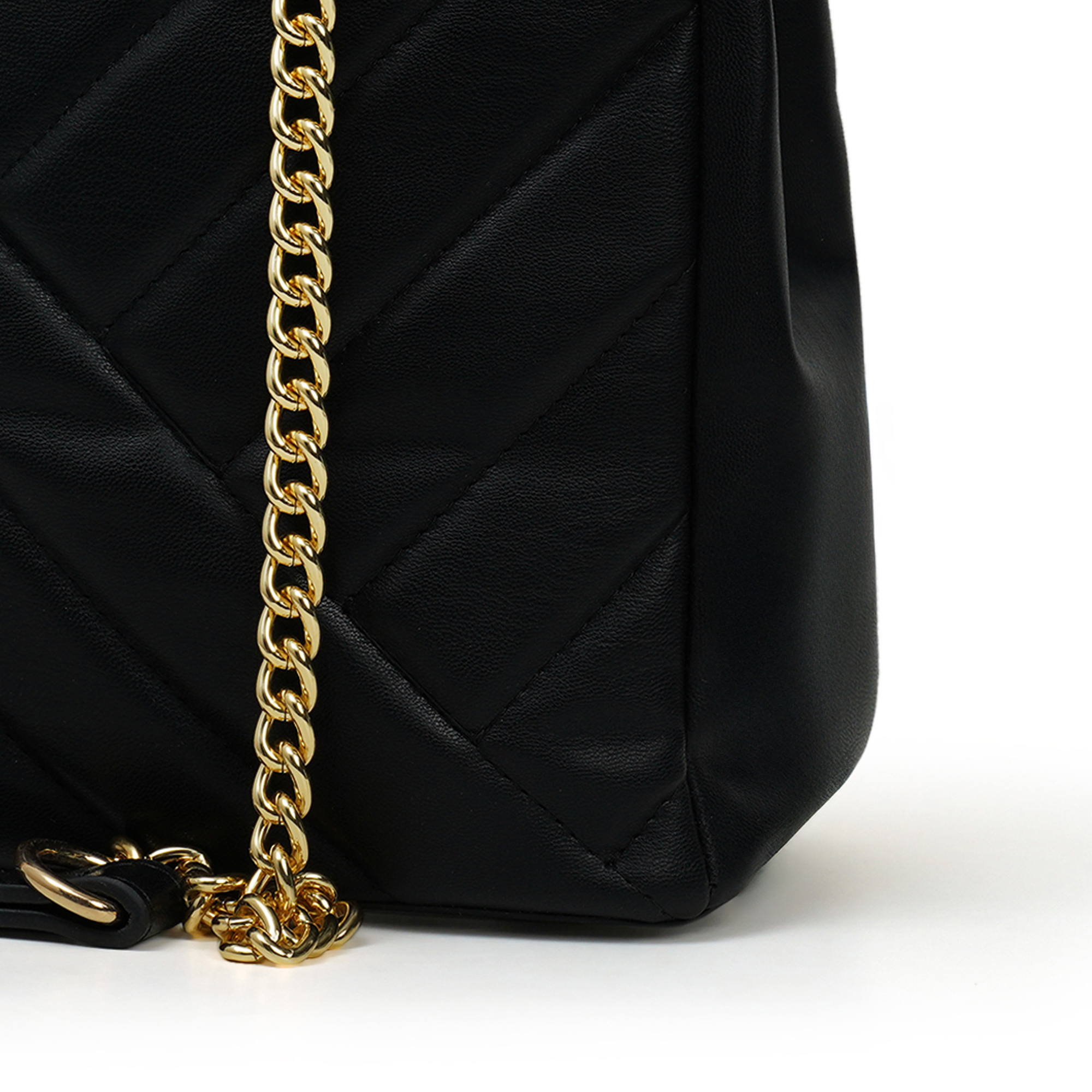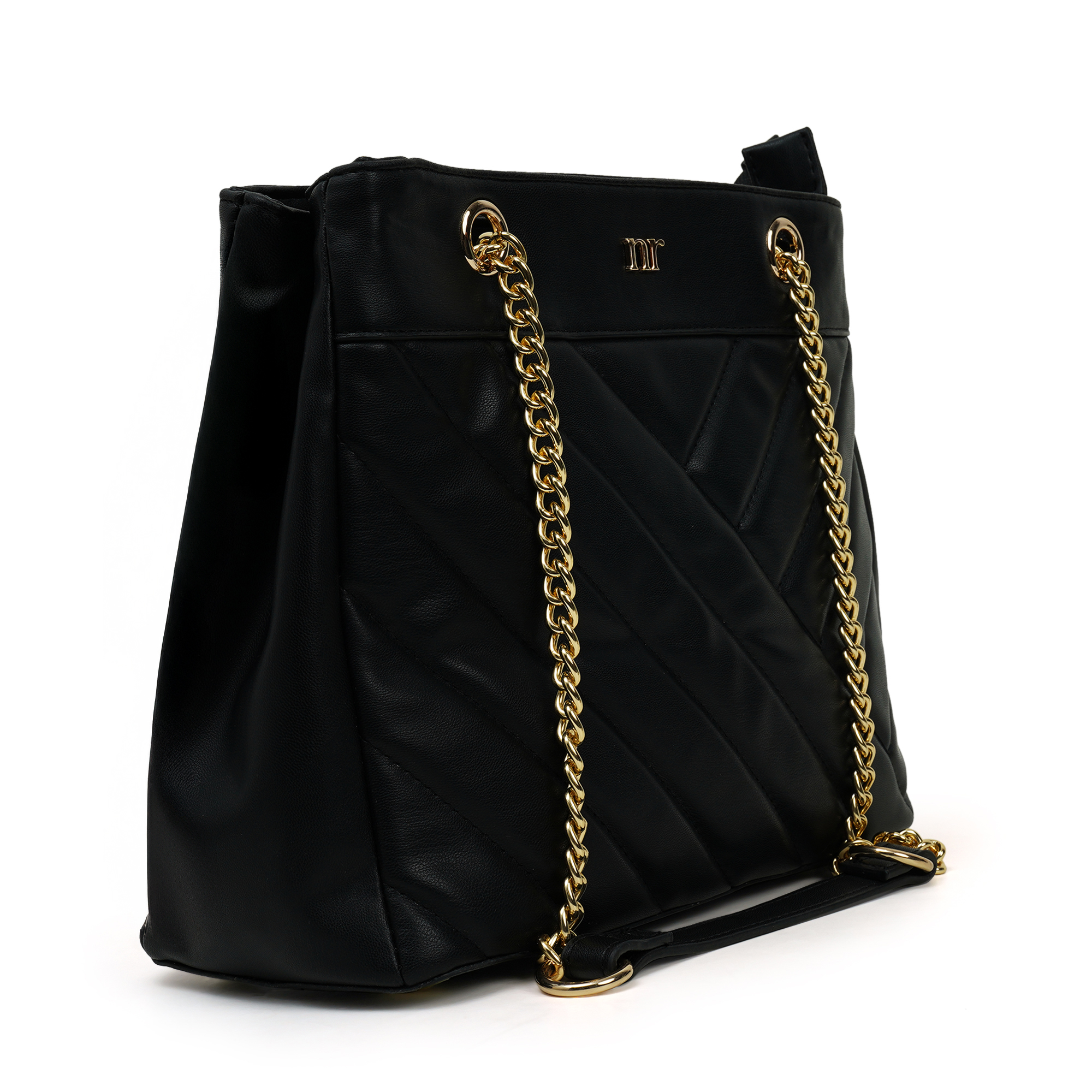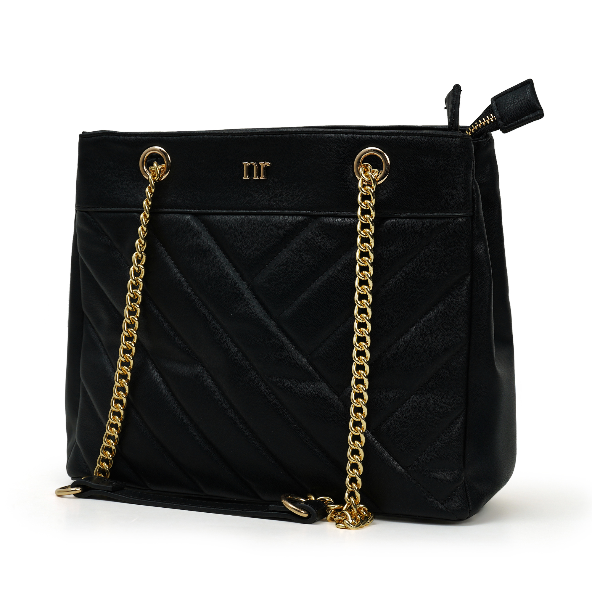 Instant polish, zero effort. The Nino Rossi quilted-panel bag wraps jet-black PU around a soft chevron quilt and finishes with gleaming gold chains plus the discreet “nr” logo. A smooth top zipper secures a fabric-lined interior sized for phone, long wallet and makeup. Carry cross-body or on the shoulder- perfect for desk, dinner and everywhere between.