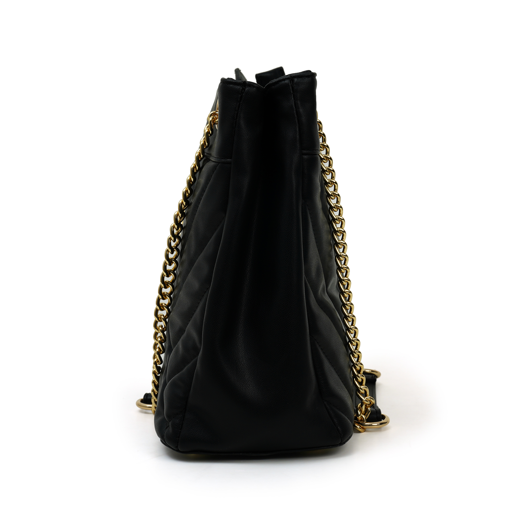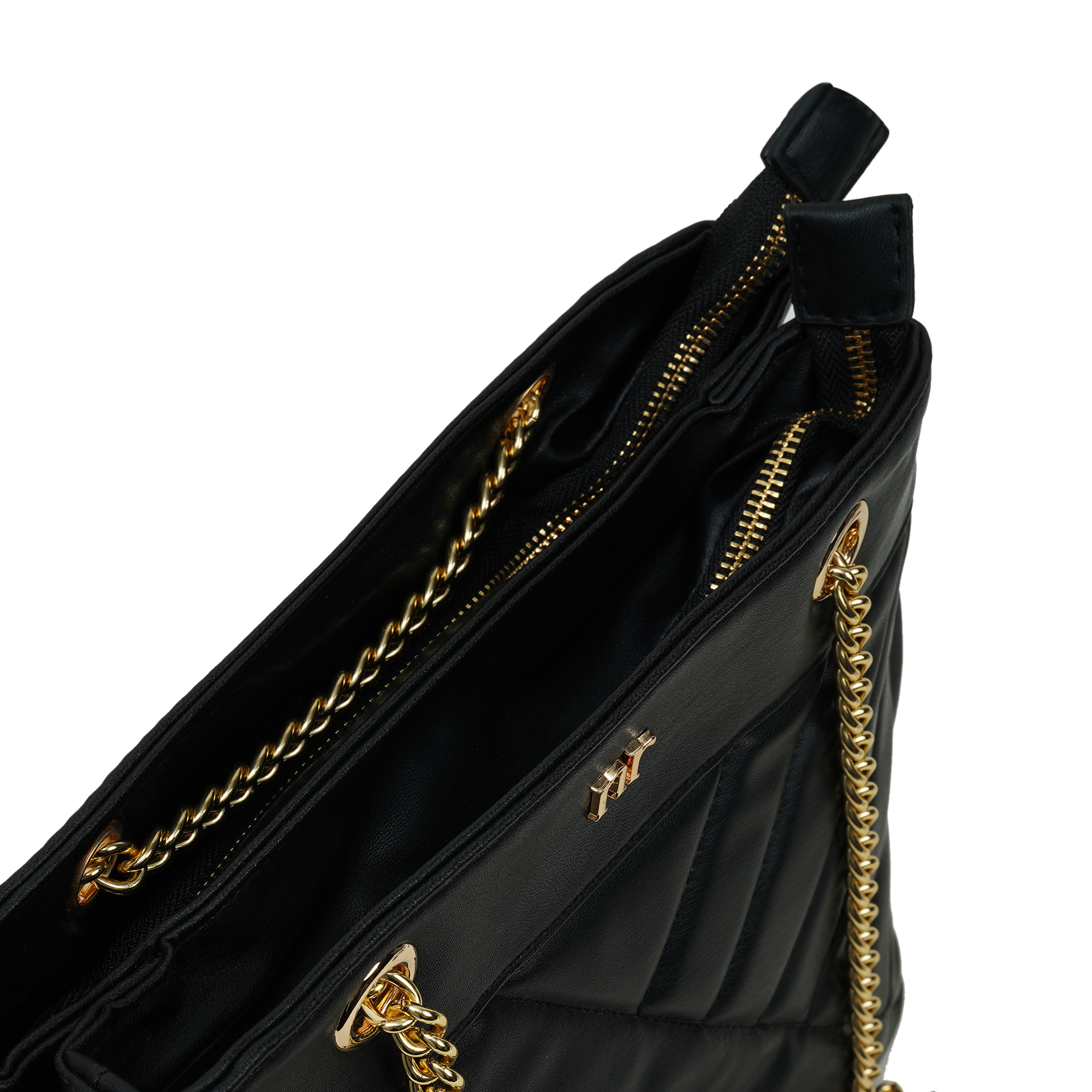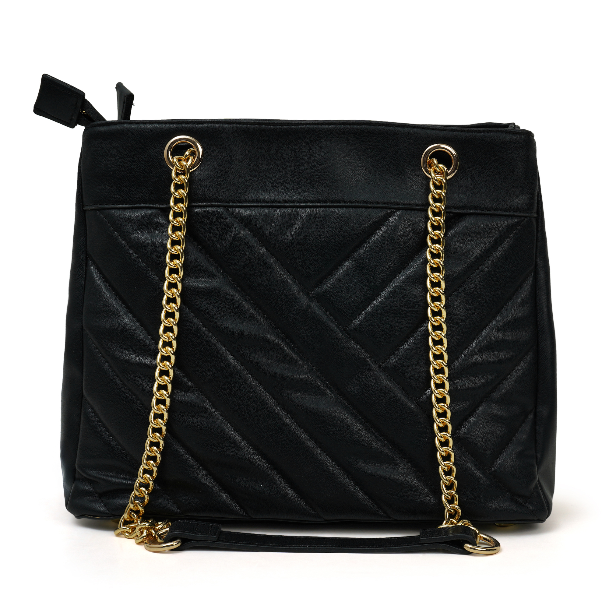 Instant polish, zero effort. The Nino Rossi quilted-panel bag wraps jet-black PU around a soft chevron quilt and finishes with gleaming gold chains plus the discreet “nr” logo. A smooth top zipper secures a fabric-lined interior sized for phone, long wallet and makeup. Carry cross-body or on the shoulder- perfect for desk, dinner and everywhere between.