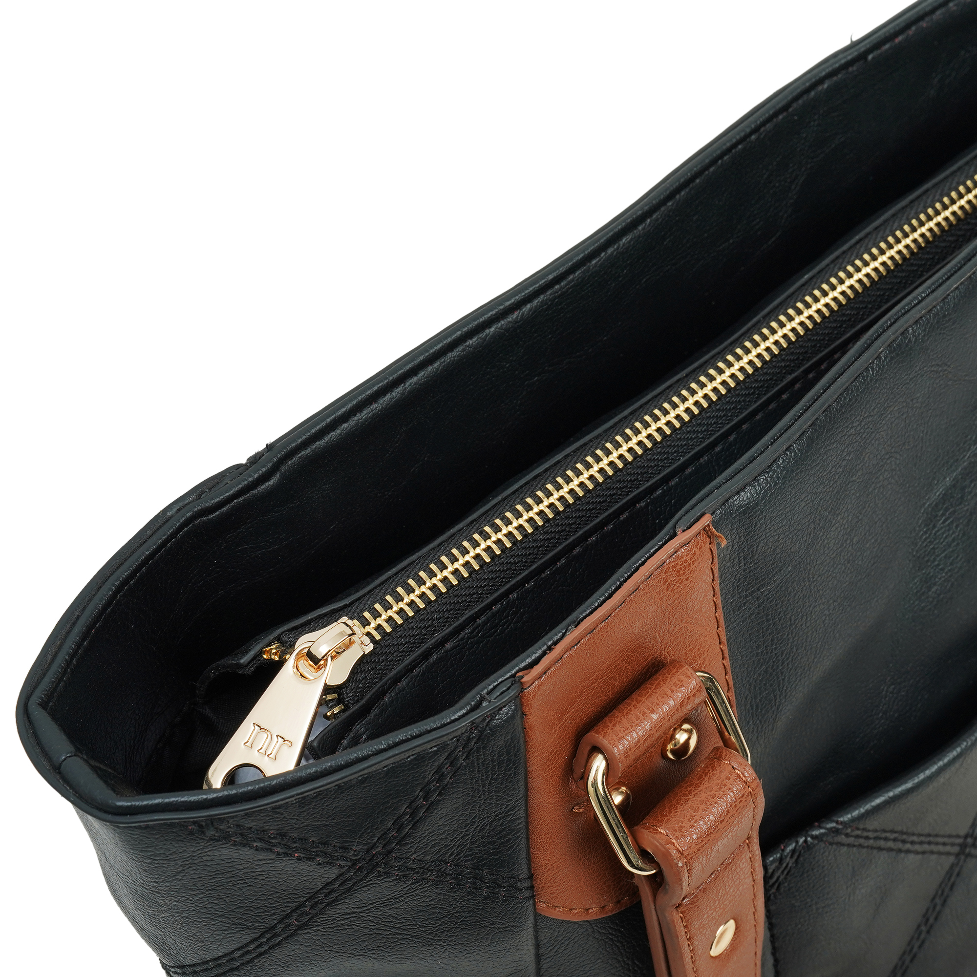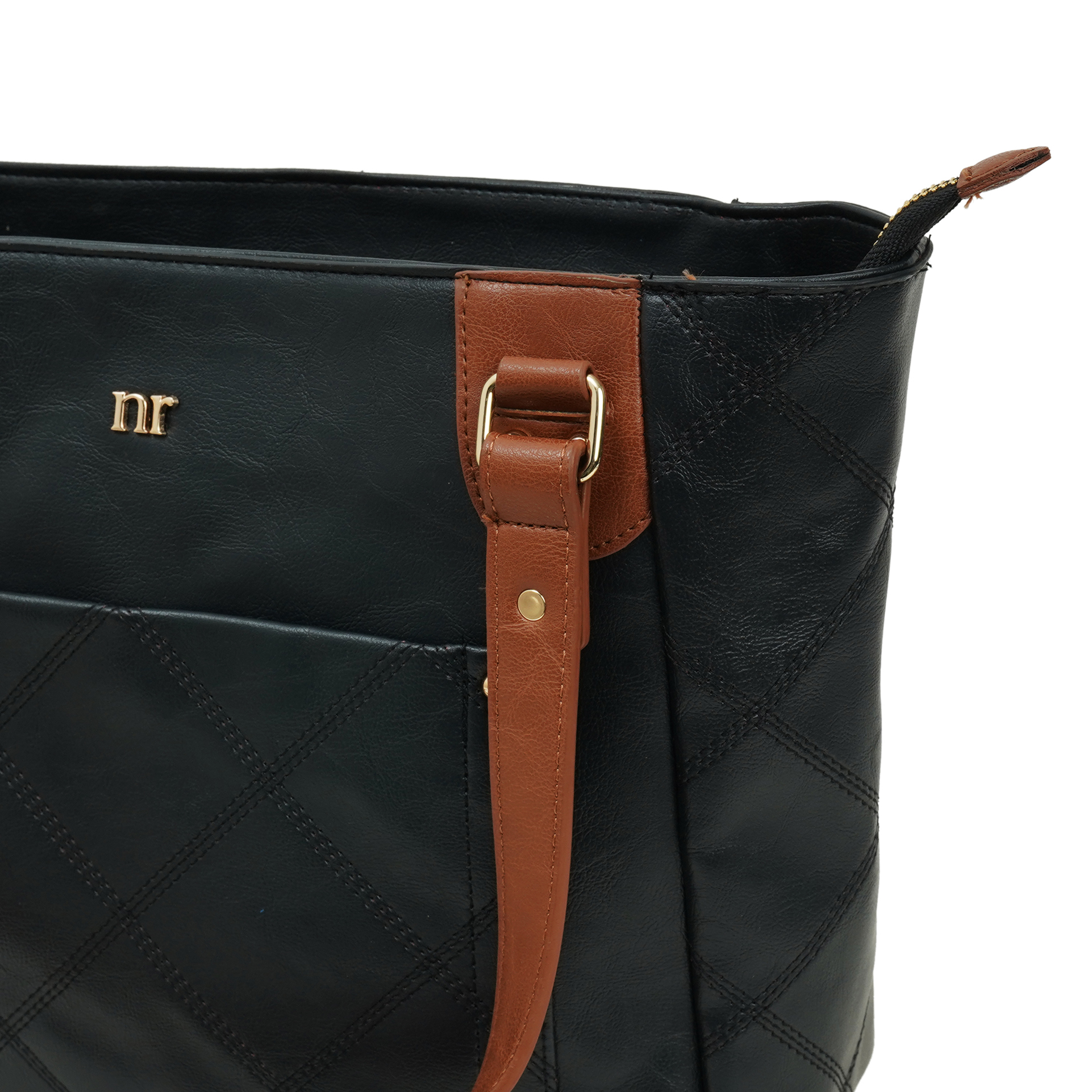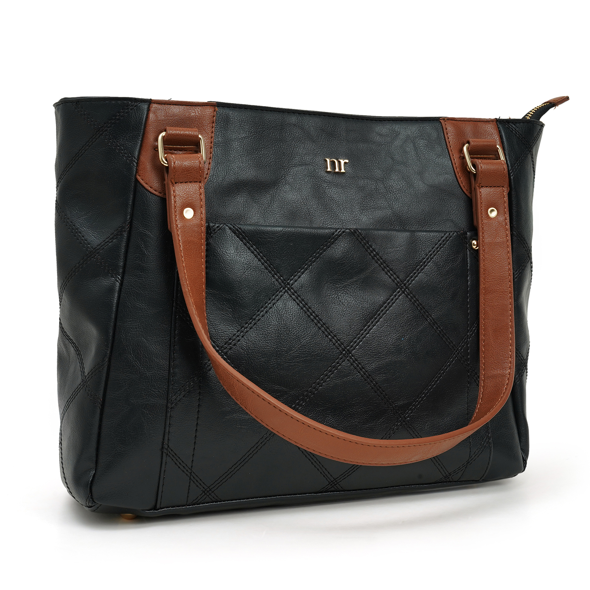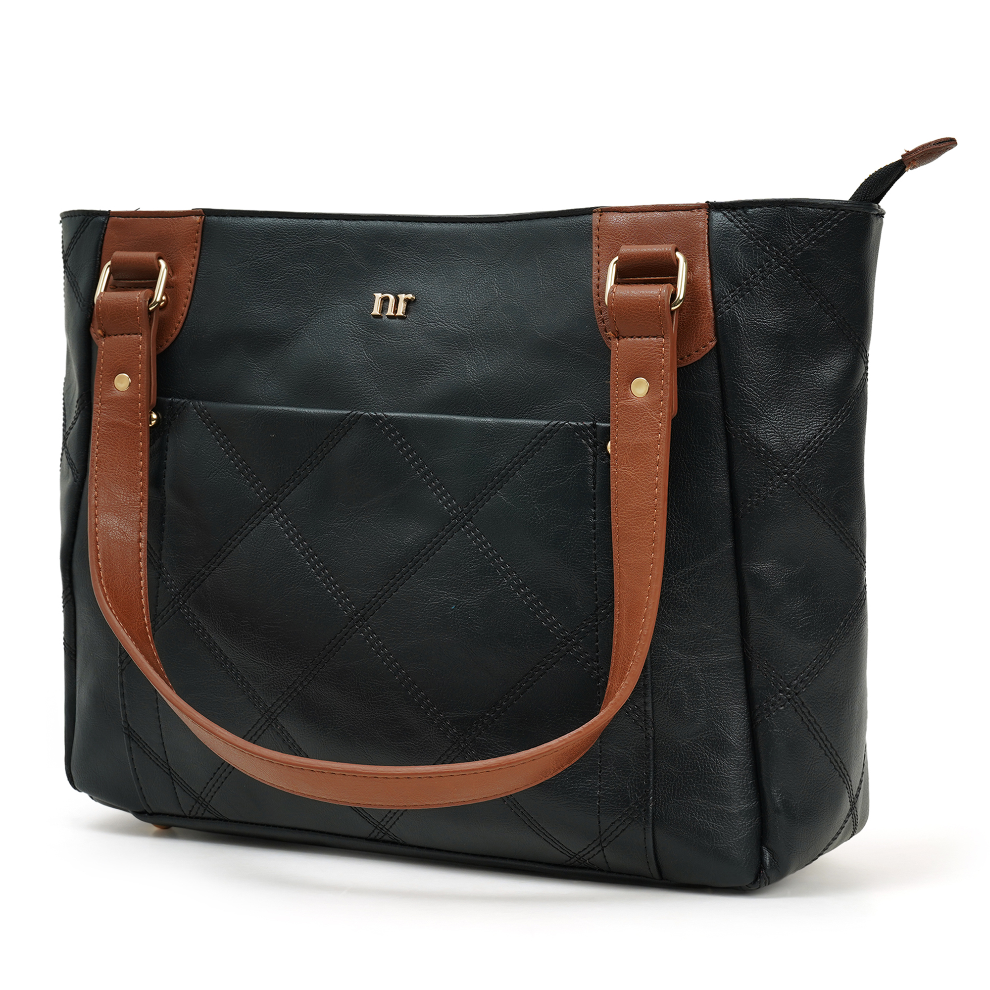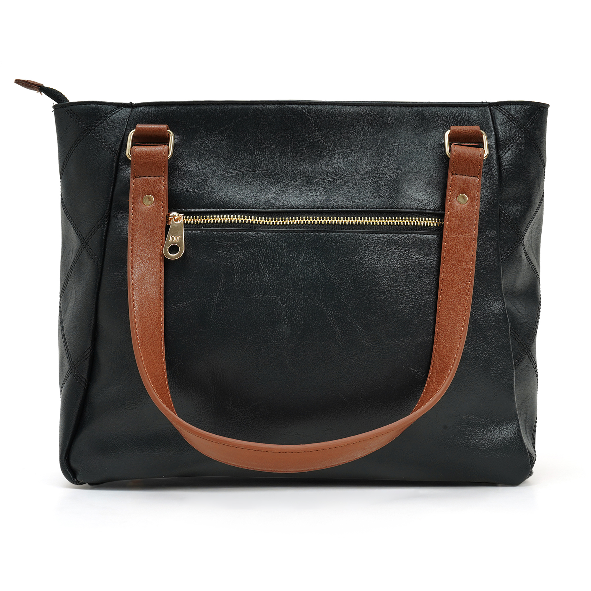 Desk, dinner, weekend escape- one bag does it all. The Two-Tone City Carryall blends a sleek black PU body with rich cognac straps, giving you effortless style and room for every daily essential. The NR logo, Everyday Tote holds laptops, lunch and shopping hauls- while looking perfectly composed.