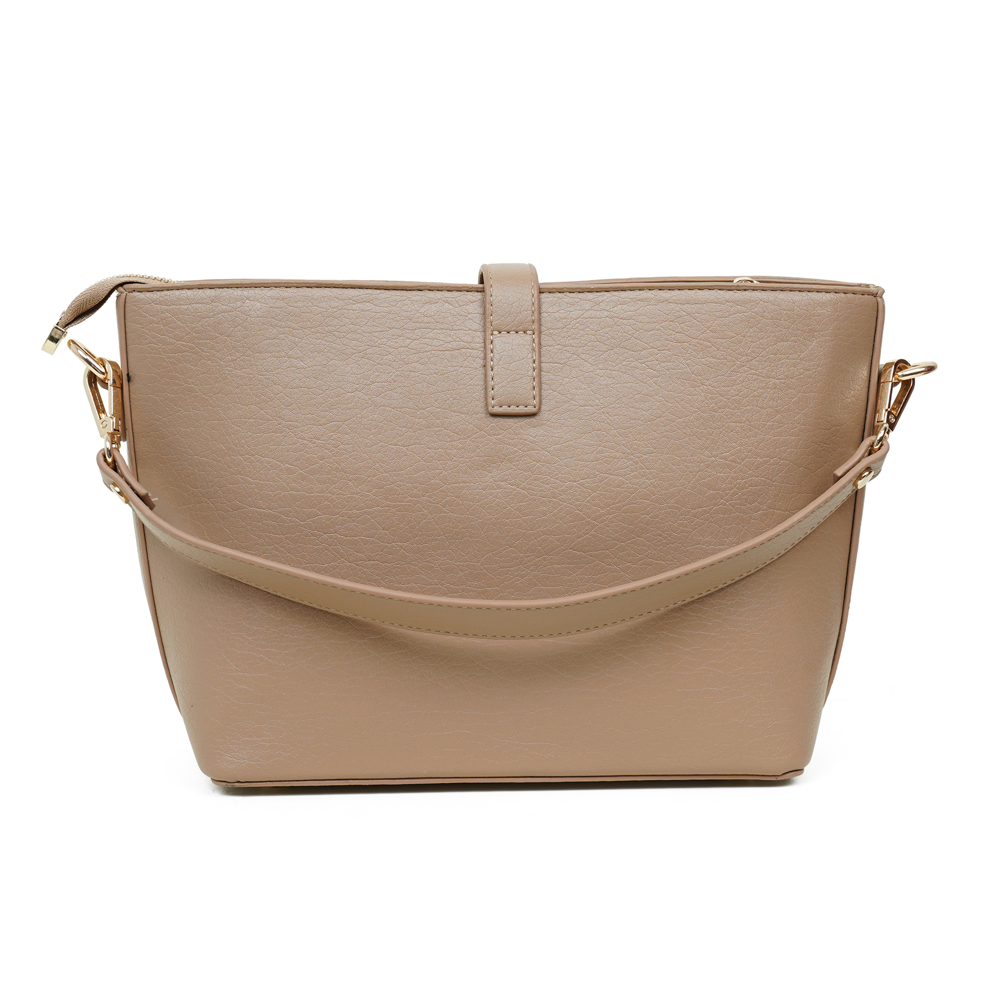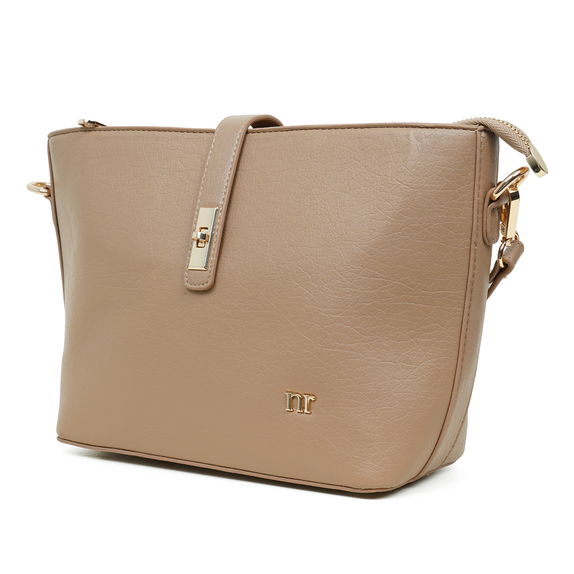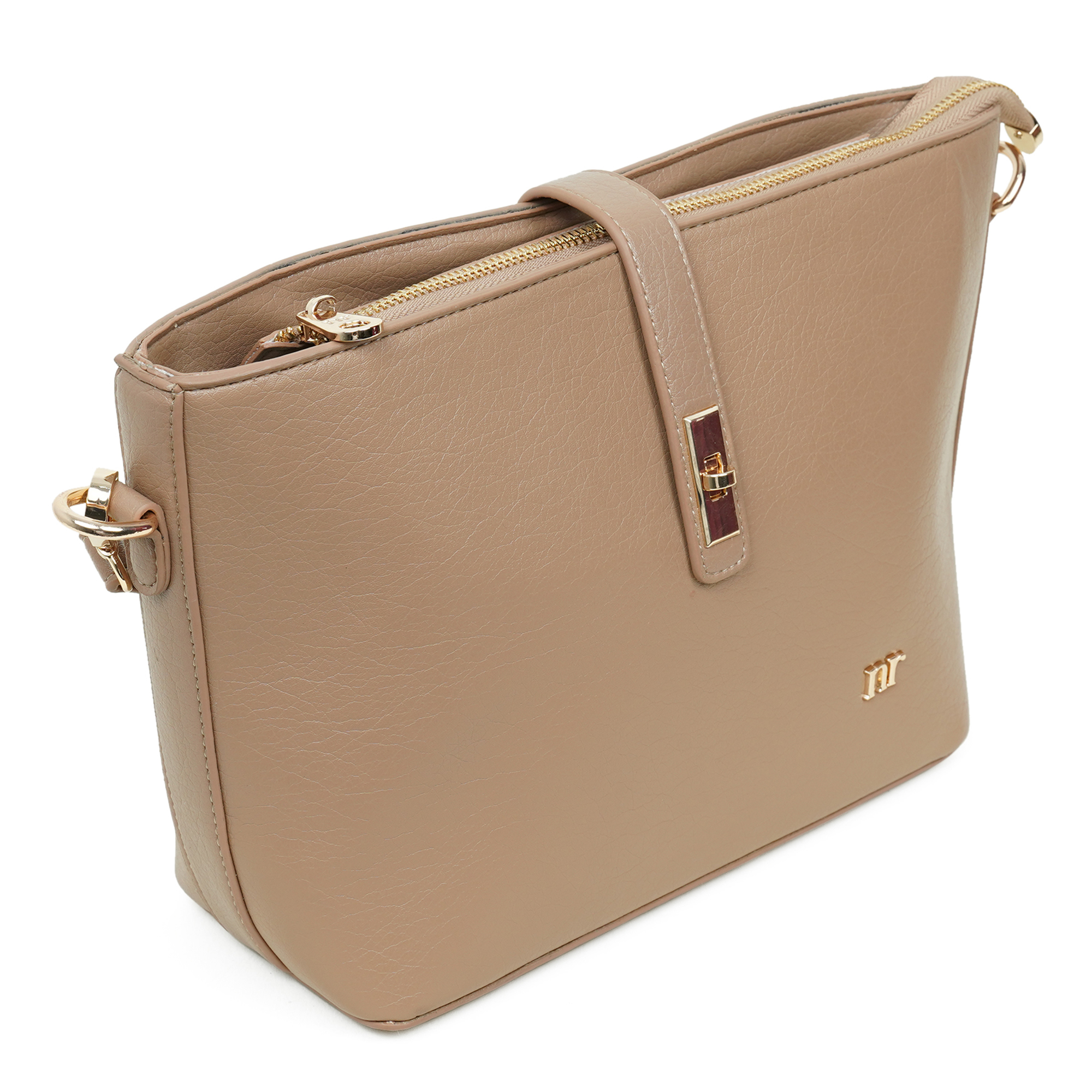 Rich and refined, this brown tote bag from Nino Rossi combines a supple PU exterior with elegant golden metal trim and subtle logo accents. Crafted for the modern woman who appreciates timeless sophistication and everyday versatility, it offers a spacious, well-organized interior ideal for work, travel, or casual outings. Its warm, earthy tone and polished details make it a standout yet practical addition to any wardrobe.