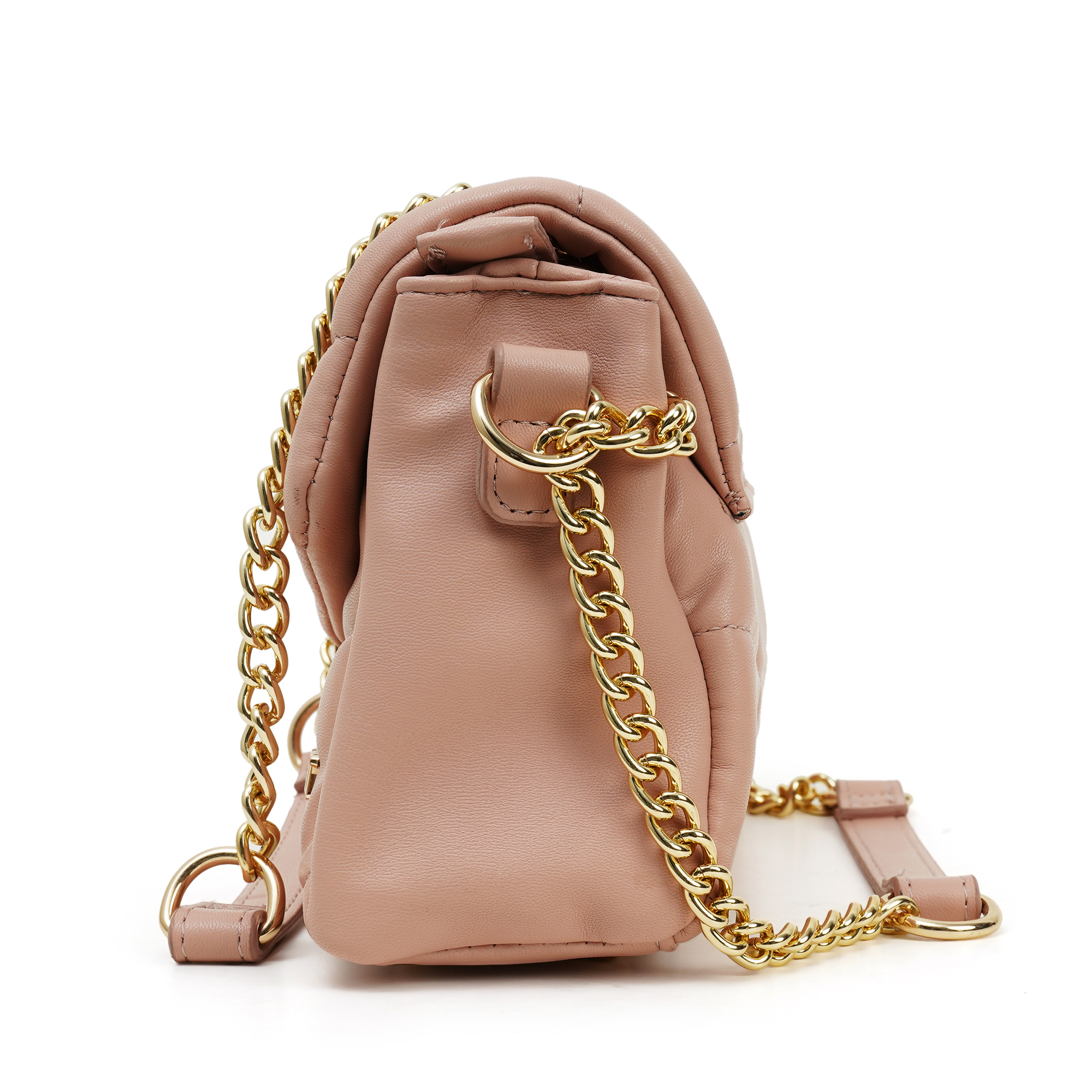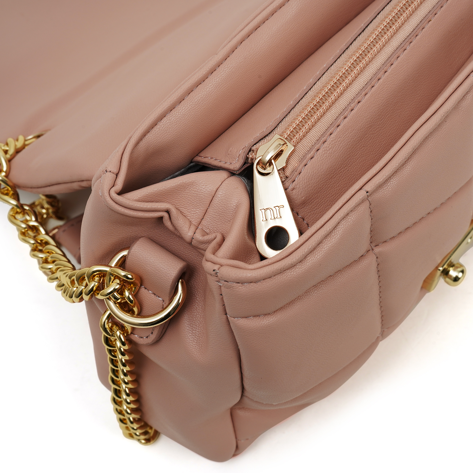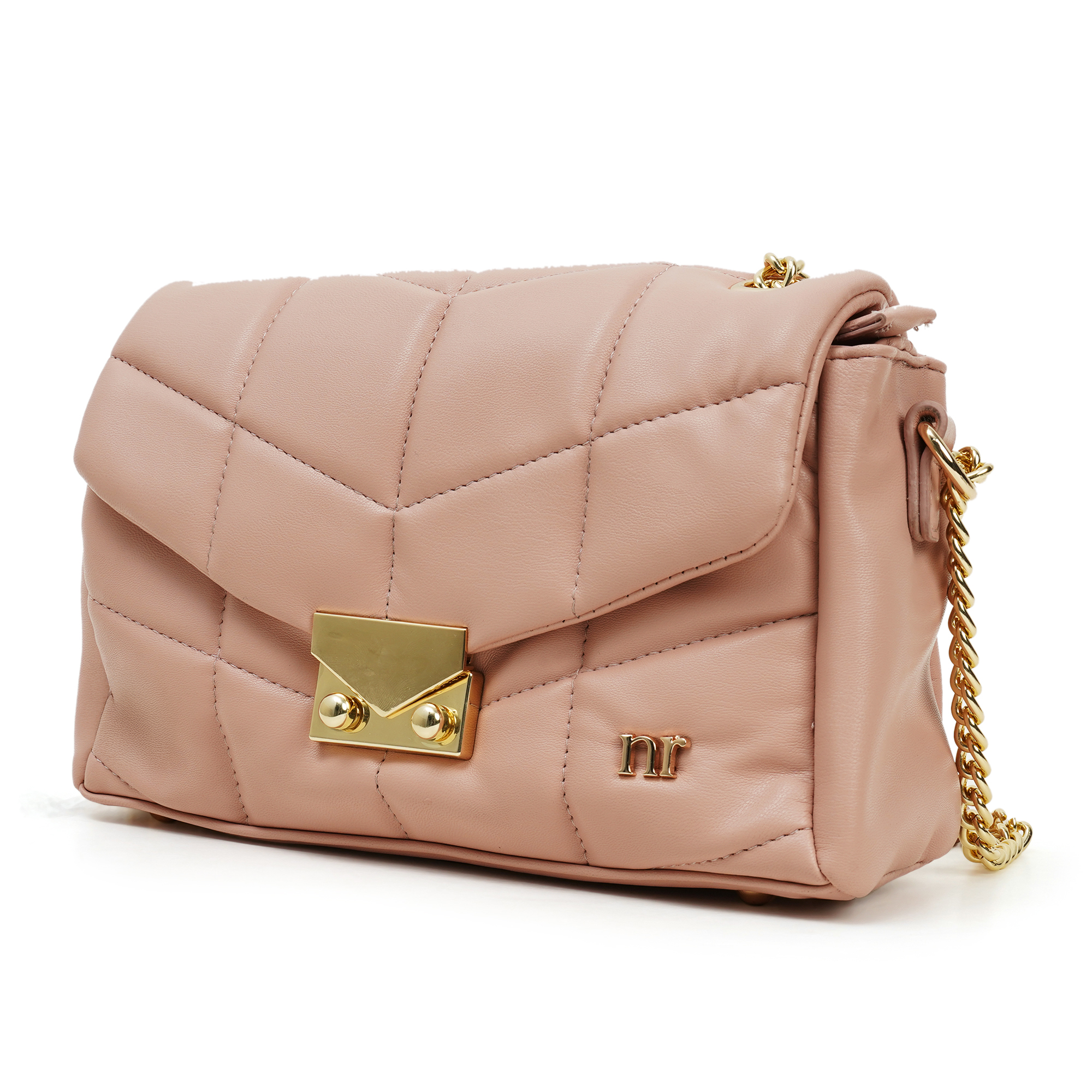 Soft colour, sharp attitude. The Nino Rossi Bag- Rose Quartz Chain Flap combines marshmallow-soft quilting with a statement turn-lock and chunky gold chain, delivering runway polish you can wear from coffee runs to meeting hours. Matte-sheen PU, chevron quilting and a gold turn-lock give the NR Signature Quilted Mini instant luxe vibes while its smart interior keeps essentials neatly in place.