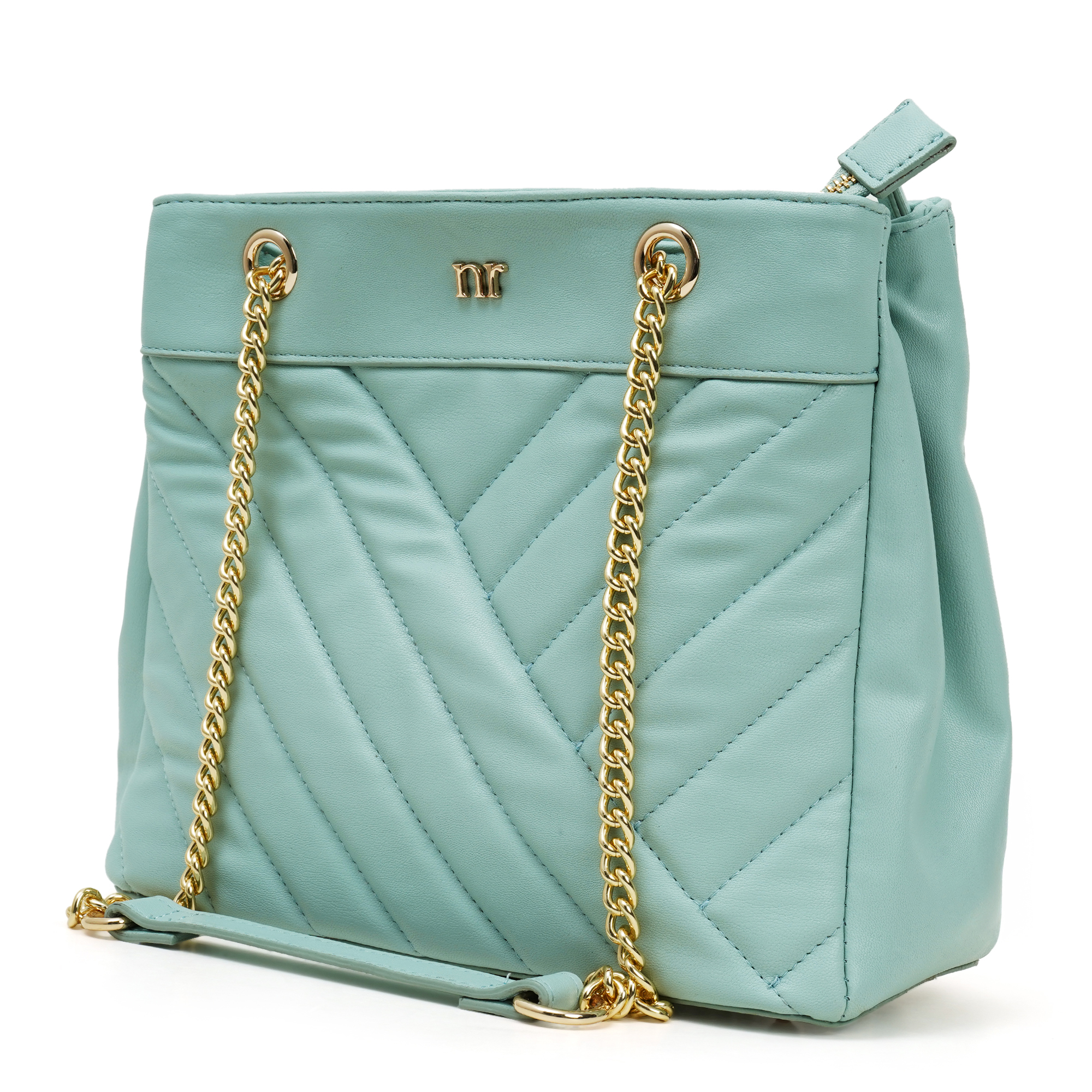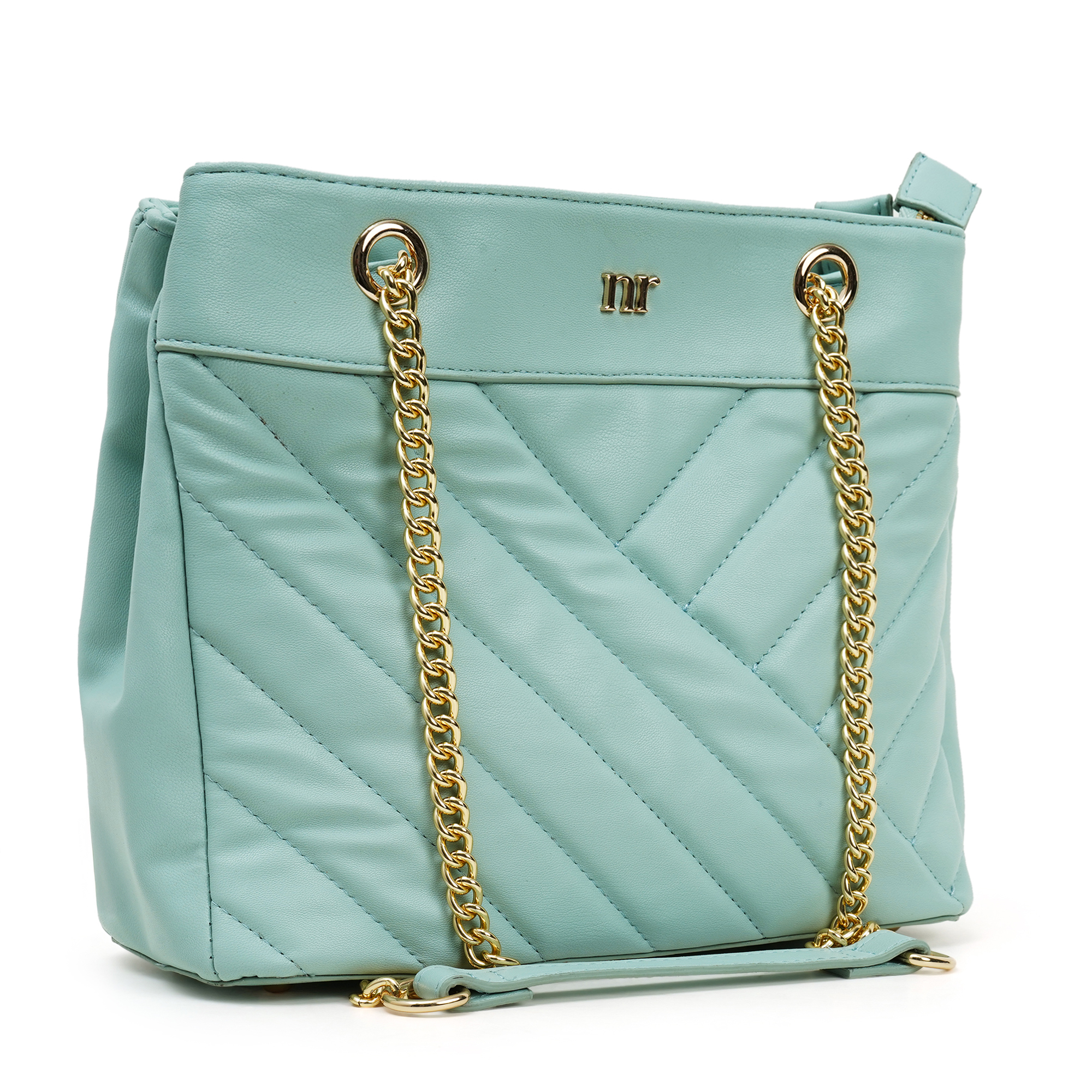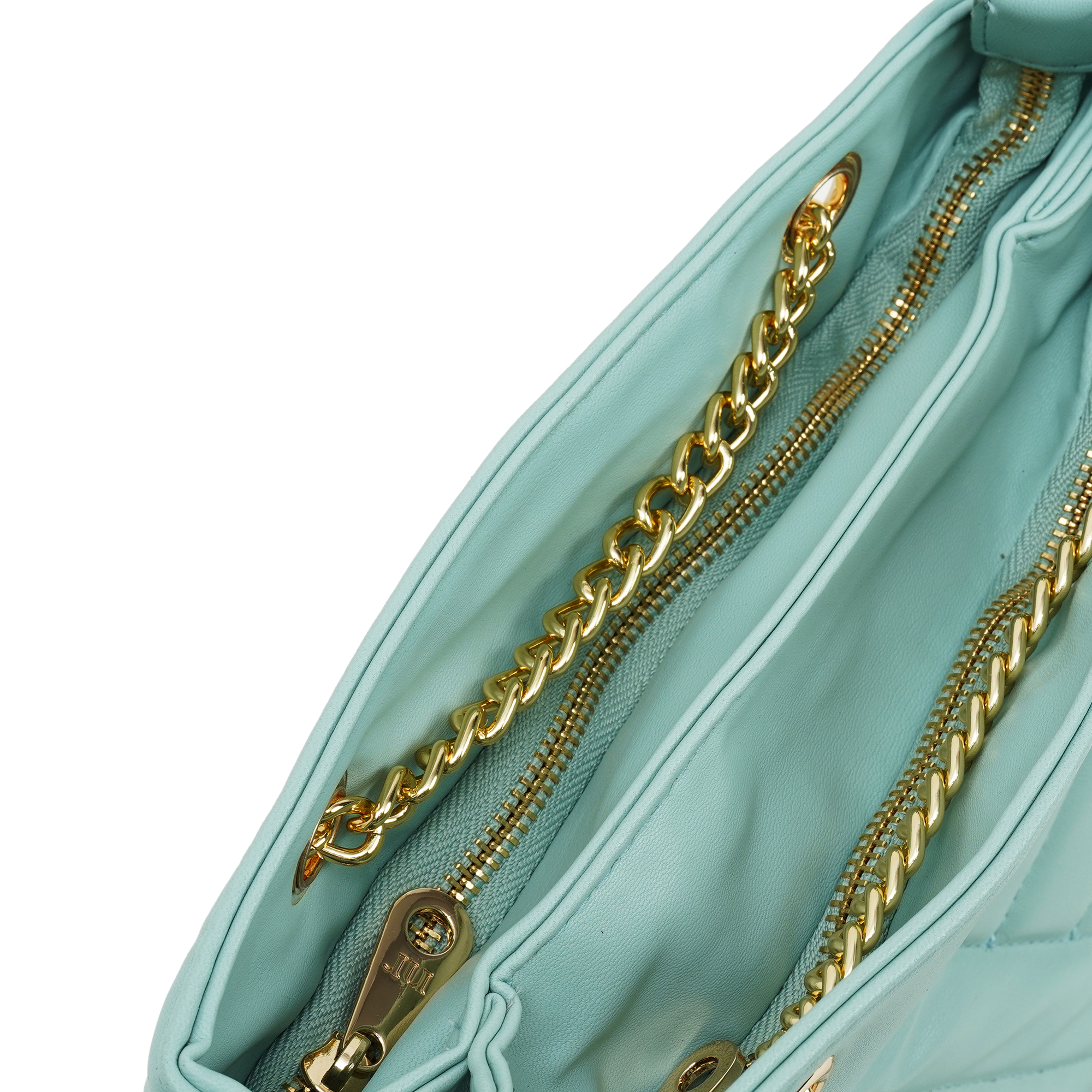 Lightweight yet structured, the flat base stands upright when you set it down. The soft ice-blue hue teams effortlessly with white, beige or denim, bringing new energy to every outfit. Adds a pop of sophisticated colour with the Nino Rossi women’s blue quilted chain bag, a luxury look built on PU. Precision-stitched chevron panels create subtle depth without bulk, while a gleaming gold chain, threaded with matching exterior, effortlessly transitions from an elegant shoulder drape to a hands-free cross-body in seconds. Unzip the top to reveal a full-fabric lining equipped with a zipped wall pocket for keys and cash plus a slip slot for phone or mirror.