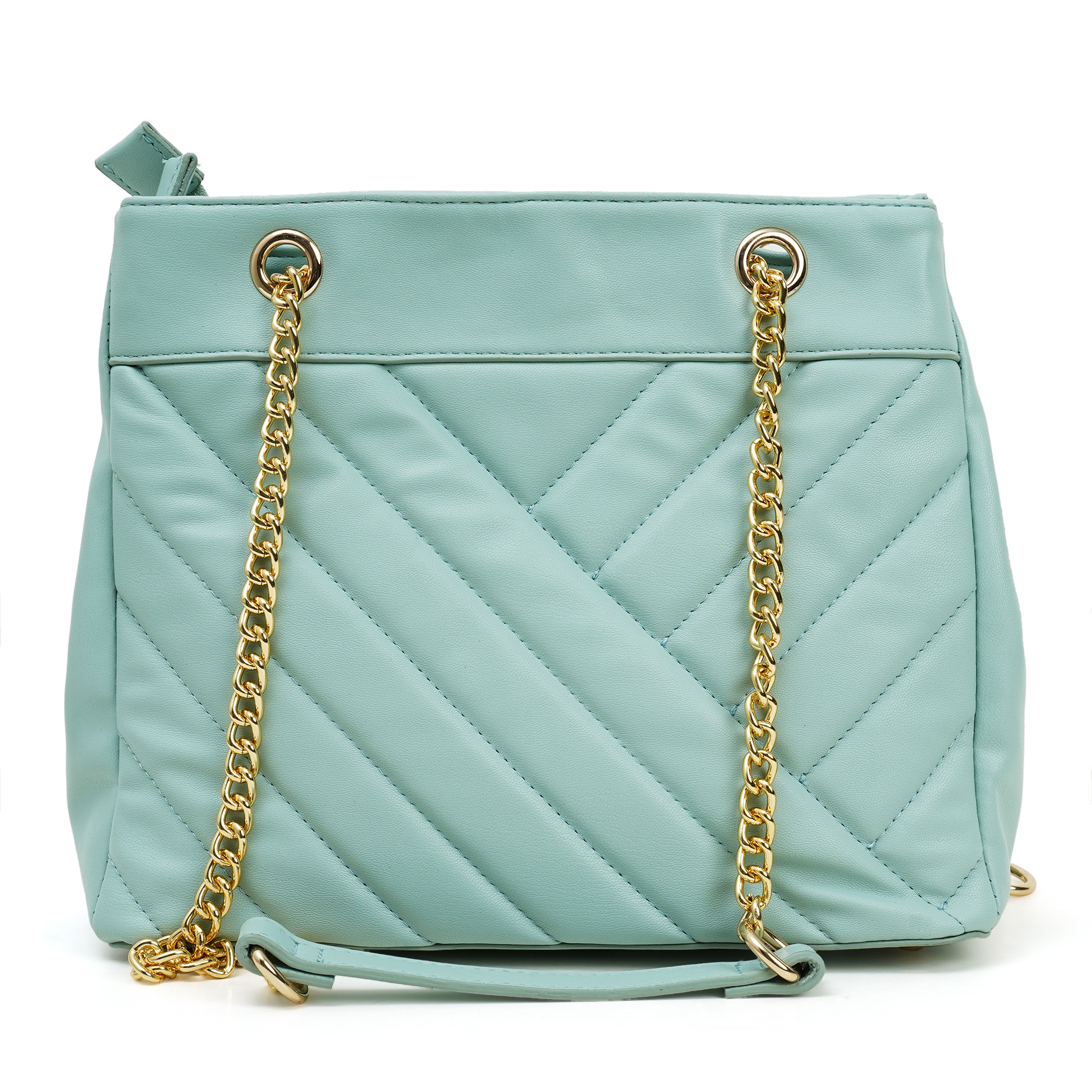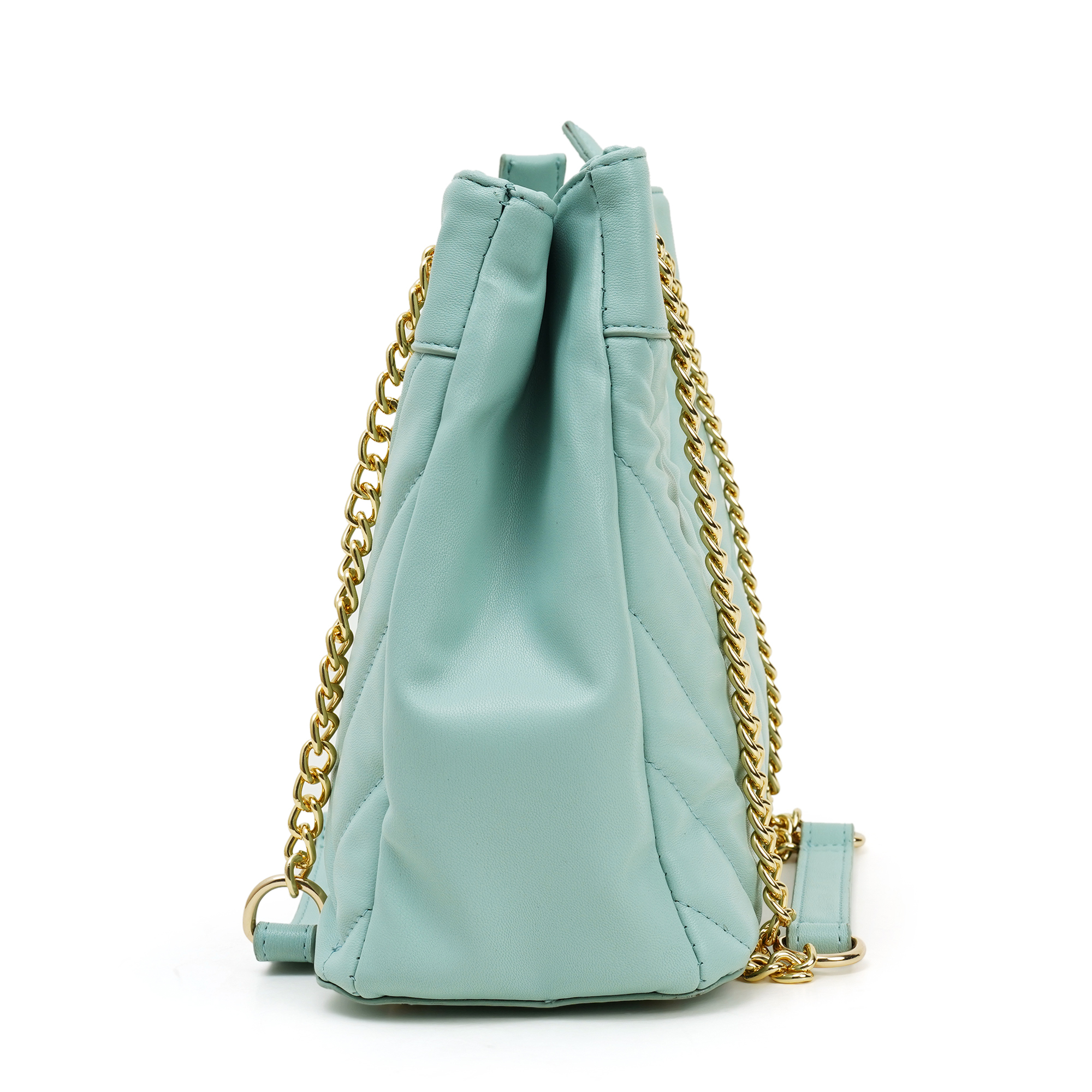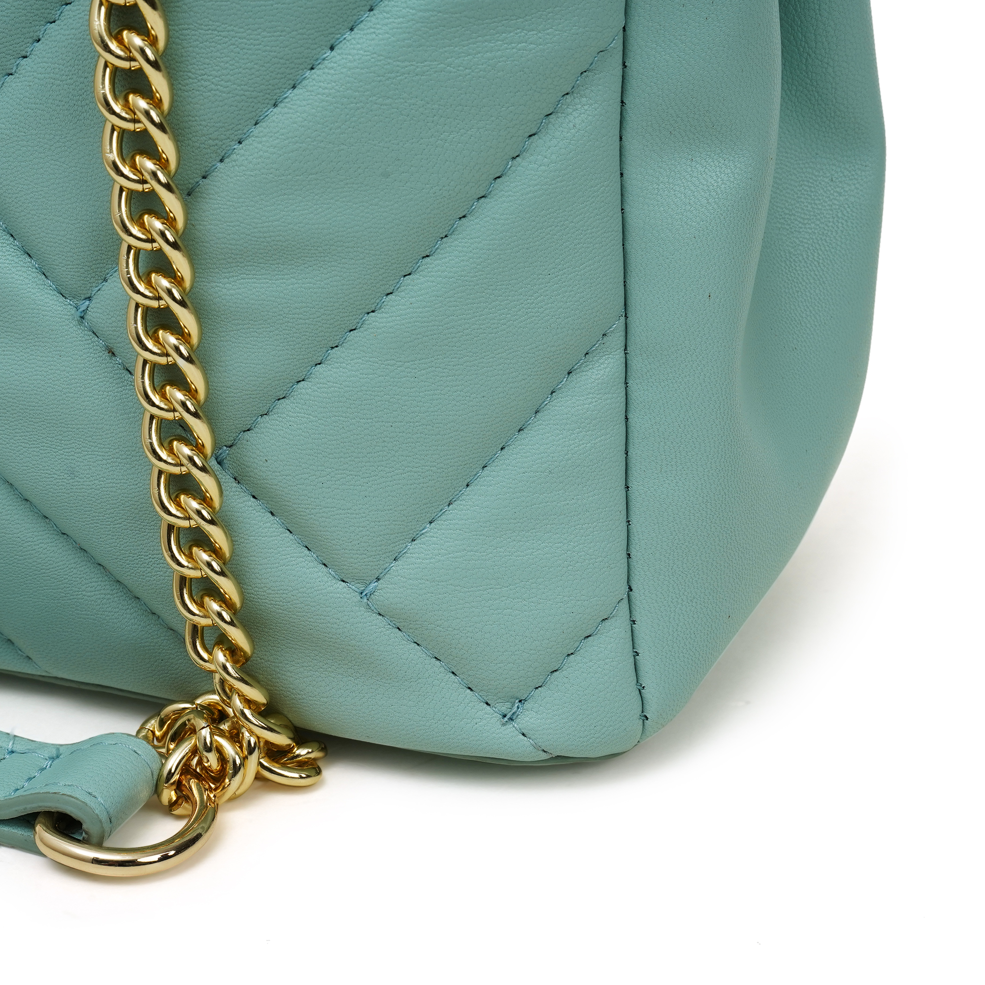 Lightweight yet structured, the flat base stands upright when you set it down. The soft ice-blue hue teams effortlessly with white, beige or denim, bringing new energy to every outfit. Adds a pop of sophisticated colour with the Nino Rossi women’s blue quilted chain bag, a luxury look built on PU. Precision-stitched chevron panels create subtle depth without bulk, while a gleaming gold chain, threaded with matching exterior, effortlessly transitions from an elegant shoulder drape to a hands-free cross-body in seconds. Unzip the top to reveal a full-fabric lining equipped with a zipped wall pocket for keys and cash plus a slip slot for phone or mirror.