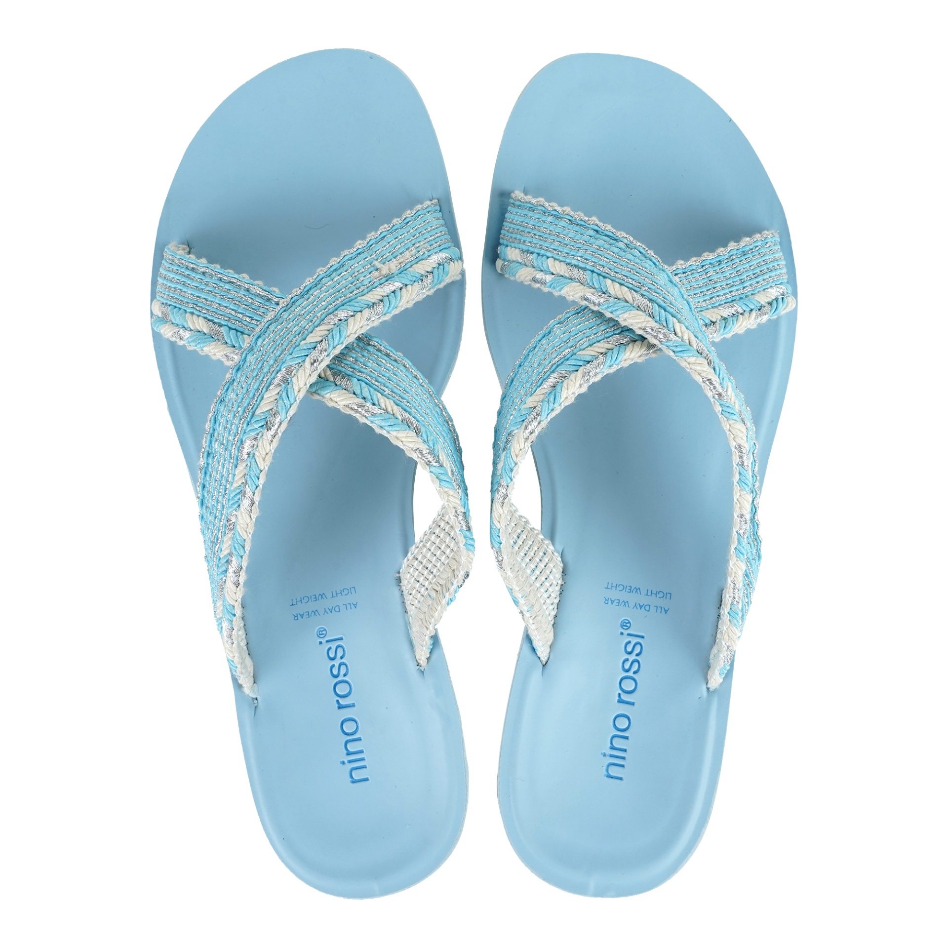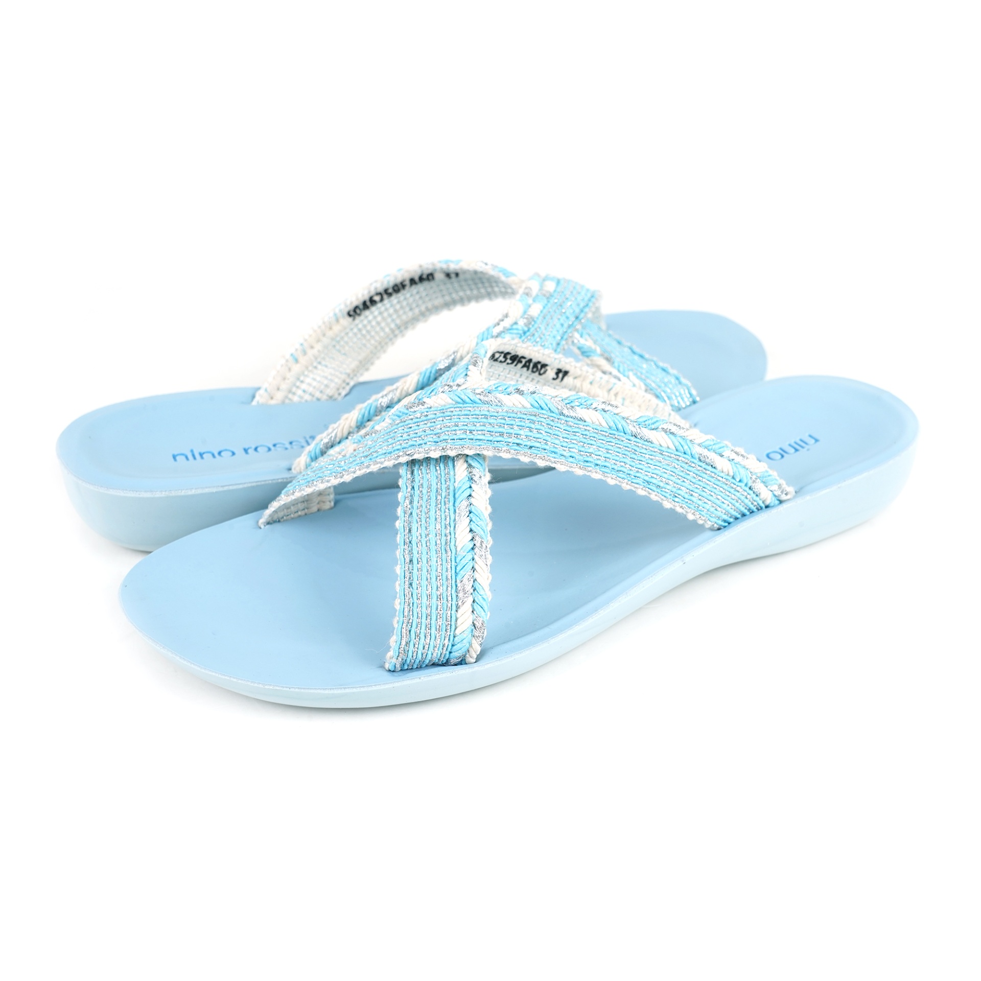 Nino Rossi Women's Cross Strap Sandal features a stylish cross-strap design with a soft nylon fabric upper, offering comfort and breathability. The PU sole ensures durability, making it a versatile slipper perfect for everyday wear with a modern flair.
