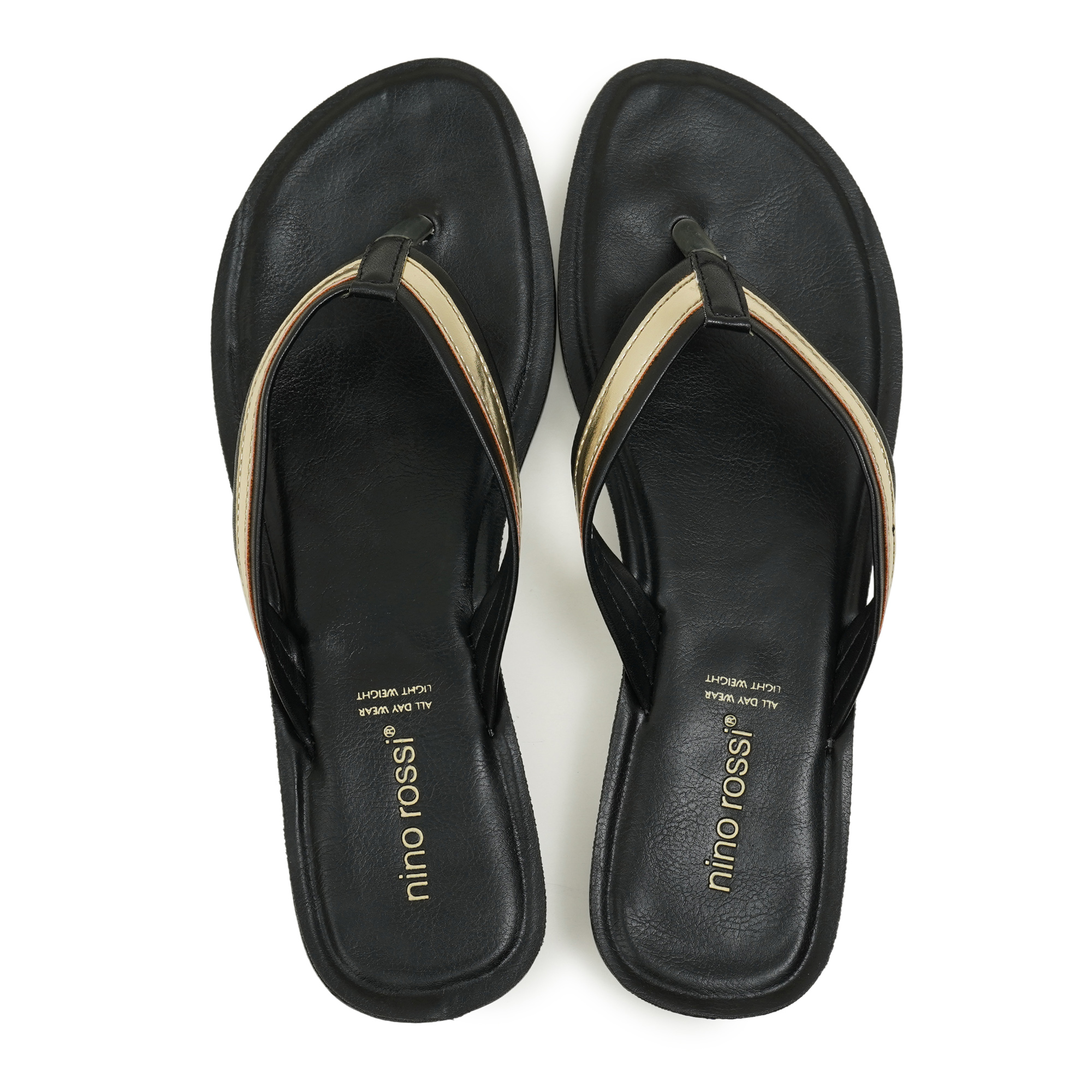 Pack one sandal that handles every plan. Ultra-light, nearly flat, and dressed in black with a streak of gold, this Nino Rossi thong slides seamlessly from airport lounge to pool deck to city streets. Elegant enough for a linen jumpsuit, easy enough for denim shorts, and comfortable enough for miles.
